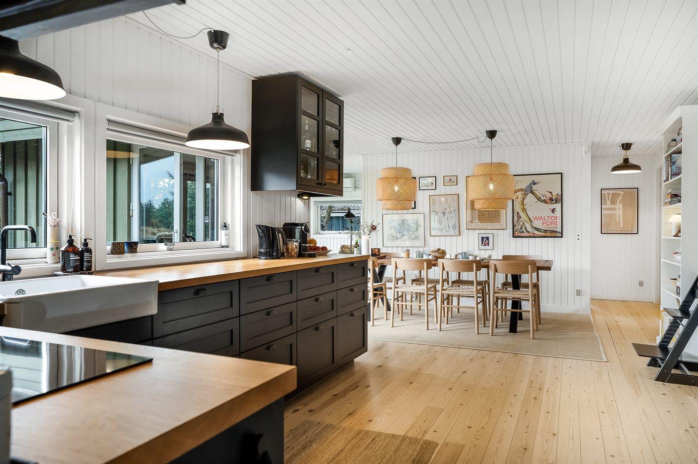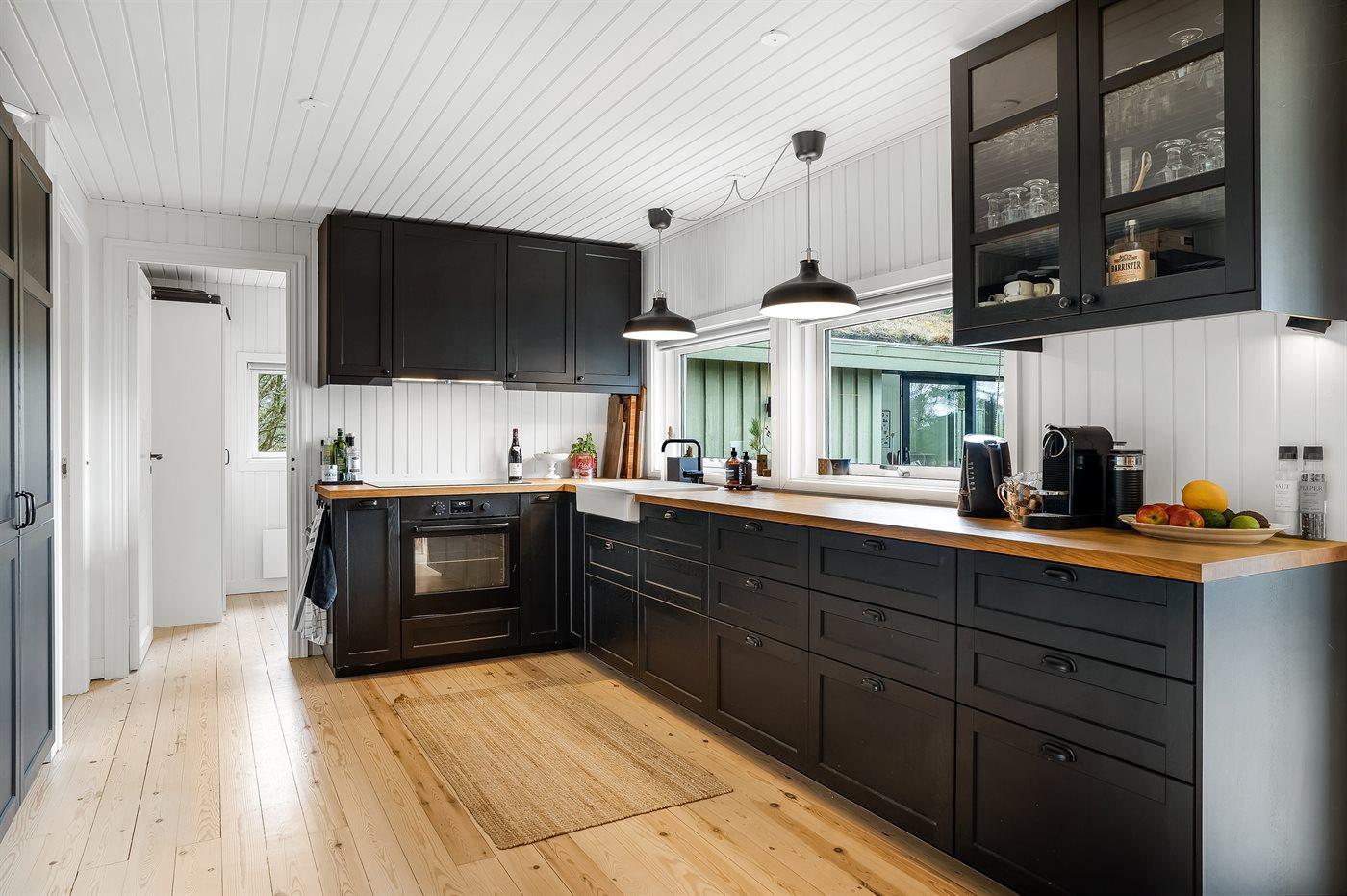 De keuken is uitgerust met koelkast Er is 4 inductiekookplaten, heteluchtoven en vaatwasser.