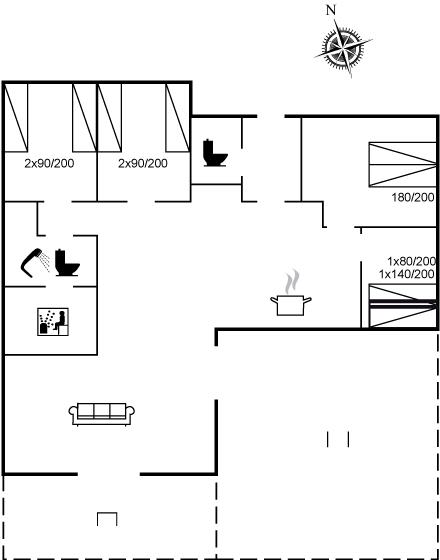 Er zijn in totaal 4 slaapkamers. De slaapplaatsen zijn als volgt verdeeld: 4 slaapplaatsen in tweepersoonsbedden. 4 slaapplaatsen in eenpersoonsbedden. 1 slaapplaatsen in stapelbedden.