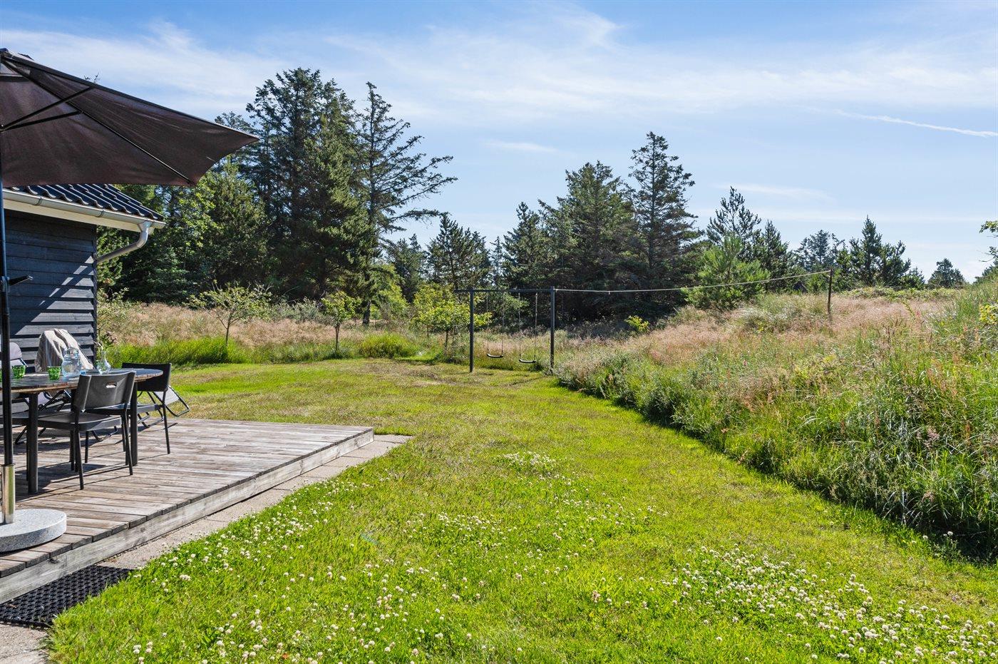 De vakantiewoning is gelegen op een 2700 m² groot natuural grond. Afstand tot de zee 1300 m. Dichtstbijzijnde winkel 200 m. Bij de vakantiewoning hoort 45 m² terras. Daarnaast is er een 3 m² groot overdekt terras. Gereedschapsruimte. Schommel. Barbecue. Parkeerplaats bij het huis.