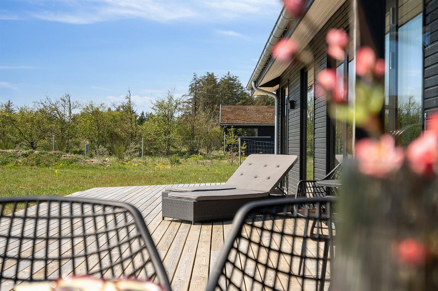 De vakantiewoning is gelegen op een 2700 m² groot natuural grond. Afstand tot de zee 1500 m. Dichtstbijzijnde winkel 2400 m. Bij de vakantiewoning hoort 95 m² terras. Daarnaast is er een 6 m² groot overdekt terras. Schommel. Zandbak. Speelhuisje. Trampoline. Speeltoren. Glijbaan. Barbecue. Parkeerplaats bij het huis.