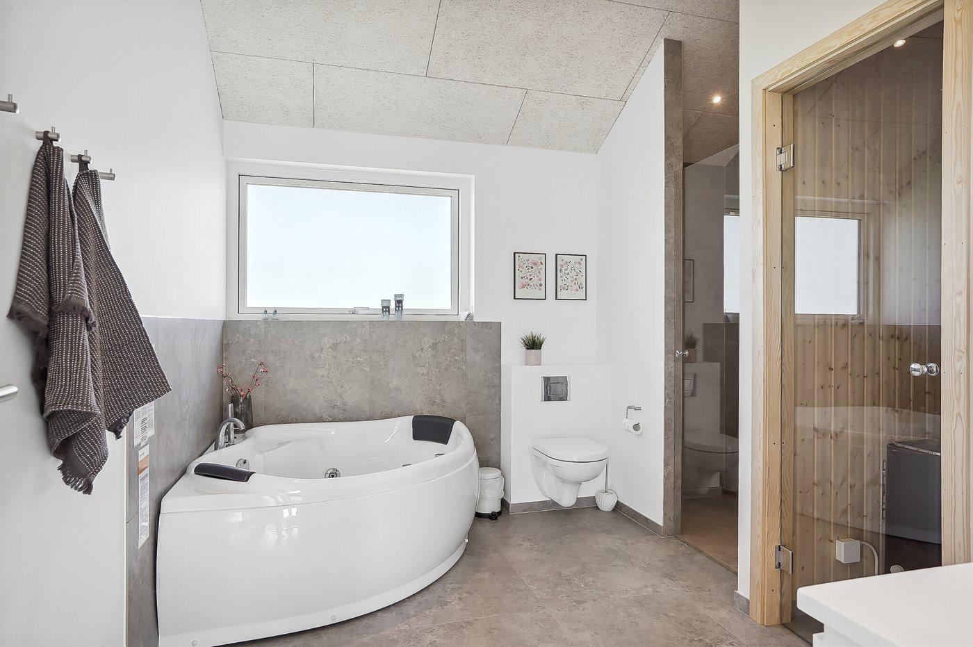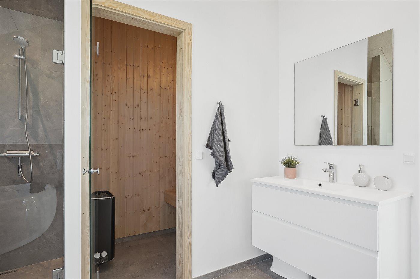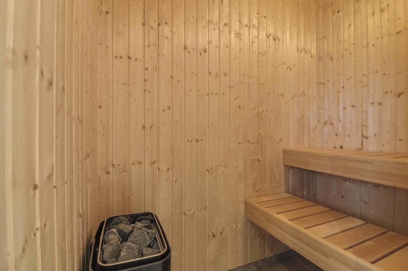 Er is 2 badkamers met douchehok en 2 toiletten. Er is vloerverwarming in 1 badkamer. De sauna biedt de gelegenheid tot ontspanning.