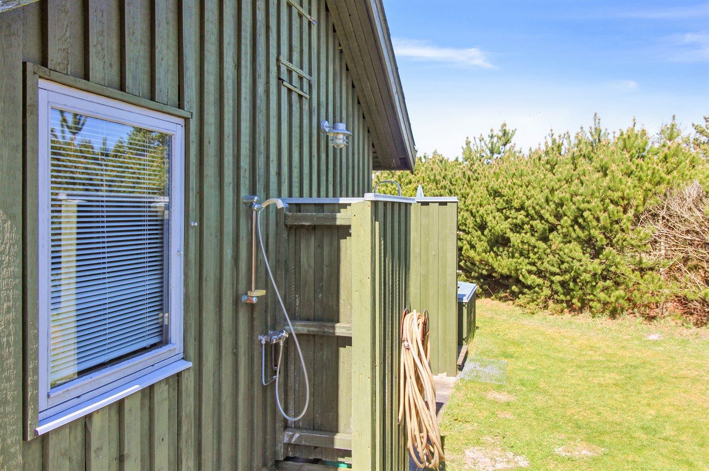 De vakantiewoning is gelegen op een 2400 m² groot natuural grond. Afstand tot de zee 1000 m. Dichtstbijzijnde winkel 3000 m. Bij de vakantiewoning hoort 50 m² terras. Daarnaast is er een 20 m² groot overdekt terras. Gereedschapsruimte. Schommel. Zandbak. Buitendouche. Barbecue. Parkeerplaats bij het huis.