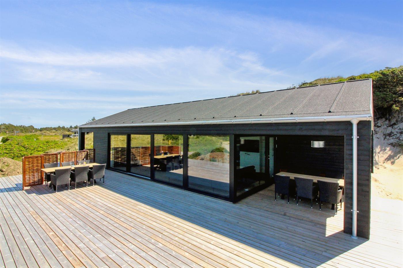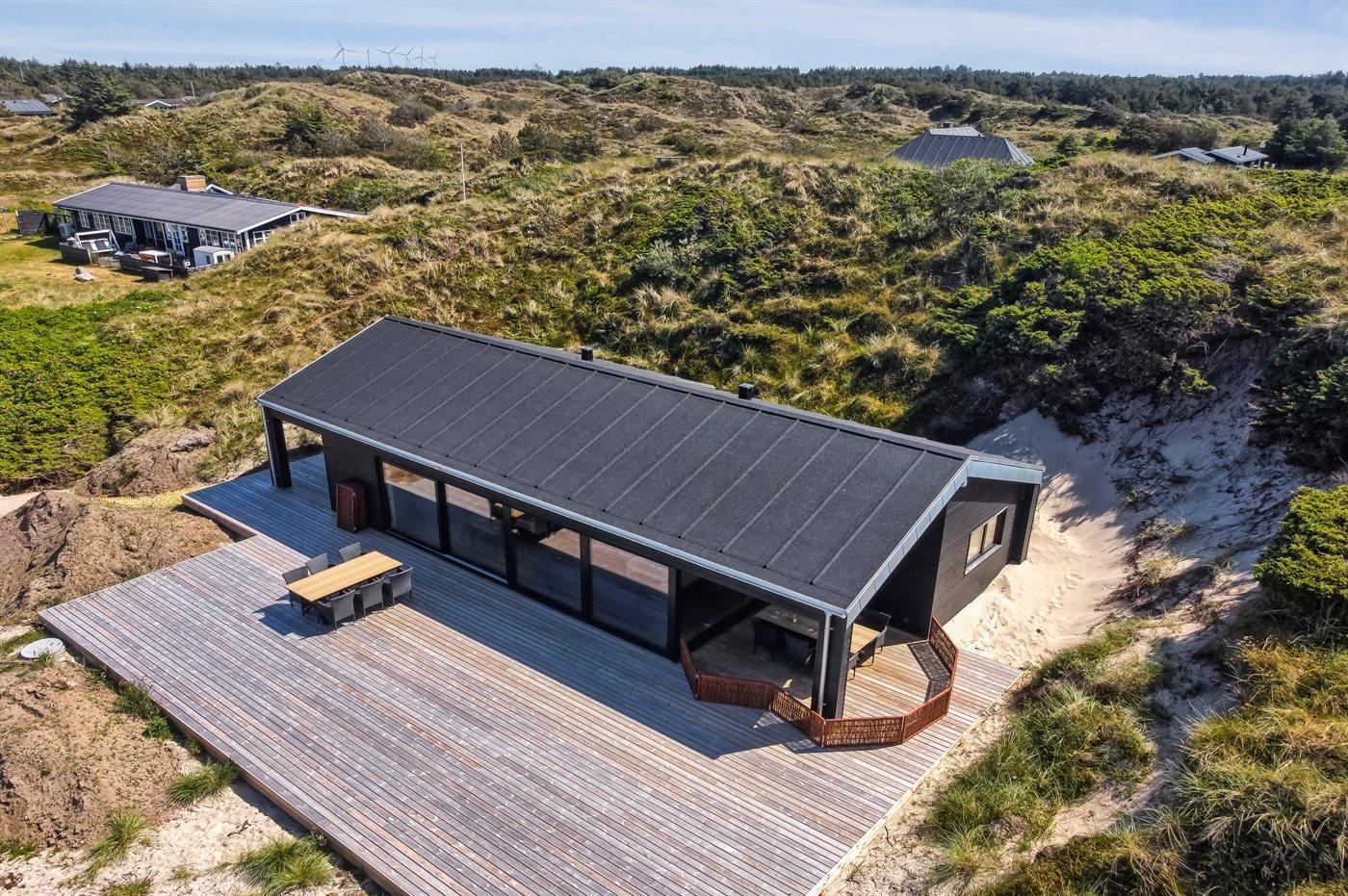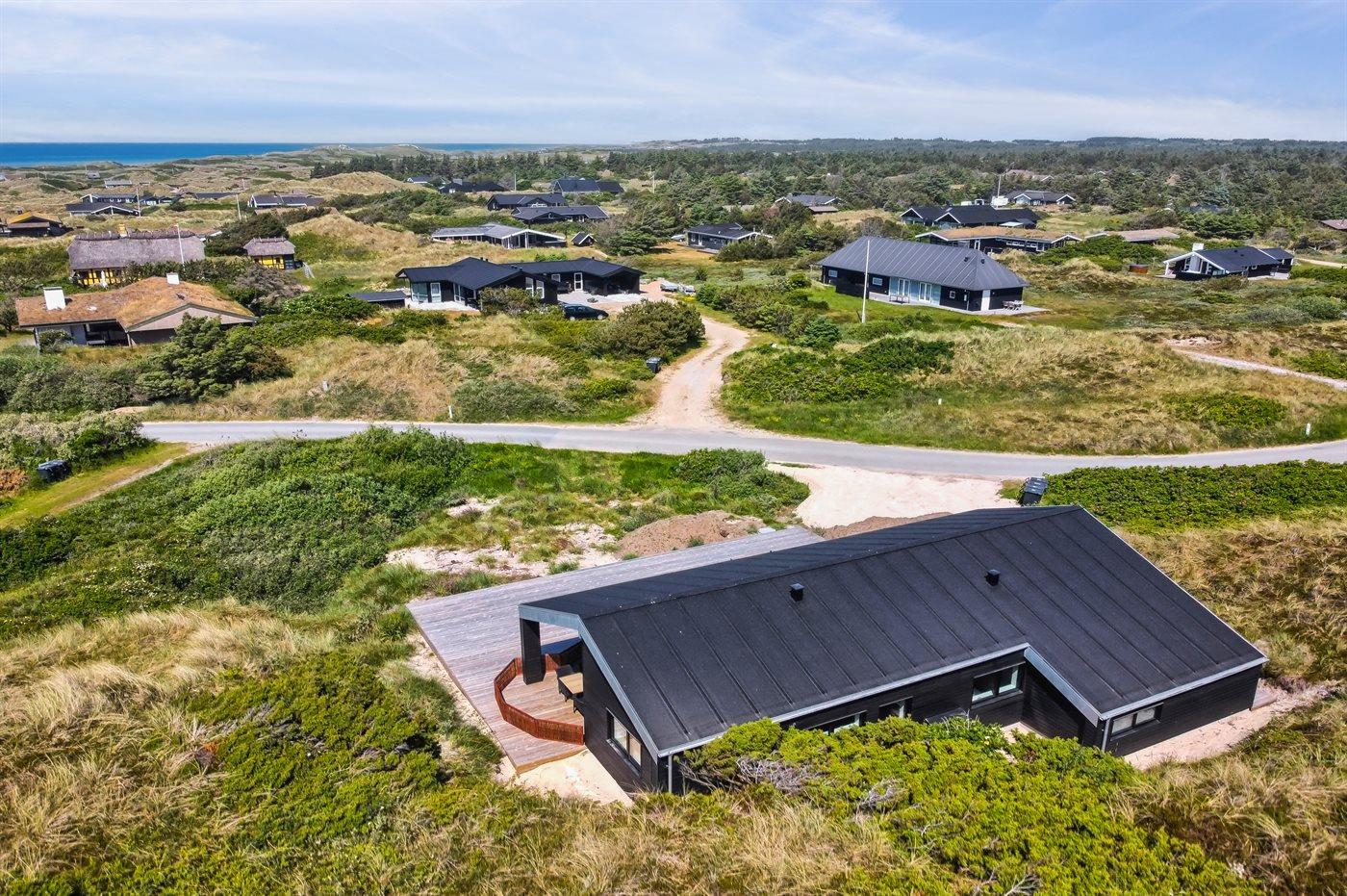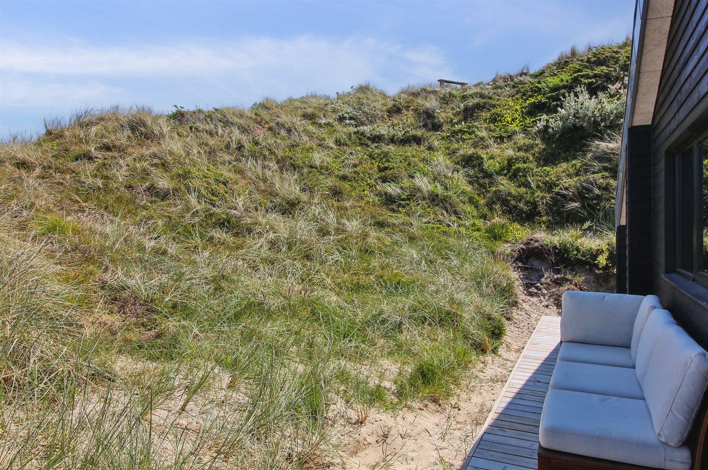 De vakantiewoning is gelegen op een 2200 m² groot Duingrond. Afstand tot de zee 500 m. Dichtstbijzijnde winkel 3000 m. Er is een golfbaan op een afstand van 12000 m. Bij de vakantiewoning hoort 70 m² terras. Daarnaast is er een 20 m² groot overdekt terras. Gereedschapsruimte. Barbecue. Parkeerplaats bij het huis.