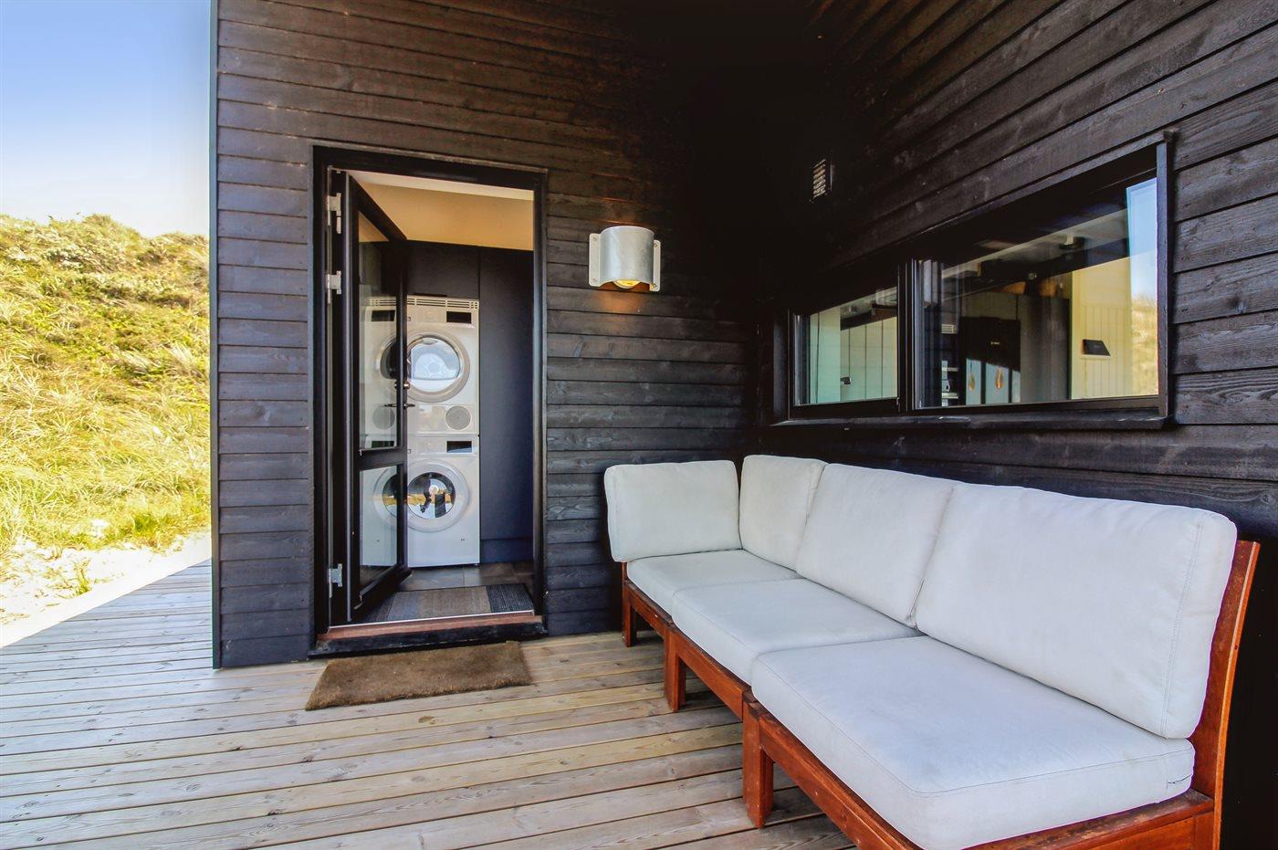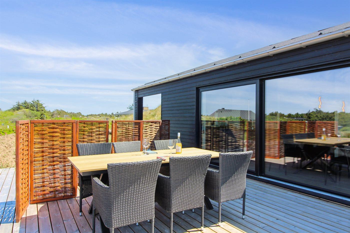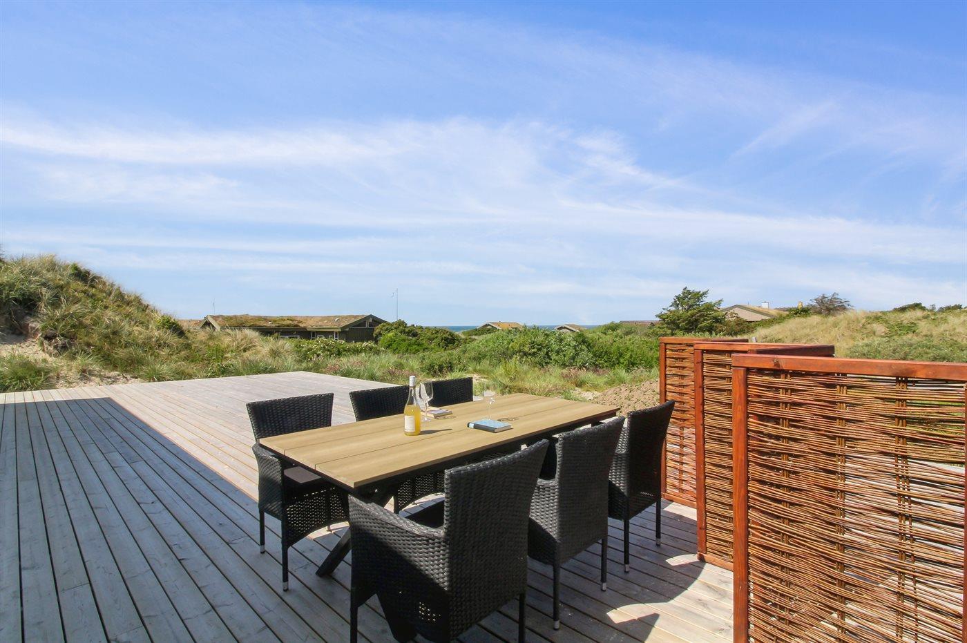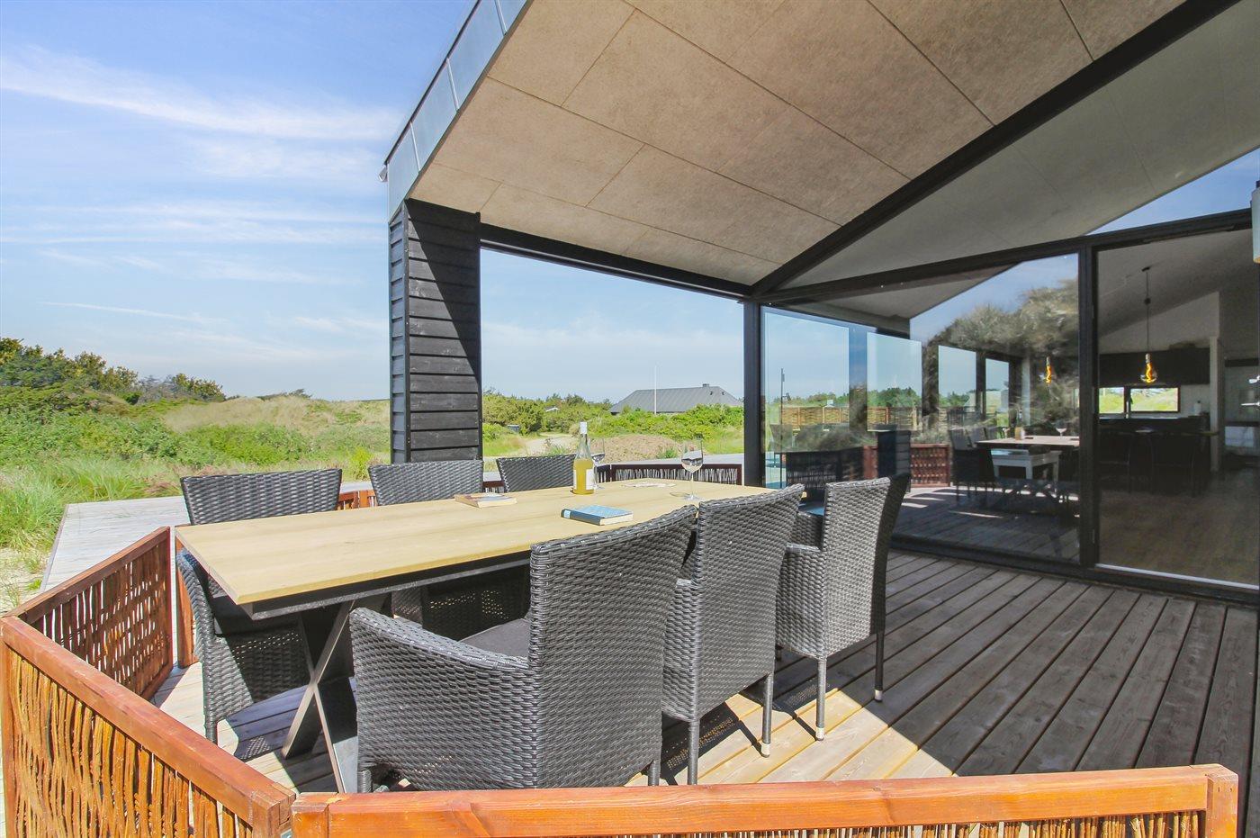 De vakantiewoning is gelegen op een 2200 m² groot Duingrond. Afstand tot de zee 500 m. Dichtstbijzijnde winkel 3000 m. Er is een golfbaan op een afstand van 12000 m. Bij de vakantiewoning hoort 70 m² terras. Daarnaast is er een 20 m² groot overdekt terras. Gereedschapsruimte. Barbecue. Parkeerplaats bij het huis.