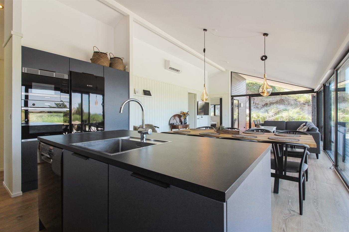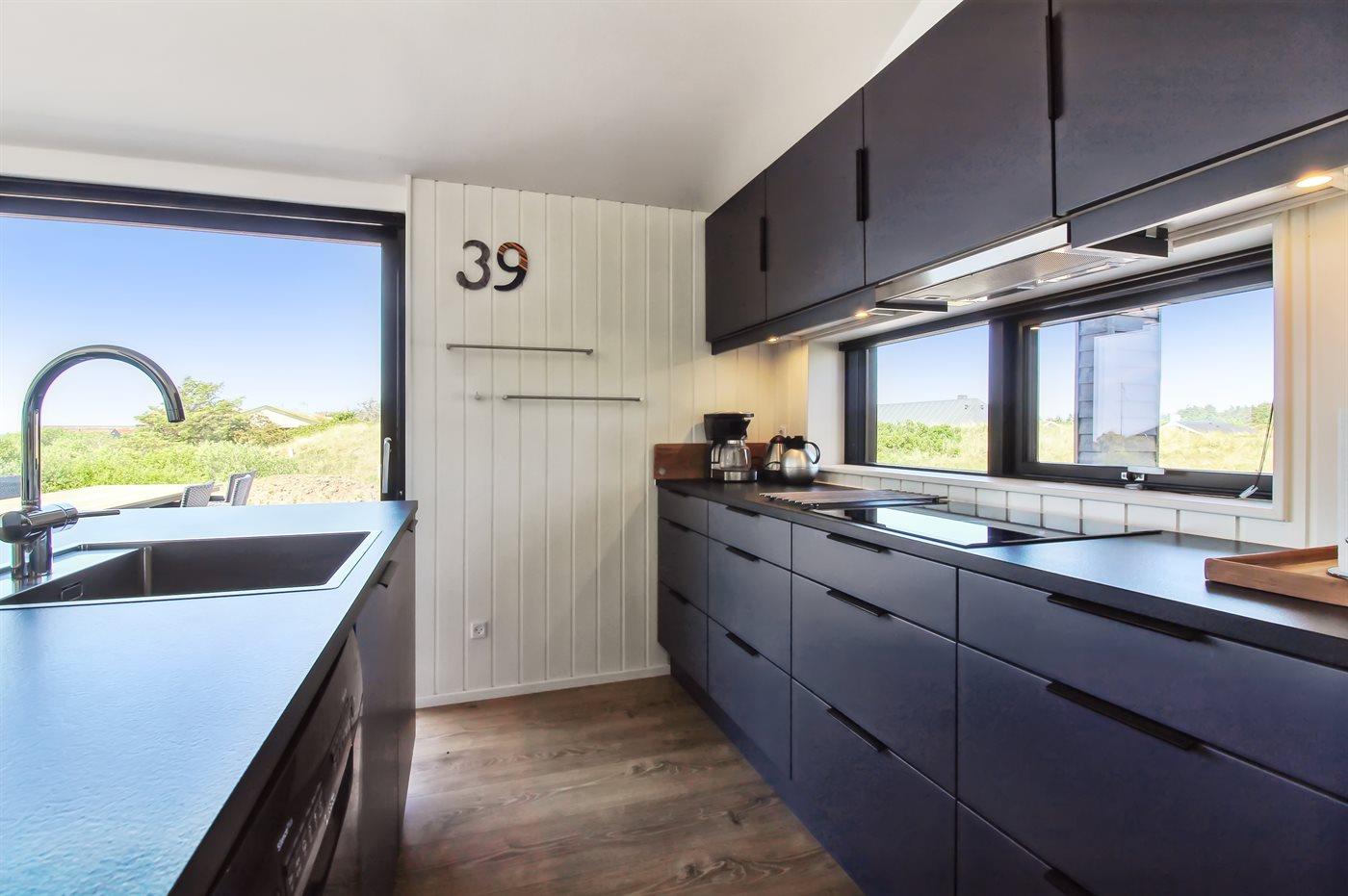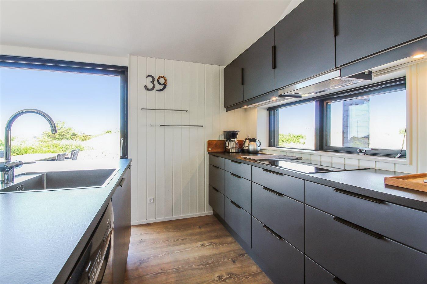 De keuken is uitgerust met koelkast Er is 4 inductiekookplaten, heteluchtoven, magnetron en vaatwasser.