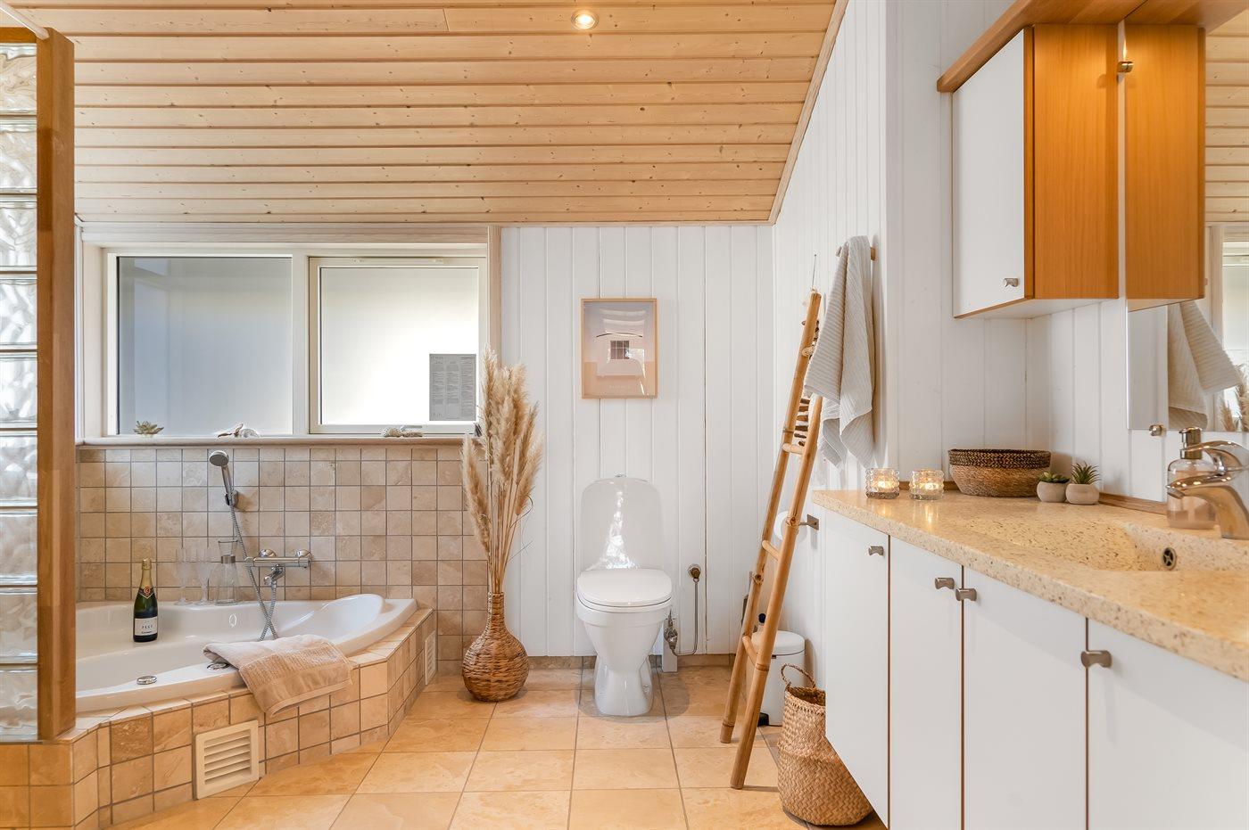 Er is 2 badkamers met douchehok en 2 toiletten. Er is vloerverwarming in 2 van de badkamers. De sauna biedt de gelegenheid tot ontspanning.