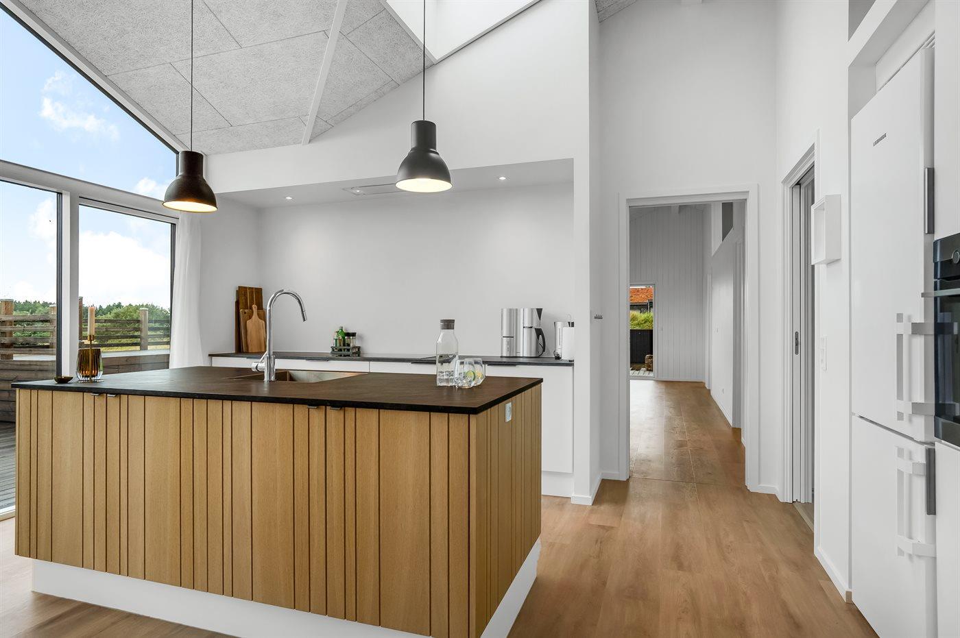 De keuken is uitgerust met koelkast Er is 4 inductiekookplaten, heteluchtoven, magnetron en vaatwasser. Daarnaast is er een wijnkoelkast.
