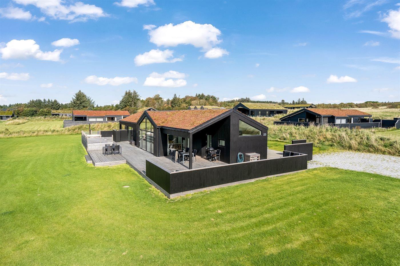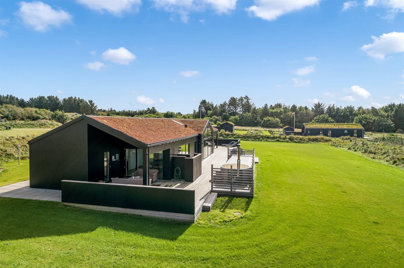Modern vakantiehuis in Saltum met sauna, hot tub en ruime activiteitenruimte voor ontspanning.