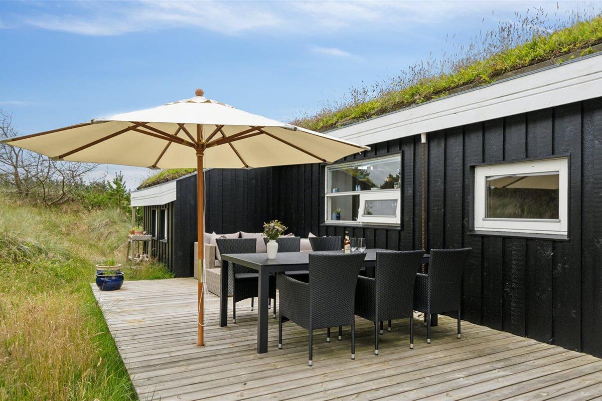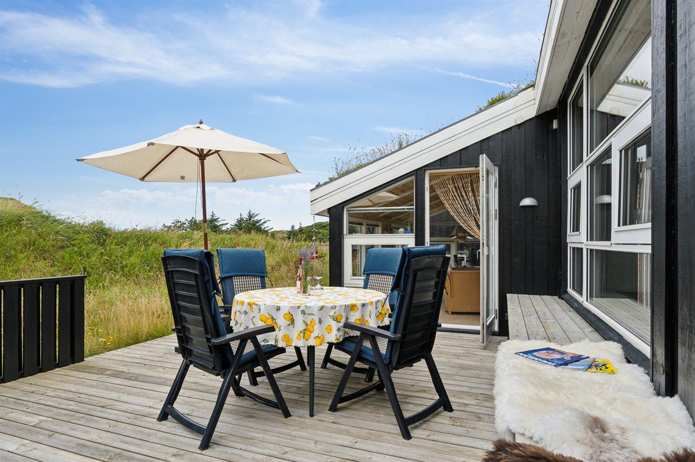 De vakantiewoning is gelegen op een 2500 m² groot Duingrond. Afstand tot de zee 500 m. Dichtstbijzijnde winkel 4000 m. Er is een golfbaan op een afstand van 8000 m. Bij de vakantiewoning hoort terras. Buitendouche. Barbecue. Parkeerplaats bij het huis.