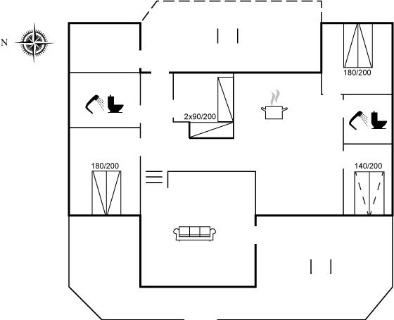 Er zijn in totaal 4 slaapkamers. De slaapplaatsen zijn als volgt verdeeld: 4 slaapplaatsen in tweepersoonsbedden. 2 slaapplaatsen in eenpersoonsbedden.