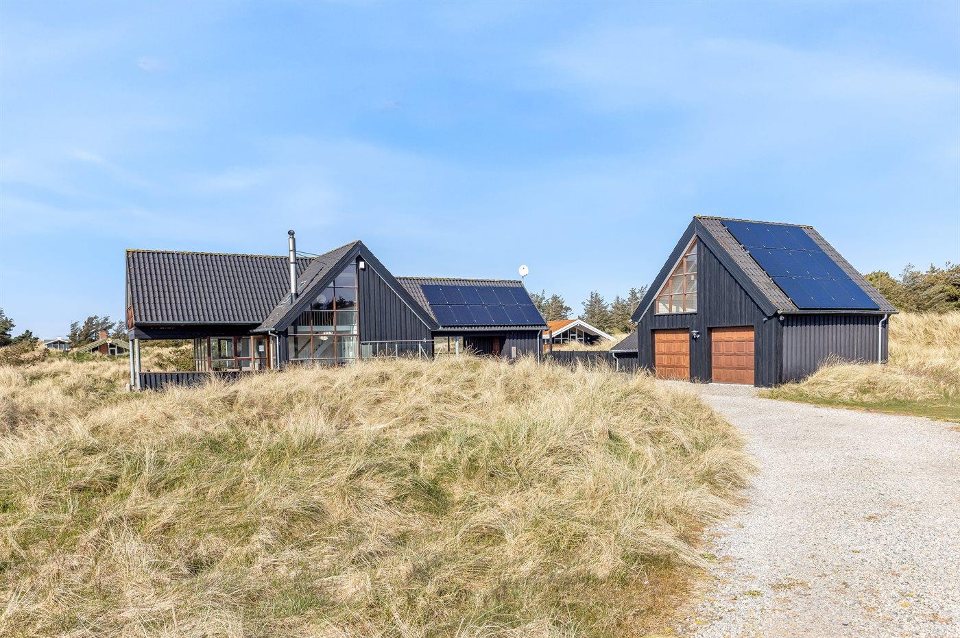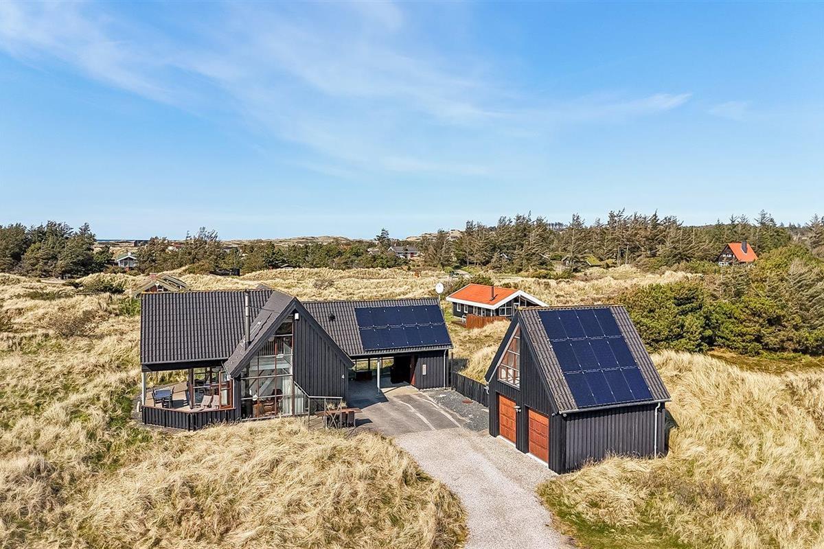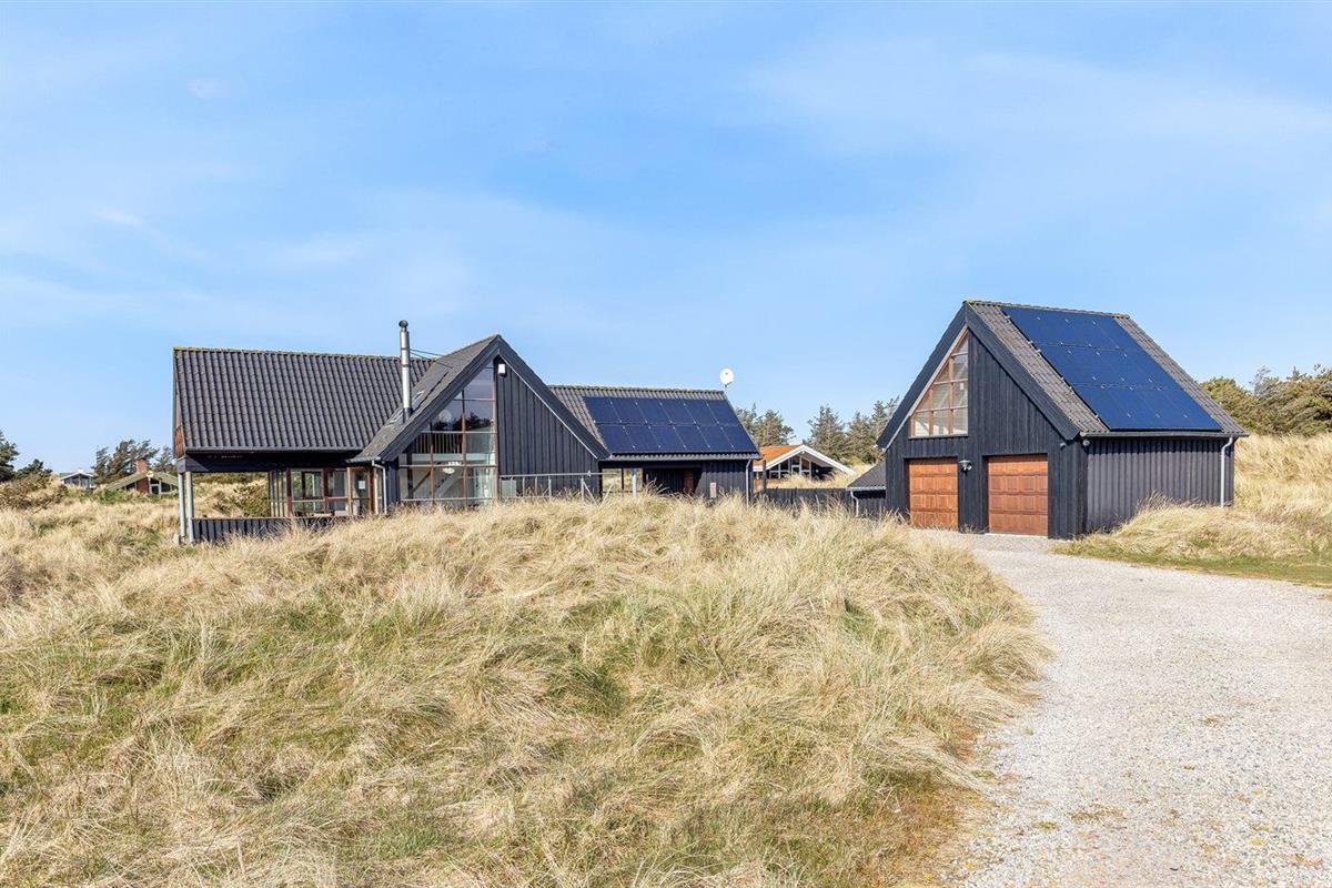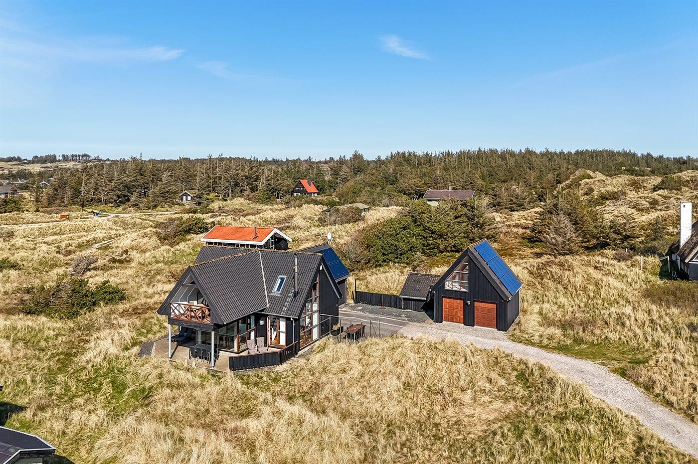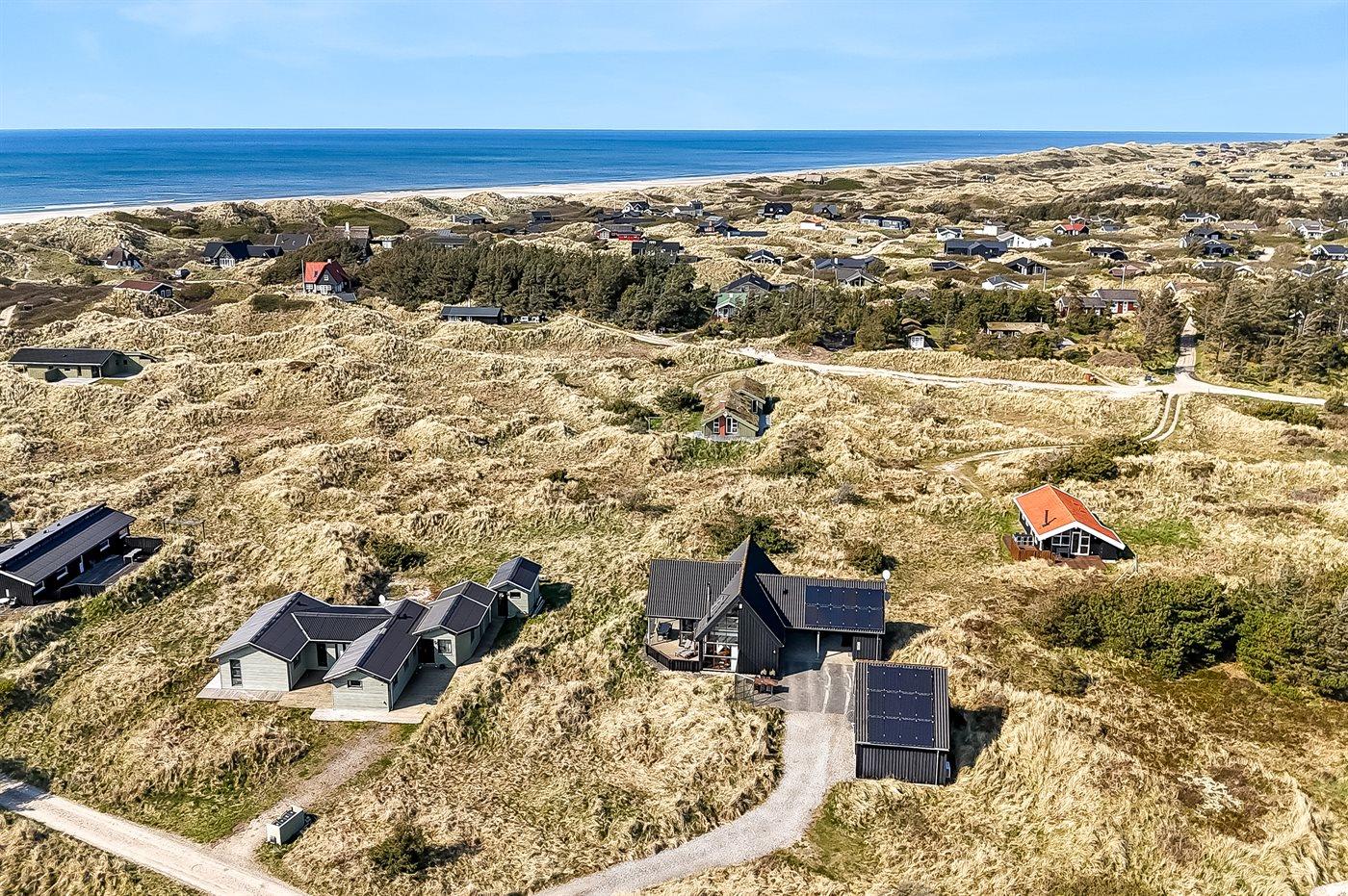 De vakantiewoning is gelegen op een 2513 m² groot Duingrond. Afstand tot de zee 350 m. Dichtstbijzijnde winkel 5000 m. Er is een golfbaan op een afstand van 15000 m. Bij de vakantiewoning hoort 100 m² terras. Daarnaast is er een 10 m² groot overdekt terras. Gereedschapsruimte. Barbecue. Carport ter beschikking. Parkeerplaats bij het huis.