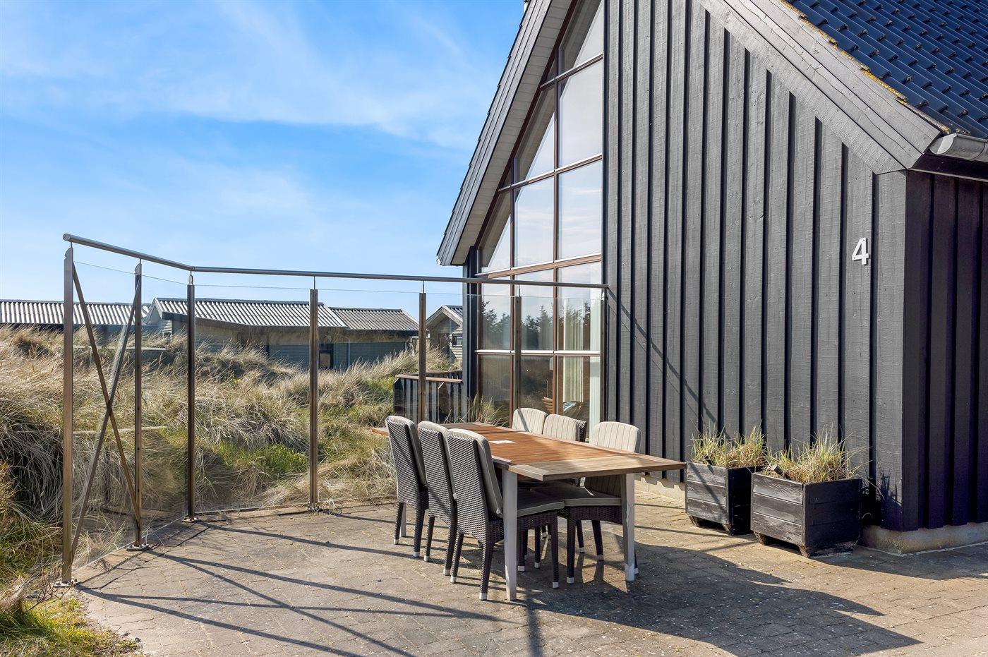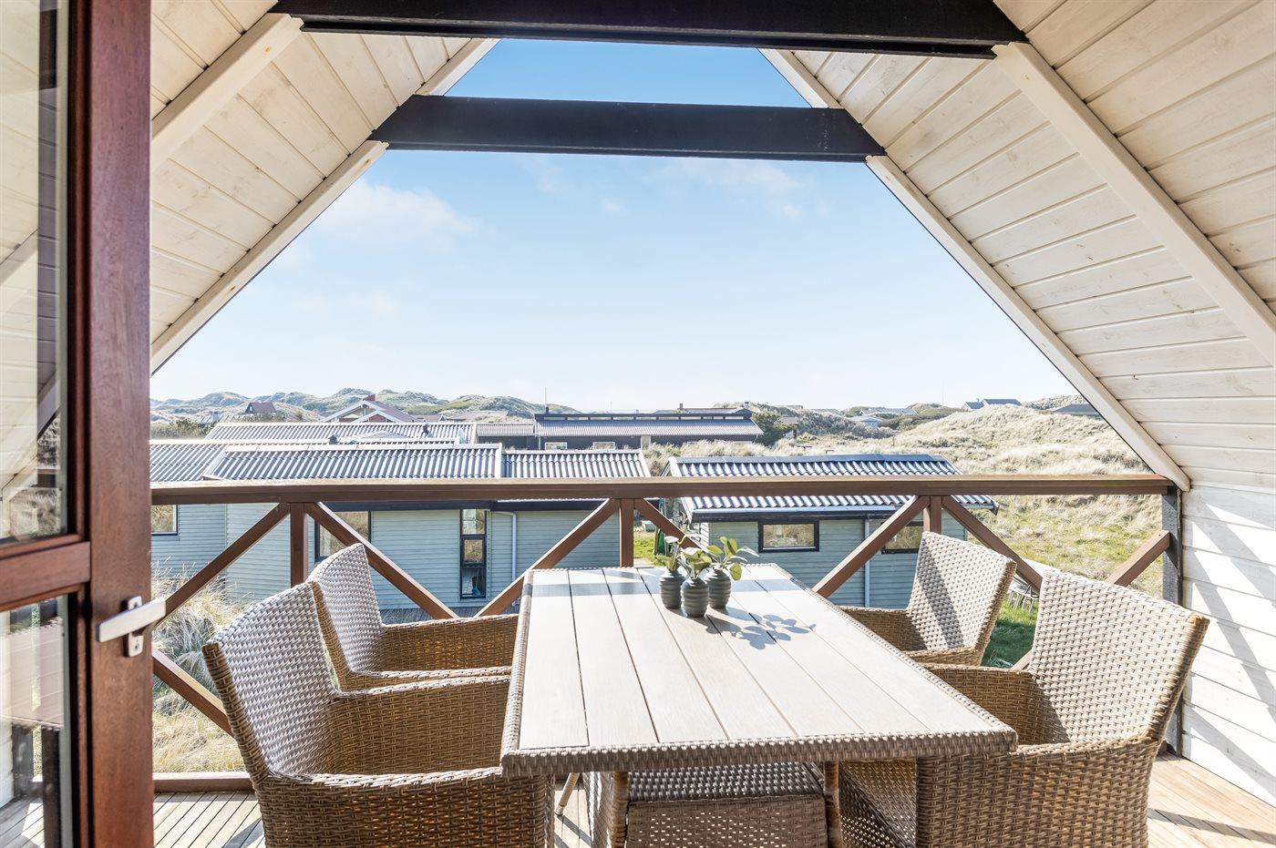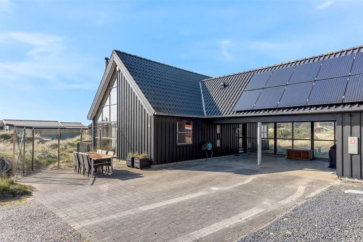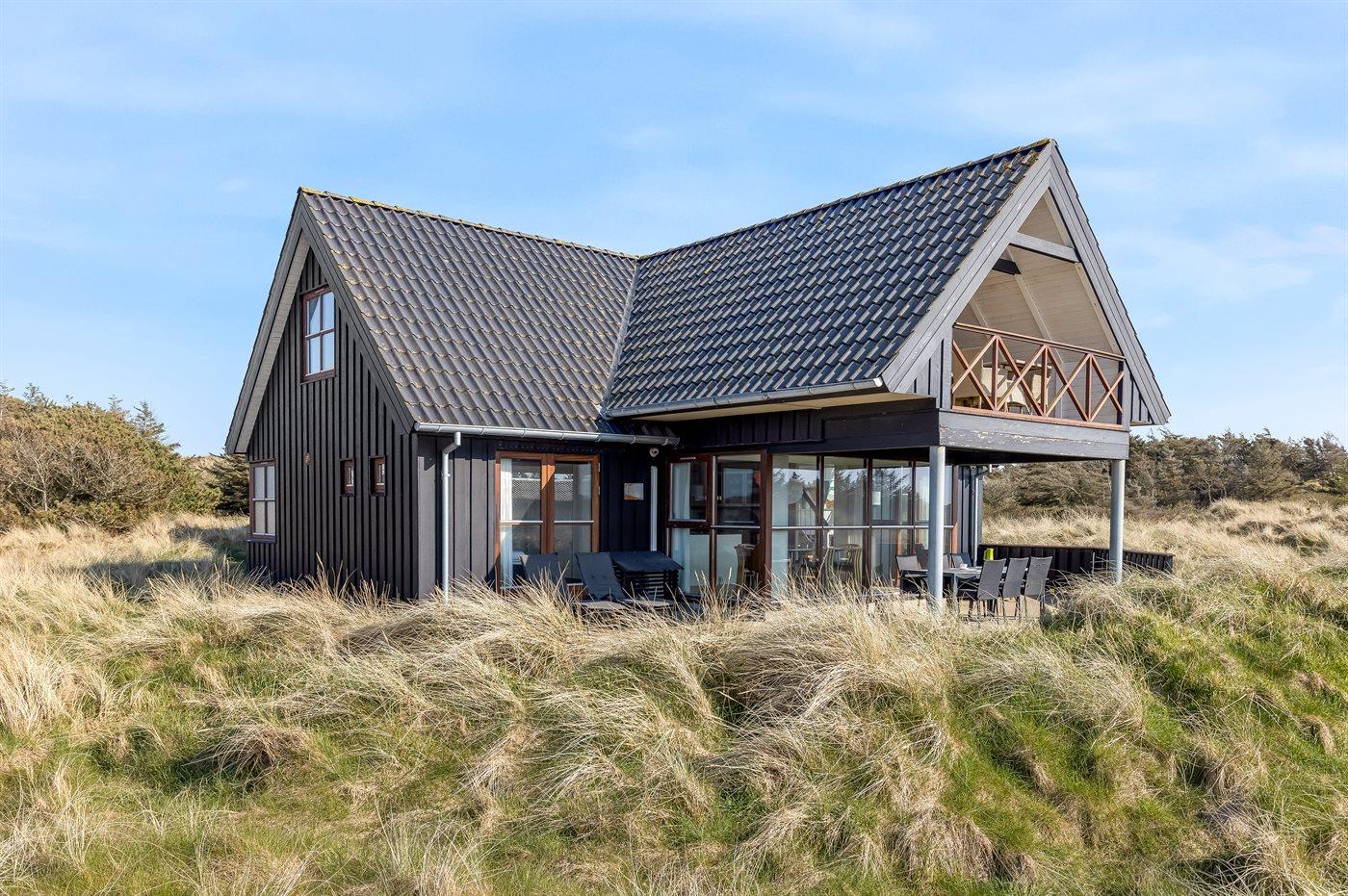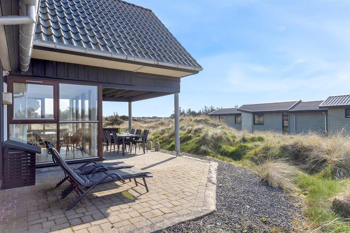 De vakantiewoning is gelegen op een 2513 m² groot Duingrond. Afstand tot de zee 350 m. Dichtstbijzijnde winkel 5000 m. Er is een golfbaan op een afstand van 15000 m. Bij de vakantiewoning hoort 100 m² terras. Daarnaast is er een 10 m² groot overdekt terras. Gereedschapsruimte. Barbecue. Carport ter beschikking. Parkeerplaats bij het huis.