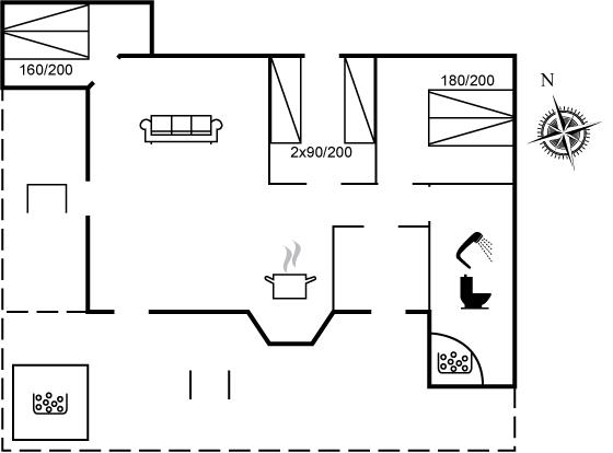 Het binnenbubbelbad (vulwater) biedt ontspanning aan 2 personen.Het buitenbubbelbad (standwater) biedt ontspanning aan 5 personen.