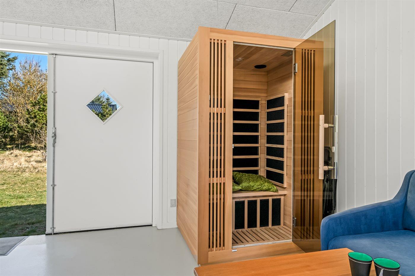 Er is 1 badkamer met douchehok en 2 toiletten, waarvan 1 gastentoilet. Er is vloerverwarming in 1 badkamer. Er is vloerverwarming in het gastentoilet. De infraroodsauna biedt de gelegenheid tot ontspanning.
