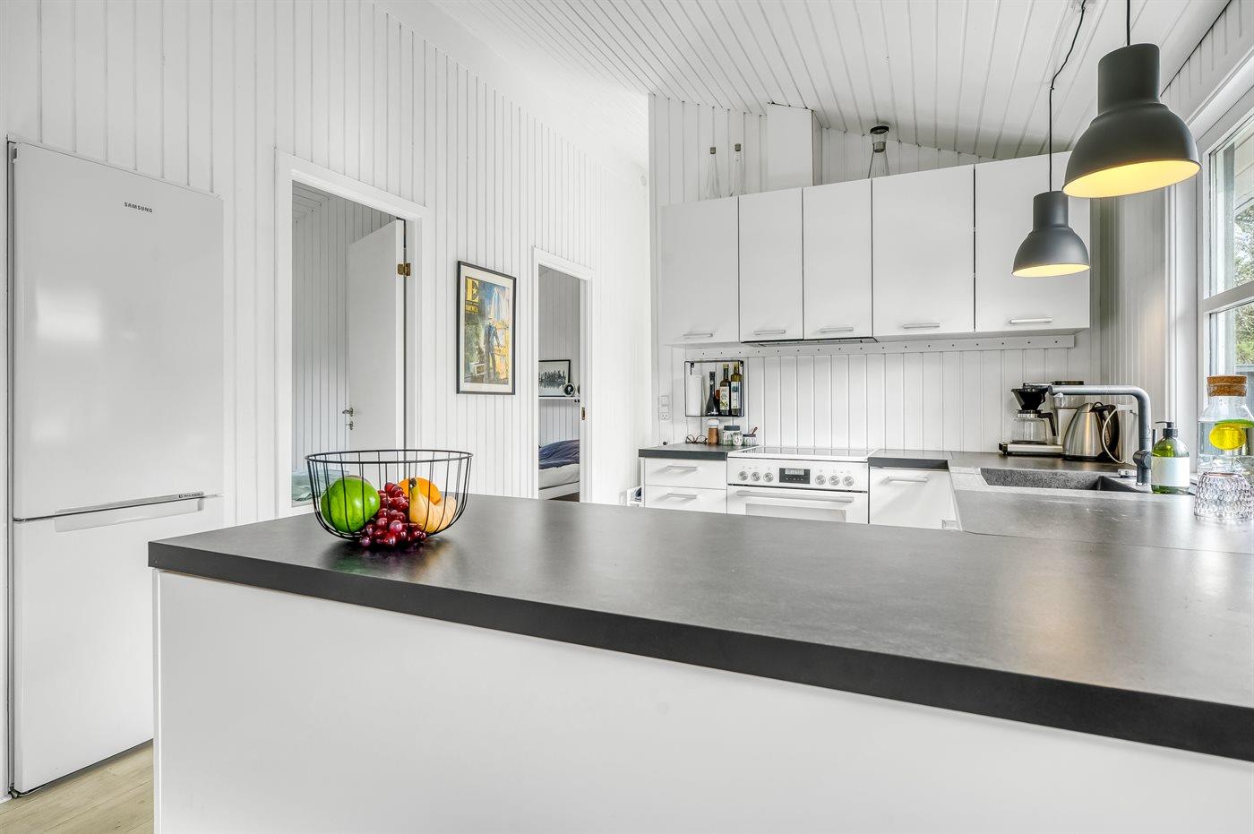 De keuken is uitgerust met koelkast Er zijn 4 keramische kookplaten, heteluchtoven en vaatwasser.