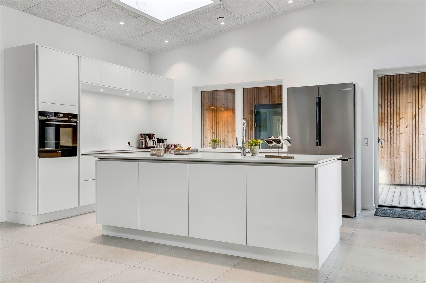 De keuken is uitgerust met koelkast Er is 4 inductiekookplaten, heteluchtoven en vaatwasser.