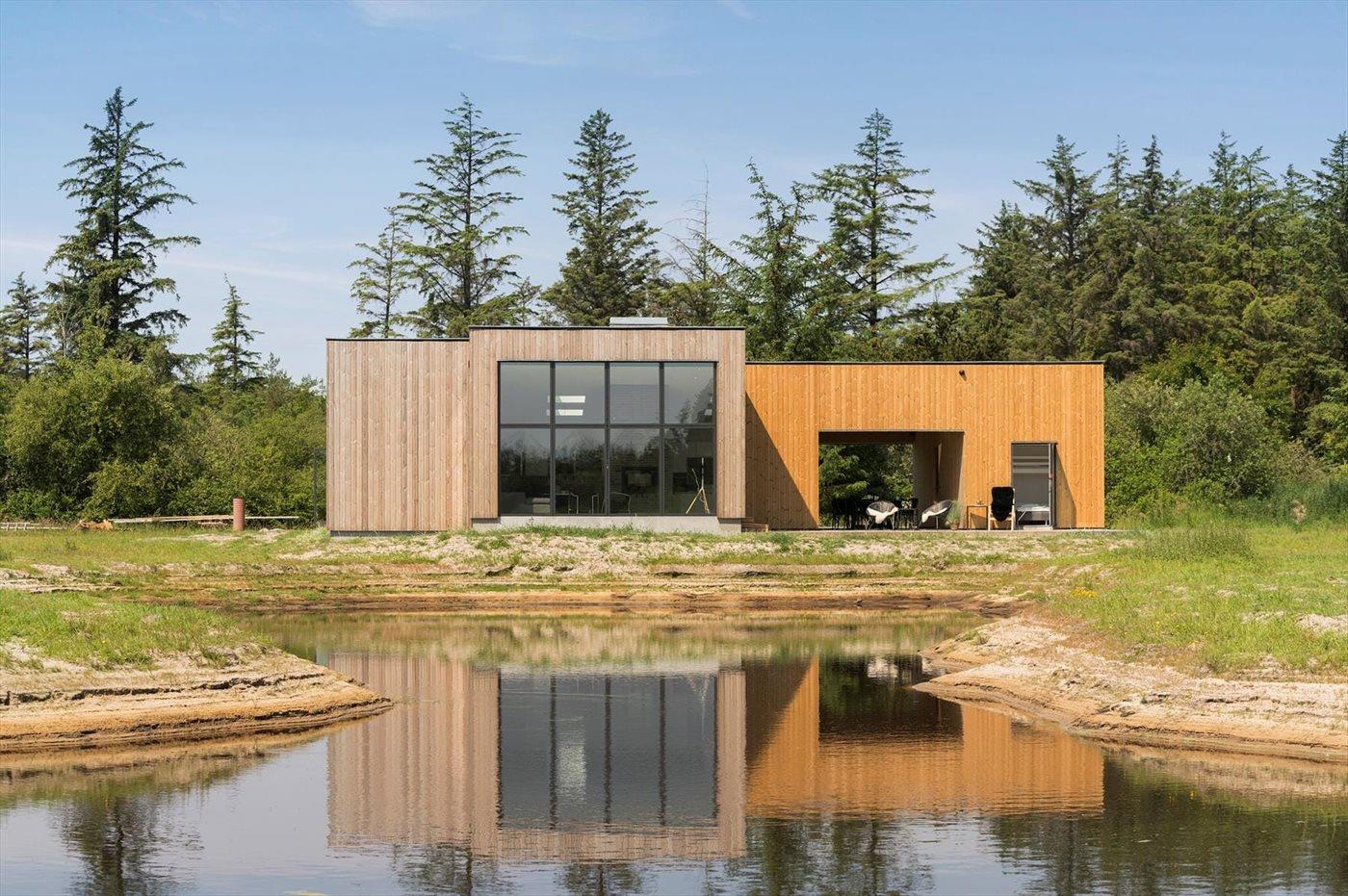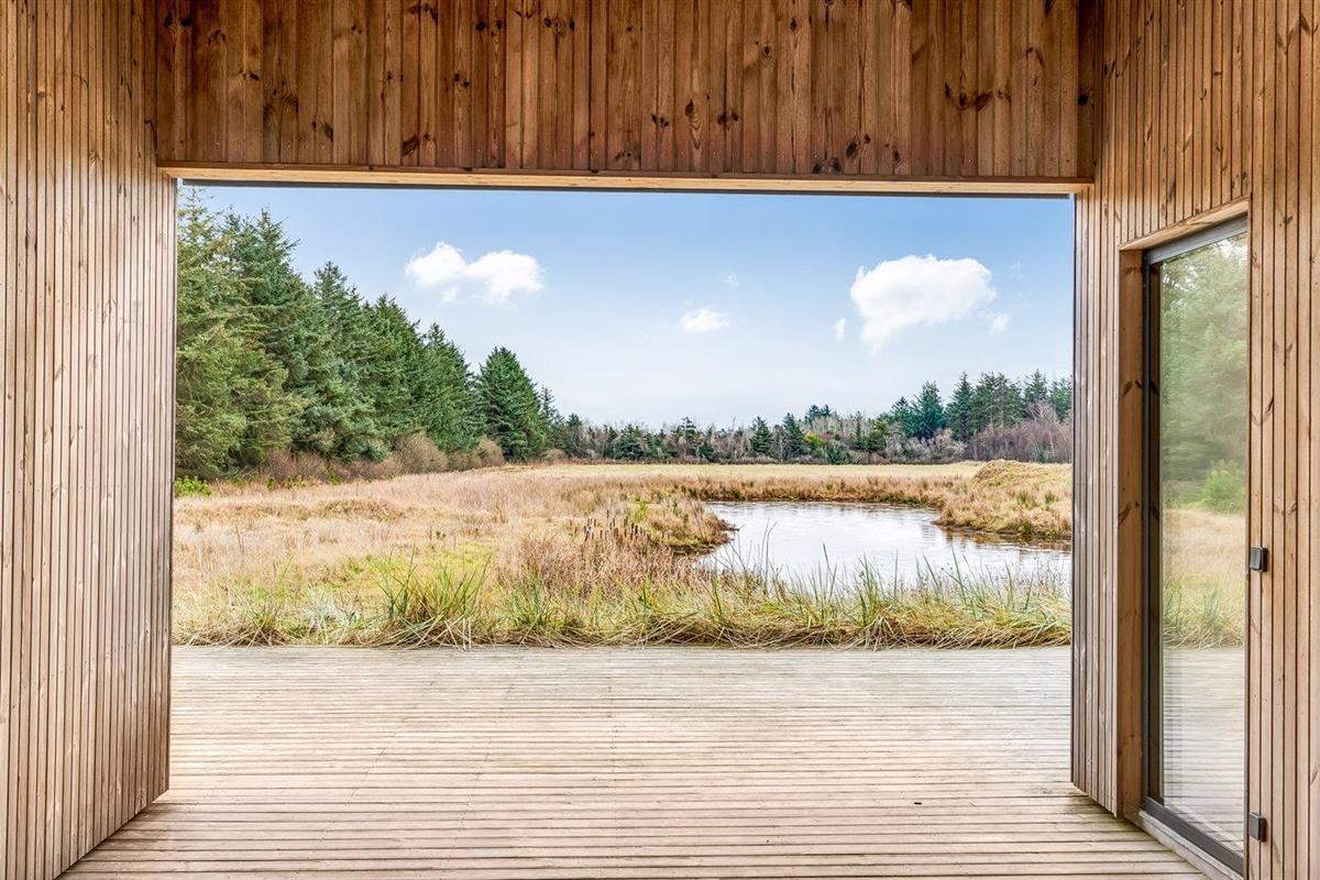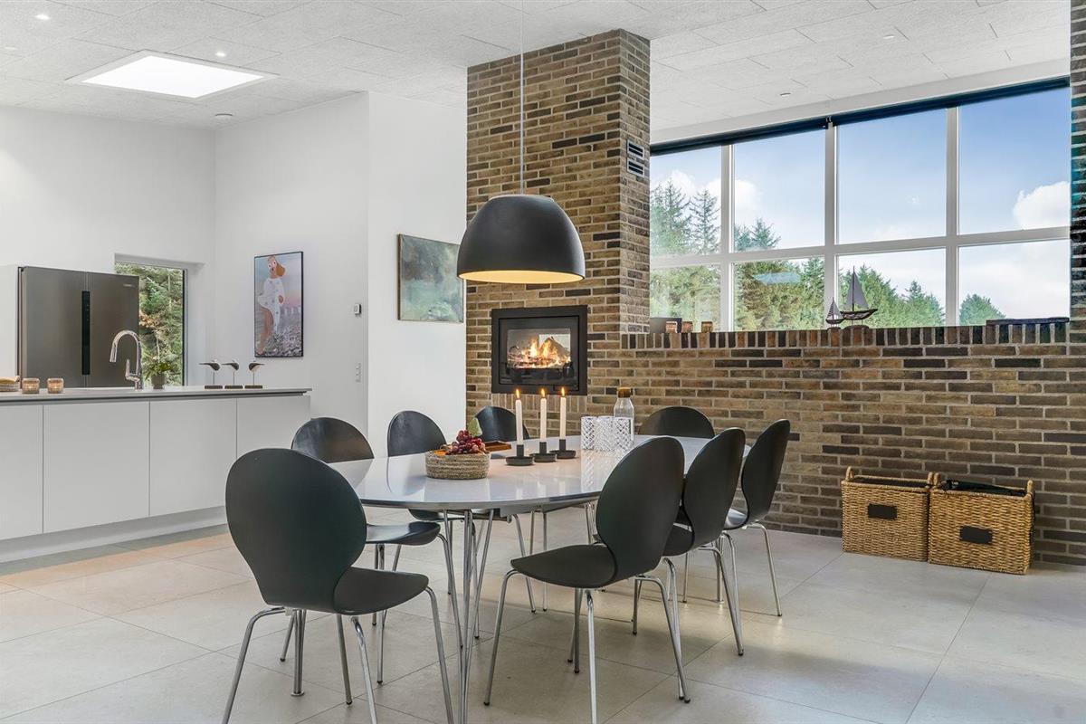 Modern vakantiehuis in Saltum met vloerverwarming, houtkachel, en elektrische laadpaal op groot natuurterrein.