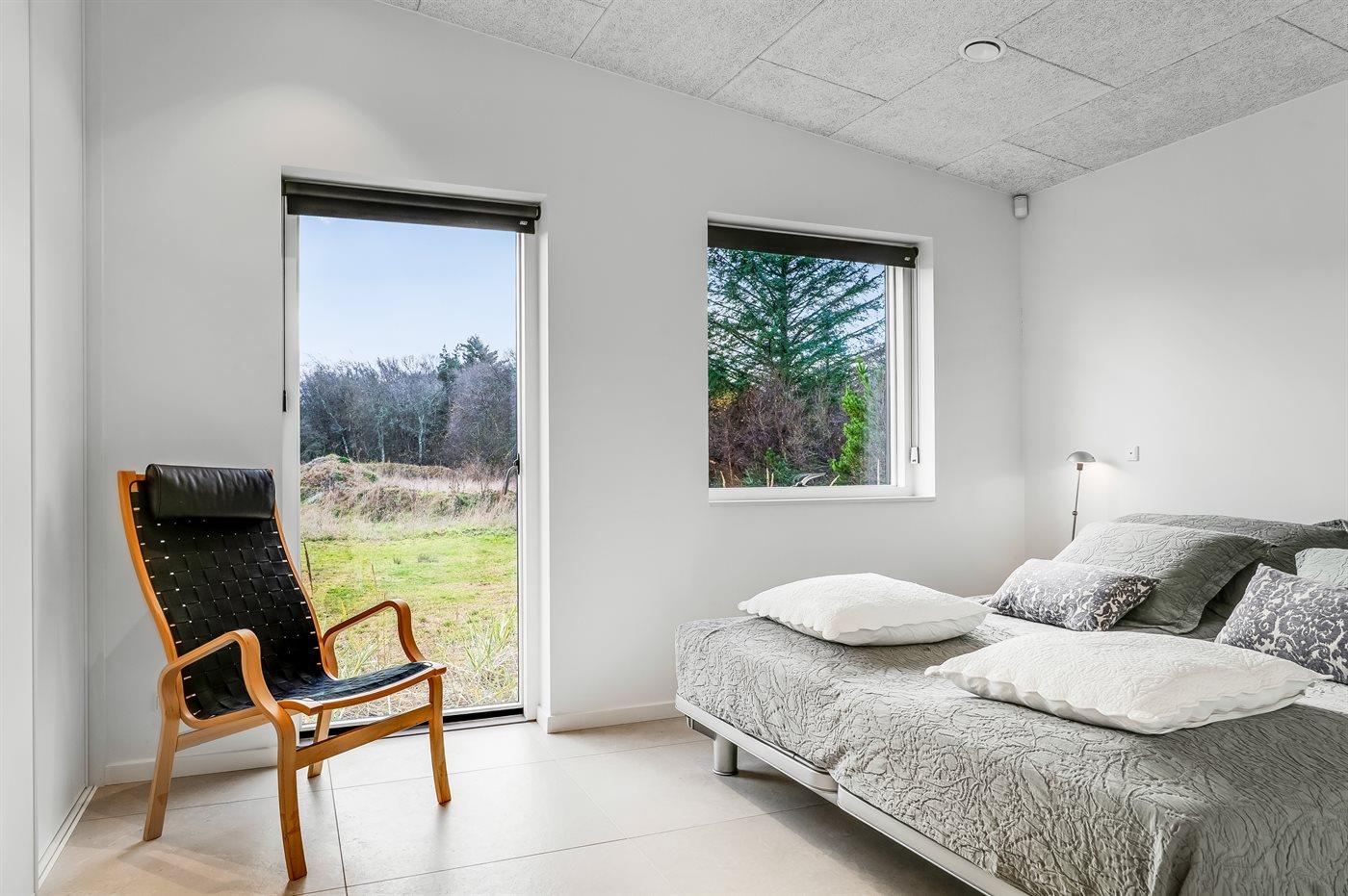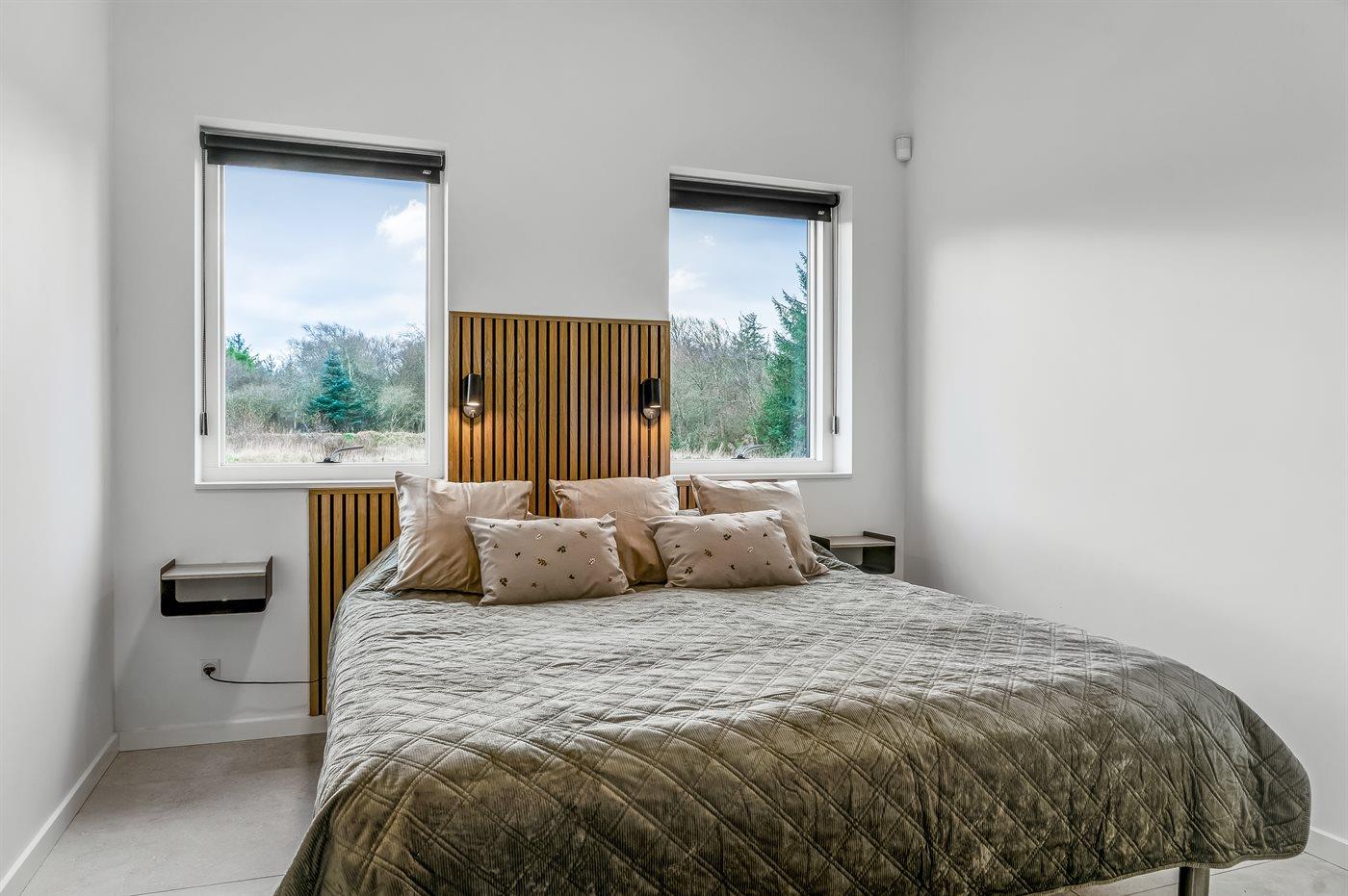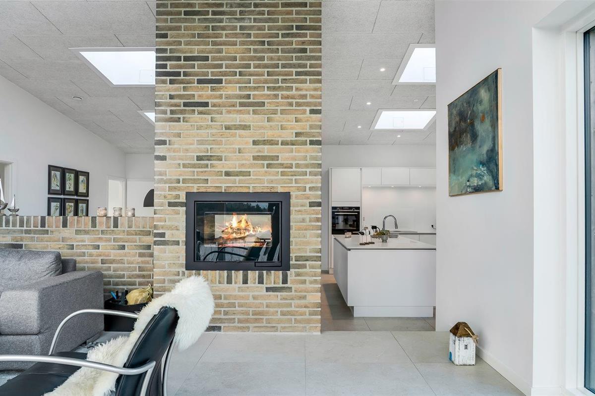 Modern vakantiehuis in Saltum met vloerverwarming, houtkachel, en elektrische laadpaal op groot natuurterrein.