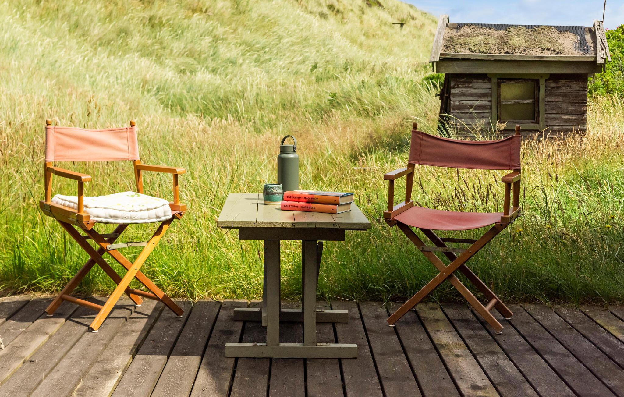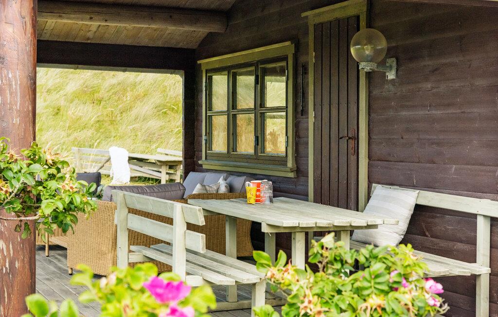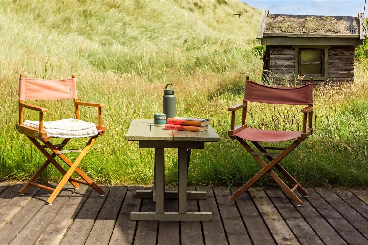 Beide terrassen bieden je hun charme, aan de ene kant kun je ontspannen in de zon achter het huis tussen de duinen, samen eten of kijken naar prachtige zonsondergangen en genieten van de kleuren op de veranda voor het huis.