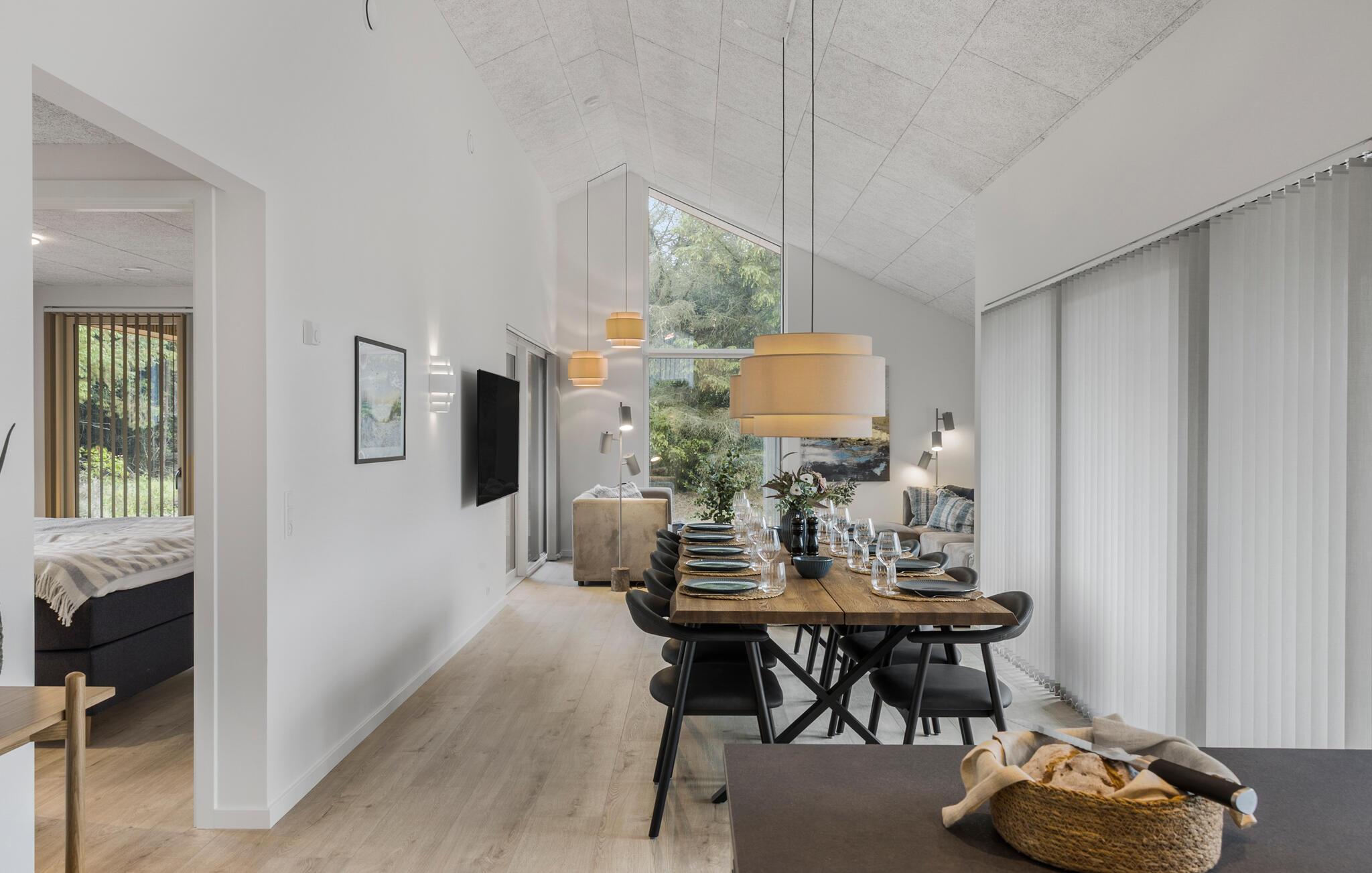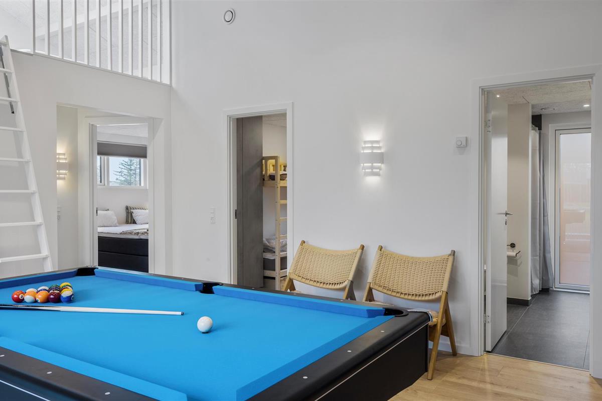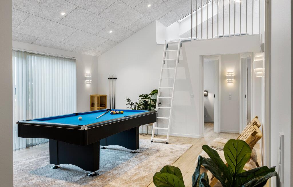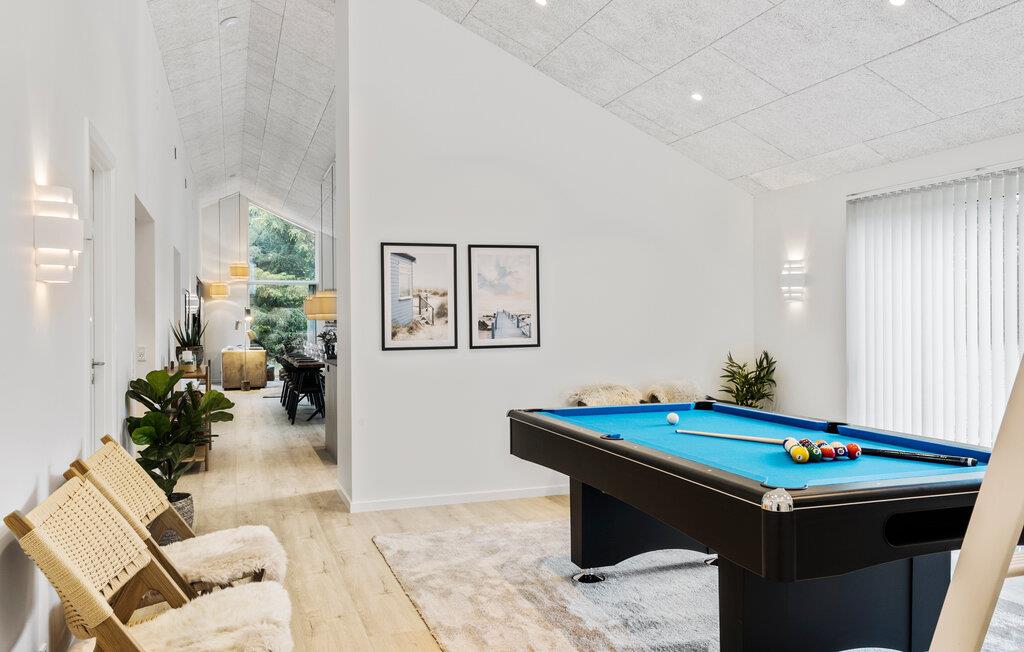Dit luxueus ingerichte en onder architectuur gebouwde zomerhuis biedt je volop ruimte om met een grotere familie of vriendengroep te genieten van het stijlvolle interieur en de moderne extra's. Verheug je op gezellige maaltijden aan de gezellig verlichte eettafel, daag jezelf uit aan de pooltafel, kom samen voor ontspannen filmavonden in de knusse woonkamer of praat tot diep in de nacht bij onder het genot van een glas wijn.