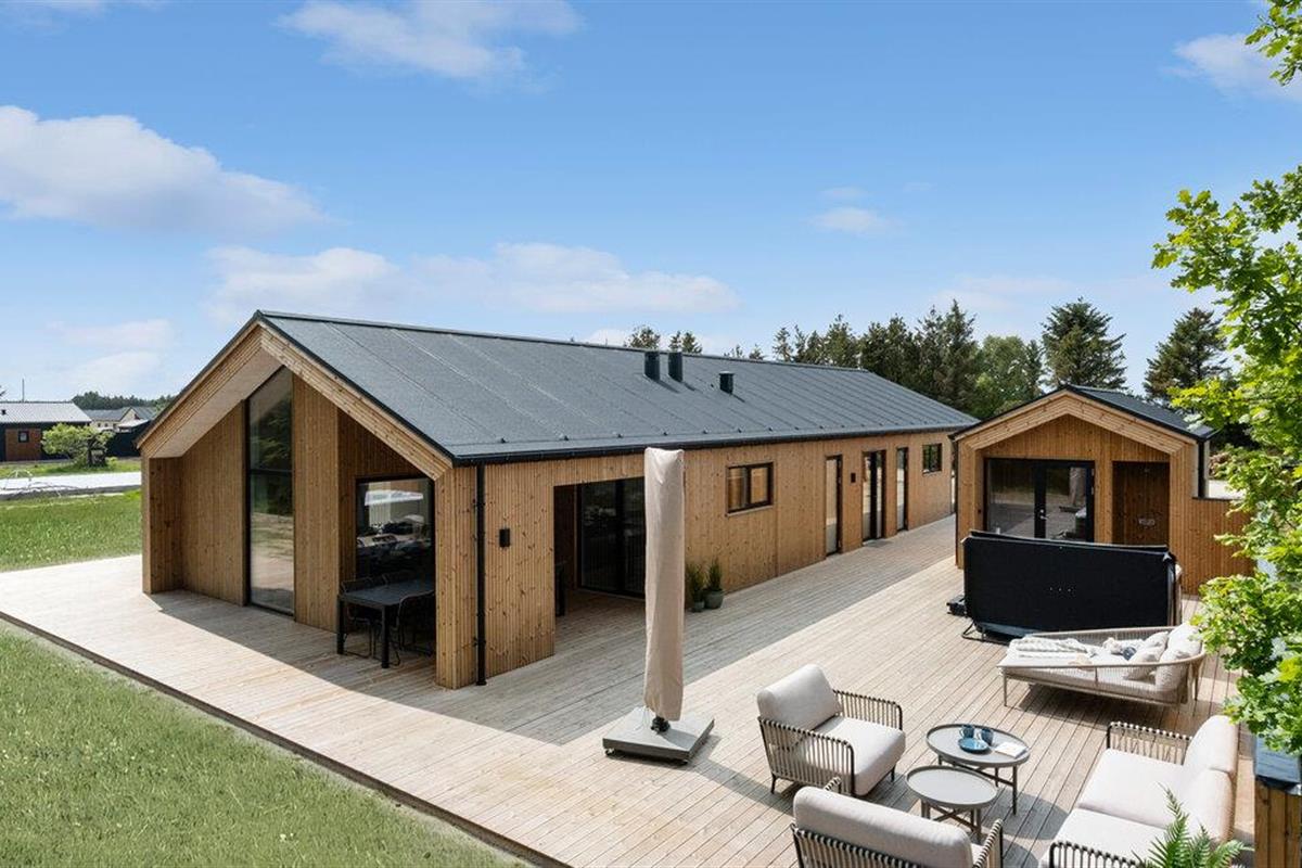 Geniet van een luxe vakantiehuis met whirlpool, sauna en pooltafel nabij het strand van Saltum.