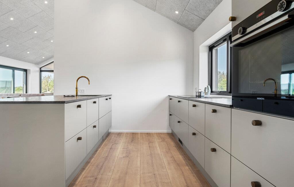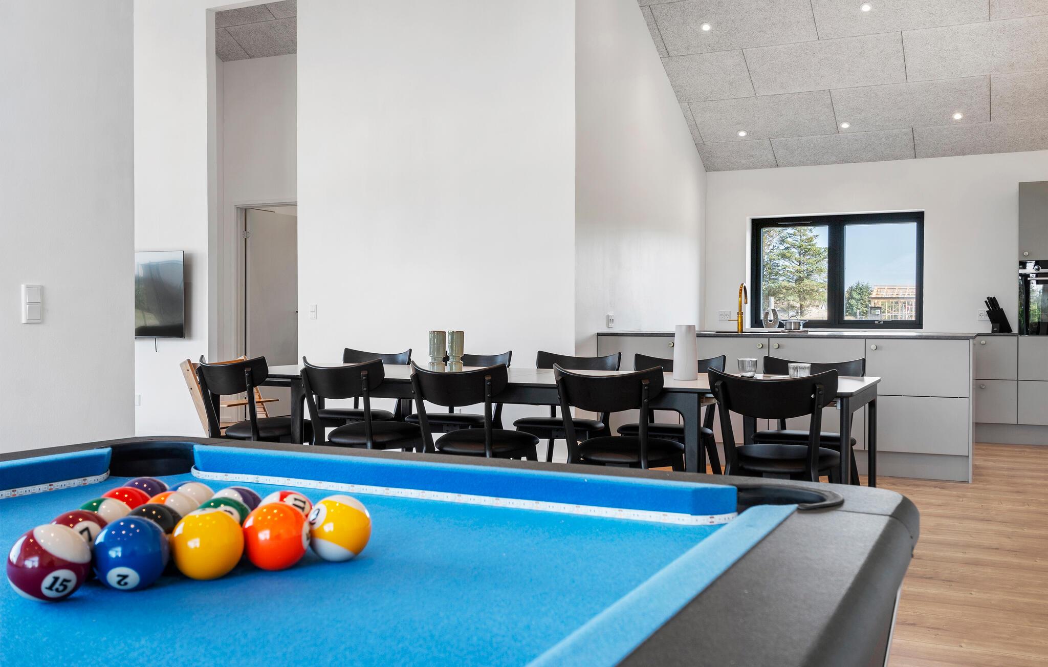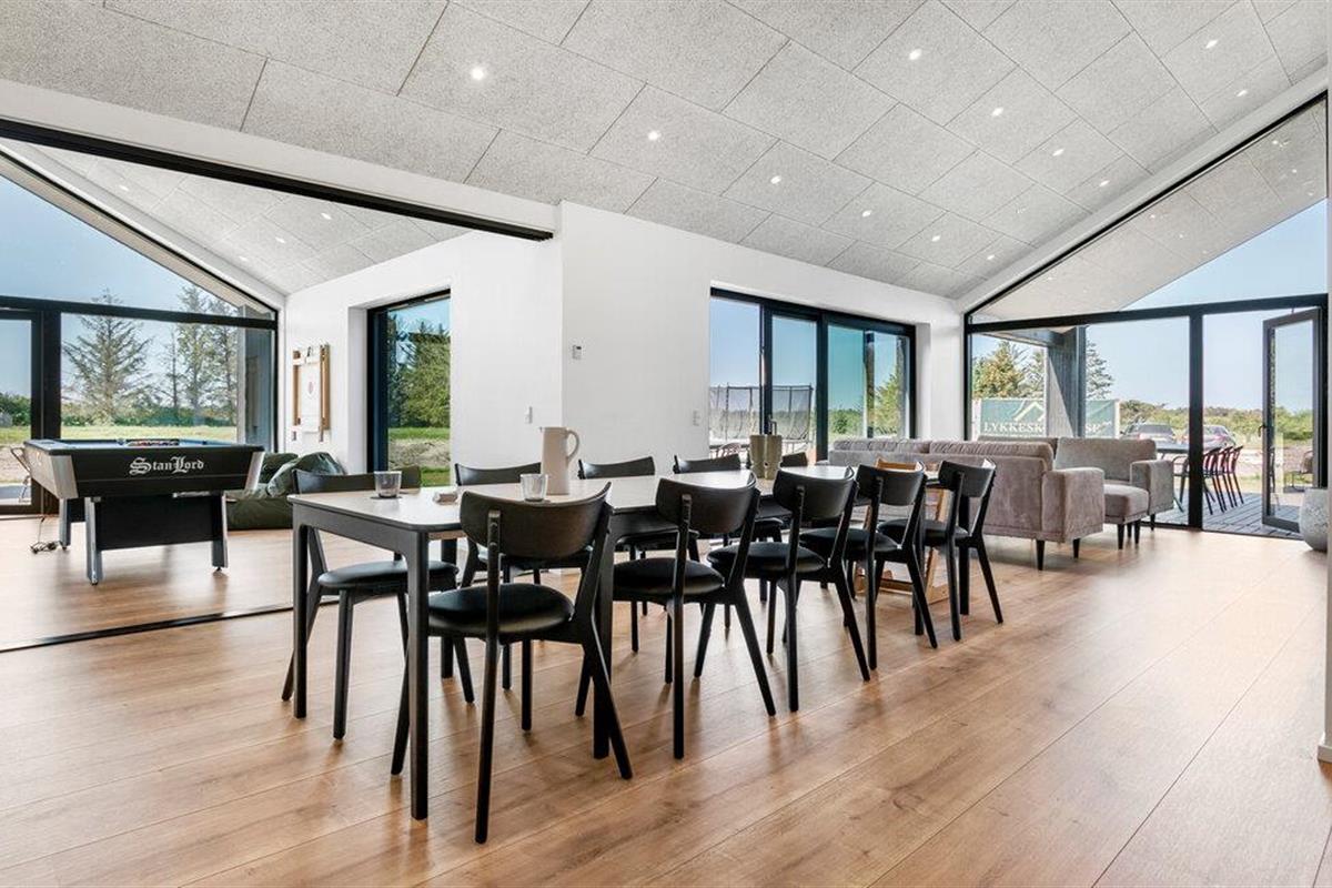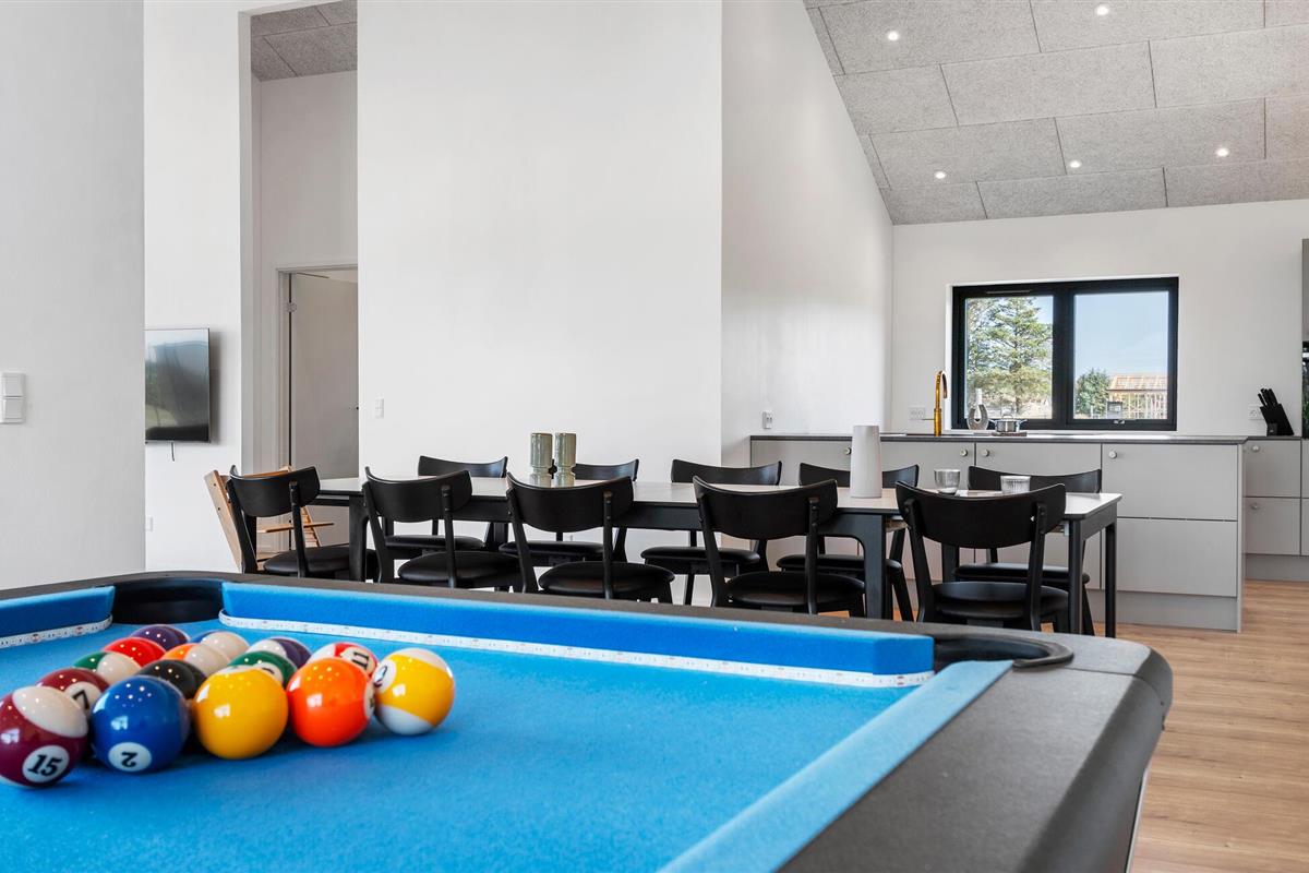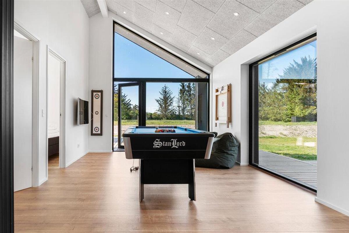Geniet van de prachtige omgeving en de vele vrijetijdsactiviteiten die je vakantiehuis aan de Deense westkust te bieden heeft. Je vakantiehuis op Saltum Strand maakt indruk met zijn stijlvolle architectuur en ruime kamers. De grote raampuien creëren een open, aangename sfeer en zorgen voor een zorgeloze vakantiestemming. Na een gezamenlijk ontbijt met het gezin, dat je kunt bereiden in de stijlvolle, open keuken, wacht de pooltafel op je voor een potje pool. Of bepaal de vakantiekampioen met tafeltennis.
