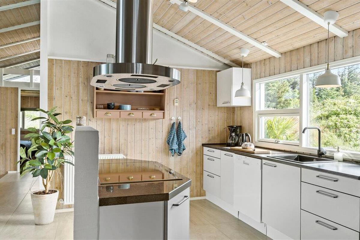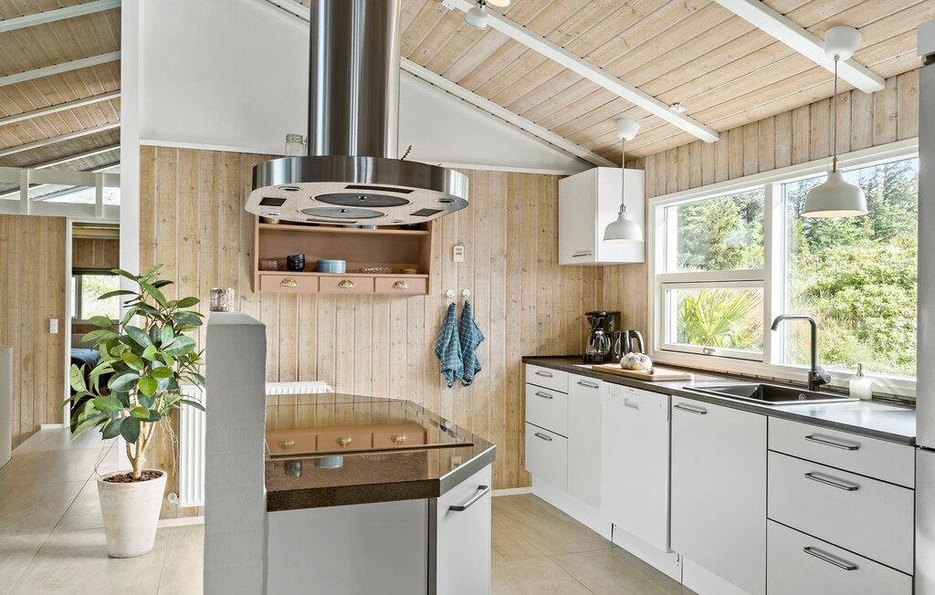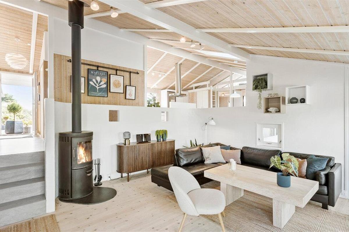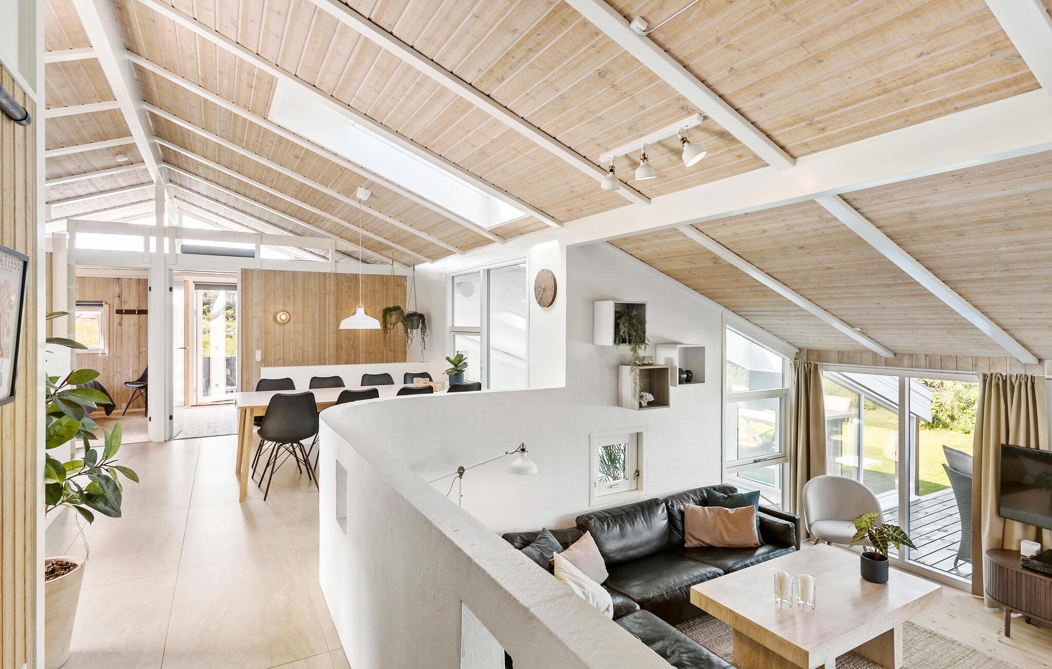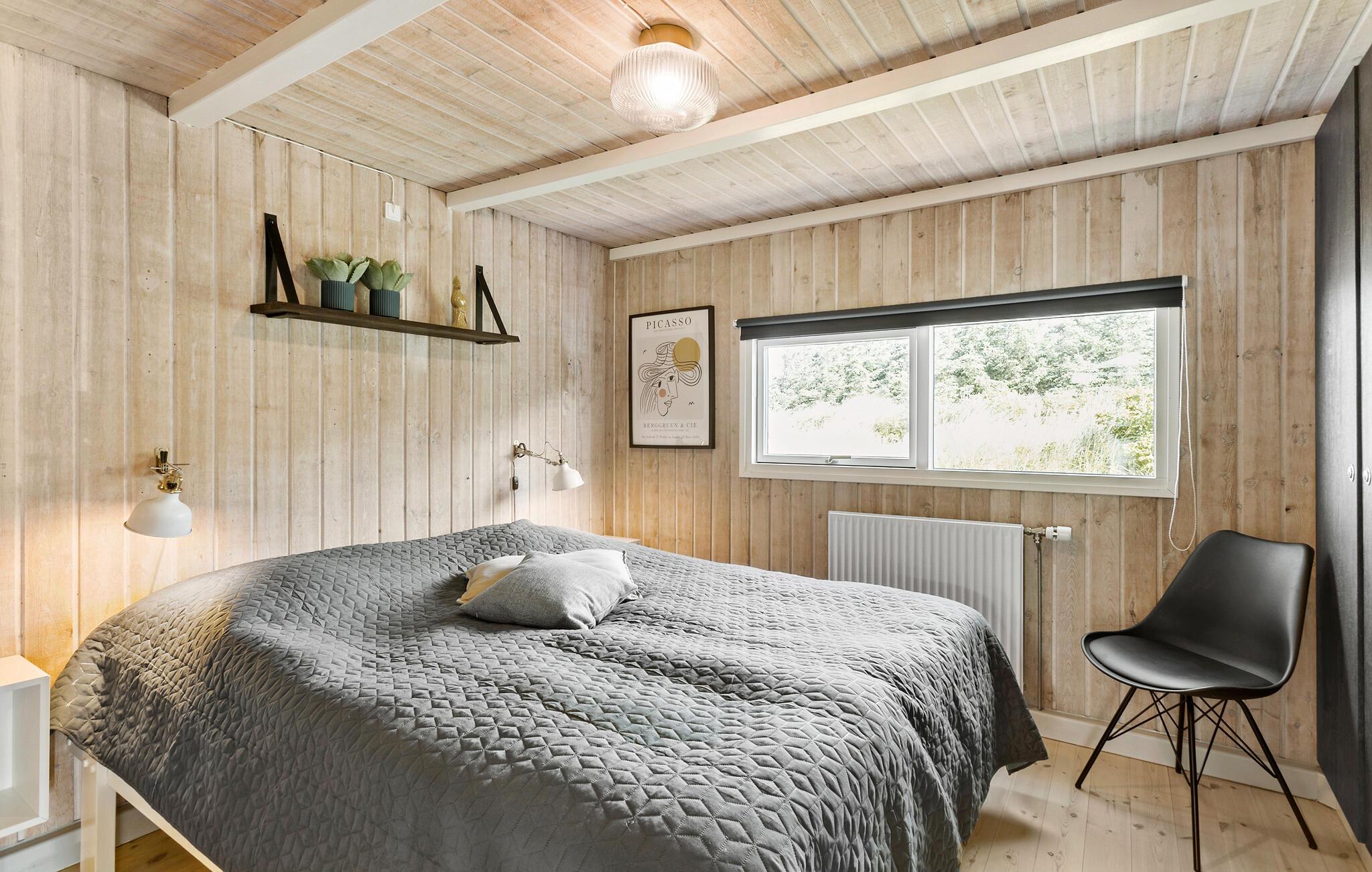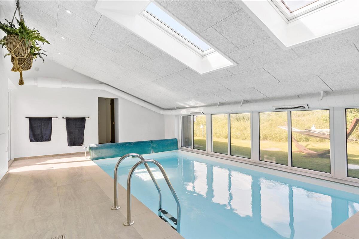 Hier verblijft u ook op loopafstand van een van de beste stranden van Denemarken. Het vakantiehuis is uiteraard van alle gemakken voorzien. Een van de attracties is het zwembad, dat u kunt zien vanuit de woonkamer/keuken en vanaf twee van de drie terrassen. In het zwembad bevinden zich een bad, een sauna en ligstoelen. De sfeer in de woonkeuken is gezellig en de vloer is gedeeltelijk verlaagd, wat een interessant perspectief oplevert. De terrassen en de lampen in de tuin bieden ontspanning met veel sfeer.