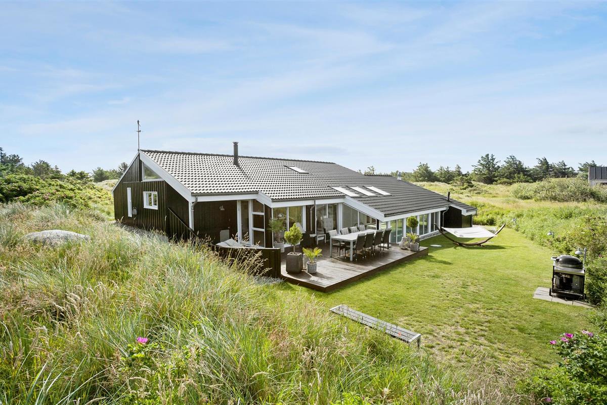 Prachtig vakantiehuis nabij strand met zwembad, sauna en sfeervolle terrassen in het duinlandschap van Saltum.