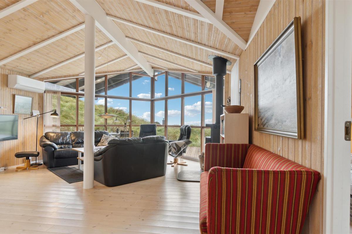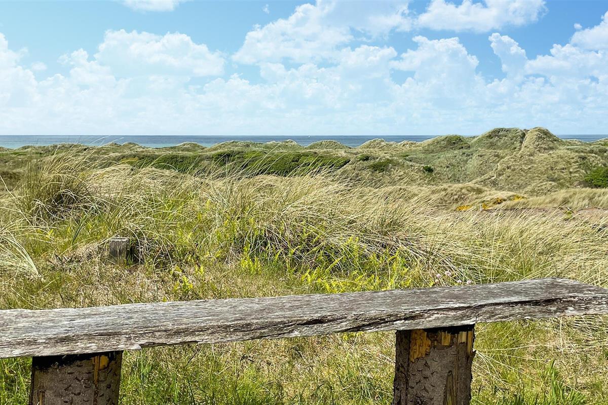 Geniet van een licht en gezellig vakantiehuis met zeezicht vlak bij het zandstrand van Saltum, omringd door duinen.
