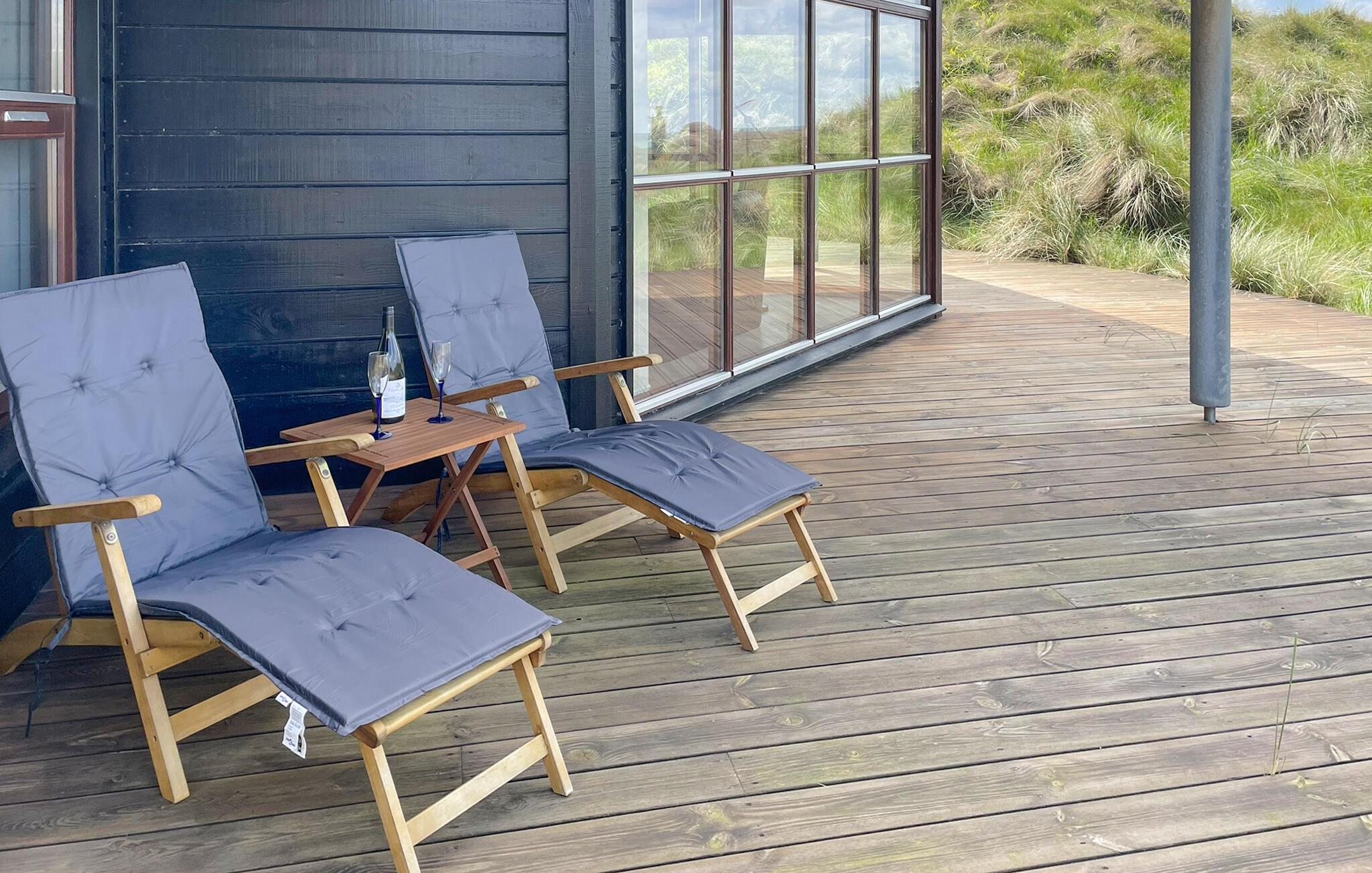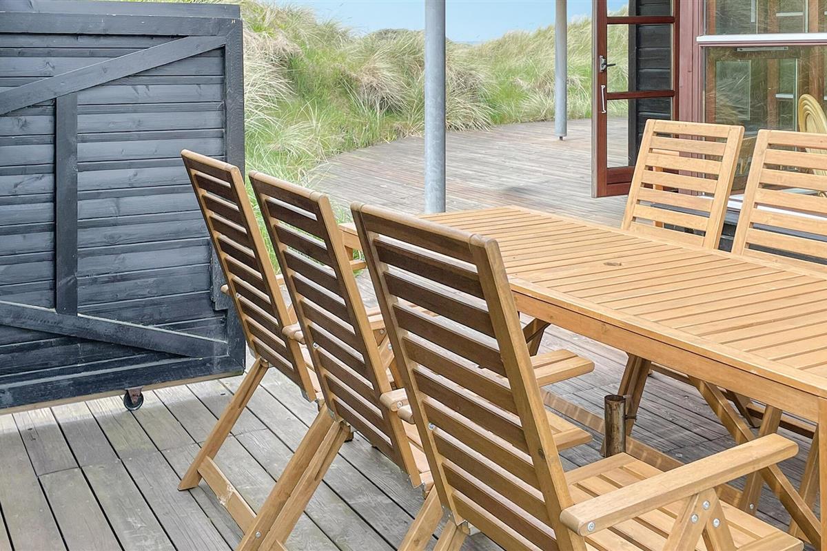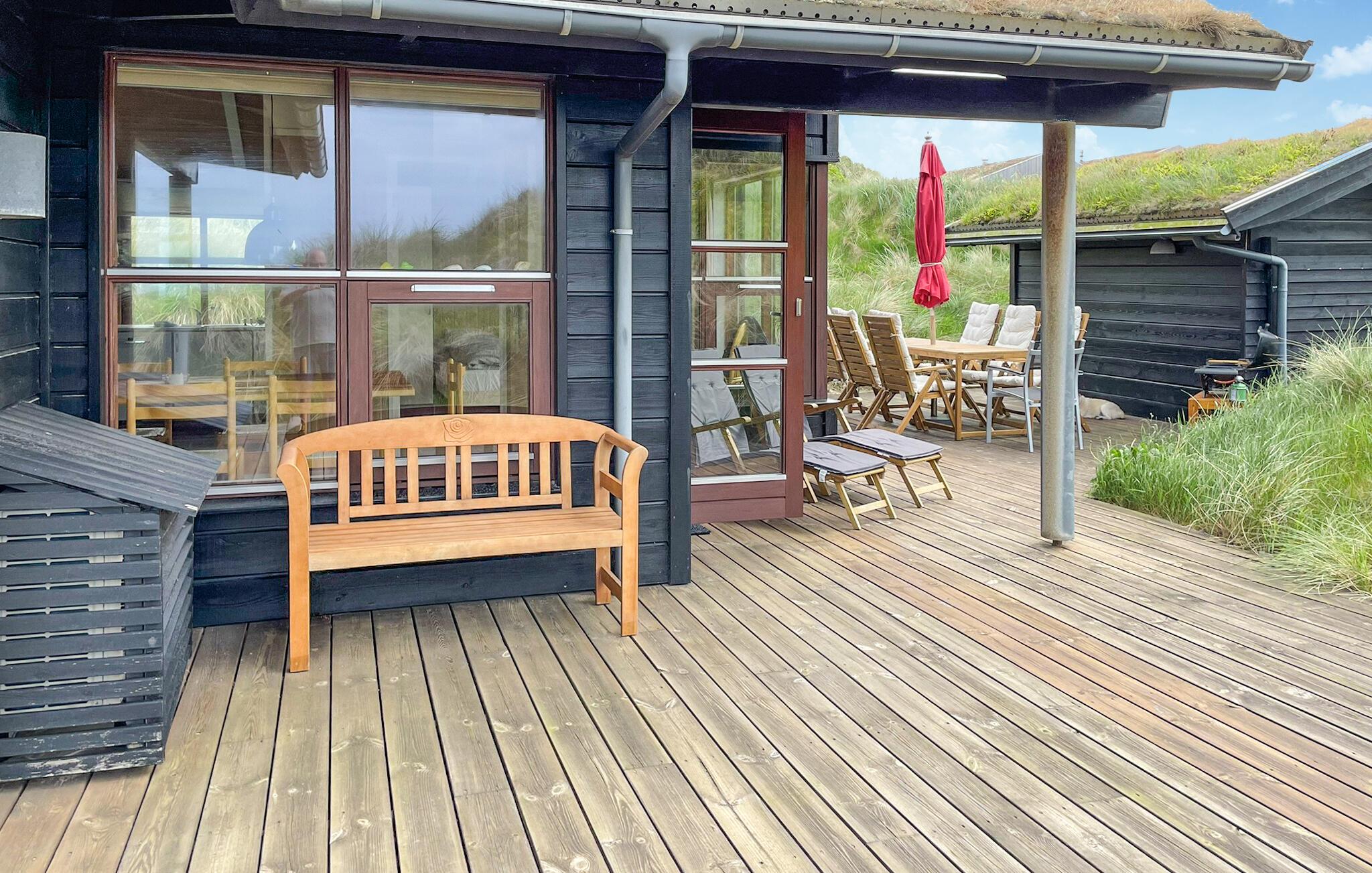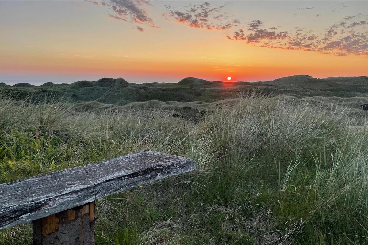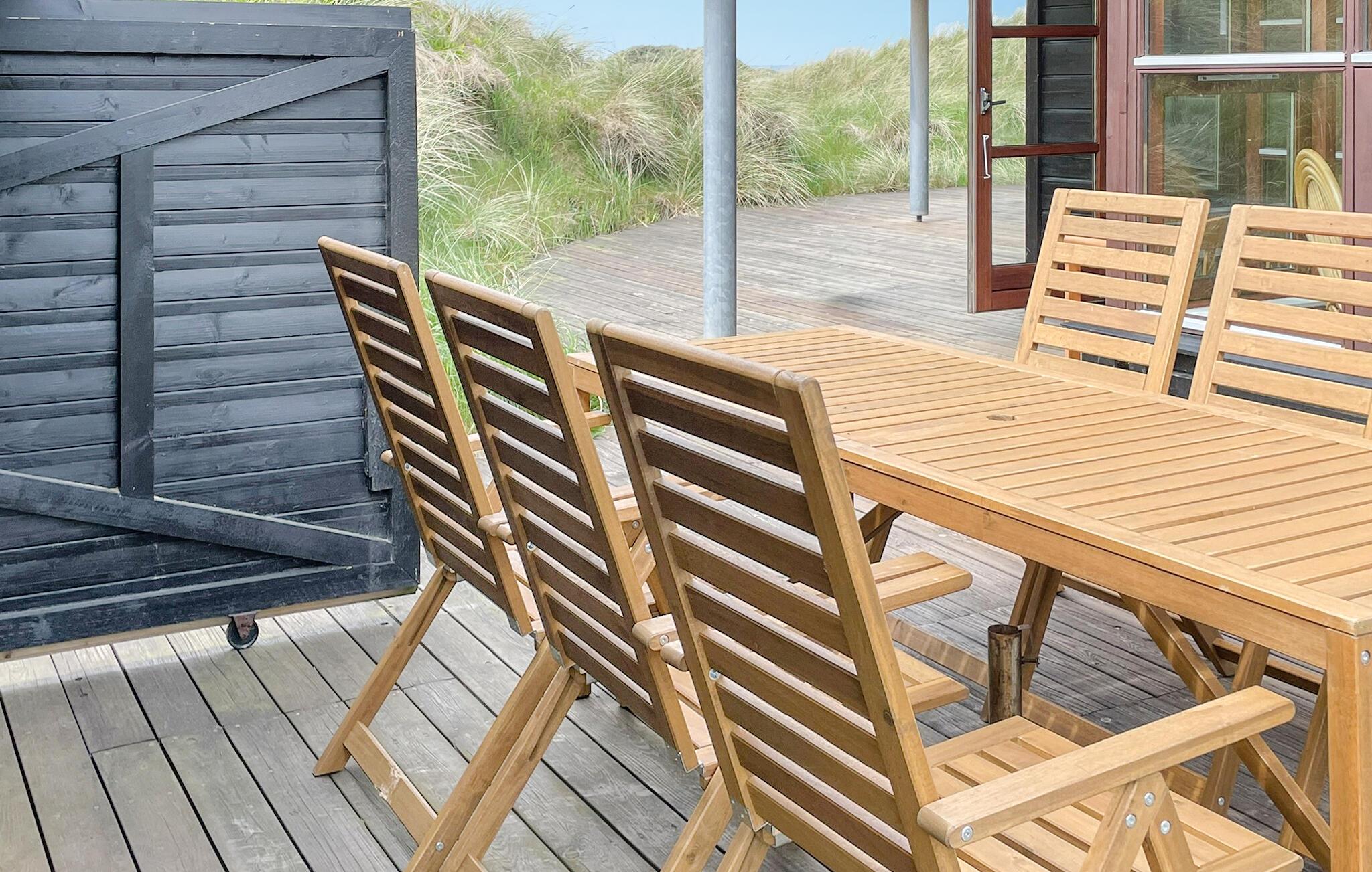 In de zomermaanden nodigt het mooie houten terras je uit om buiten te dineren, of je kunt de trap oplopen naar de duinen, waar je 's avonds kunt genieten van prachtige zonsondergangen.