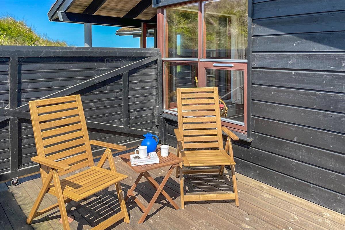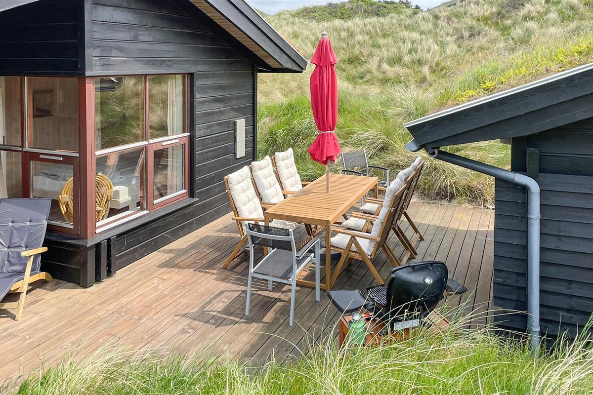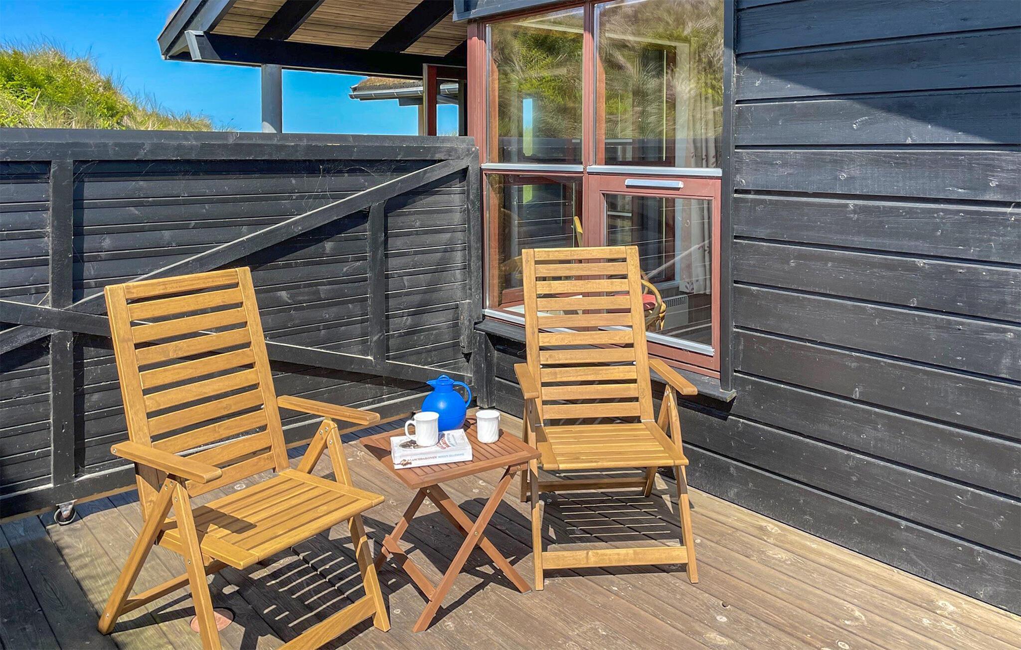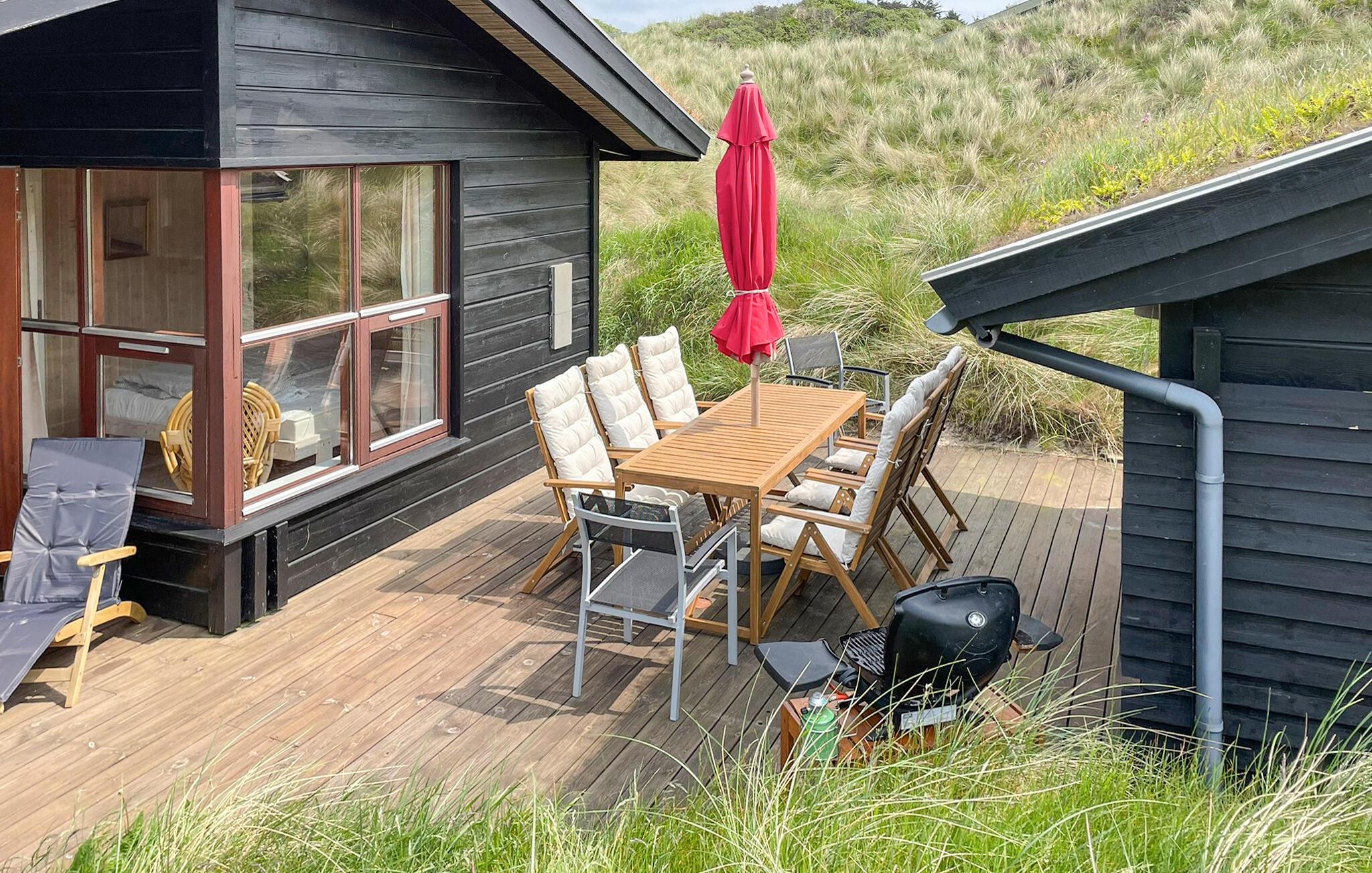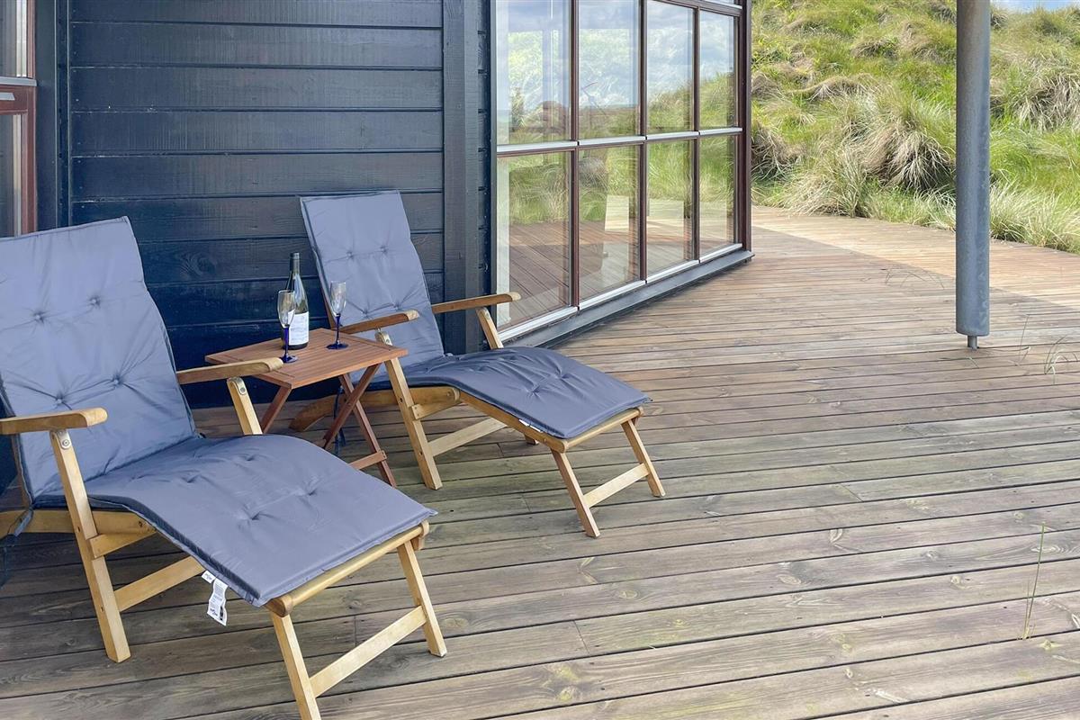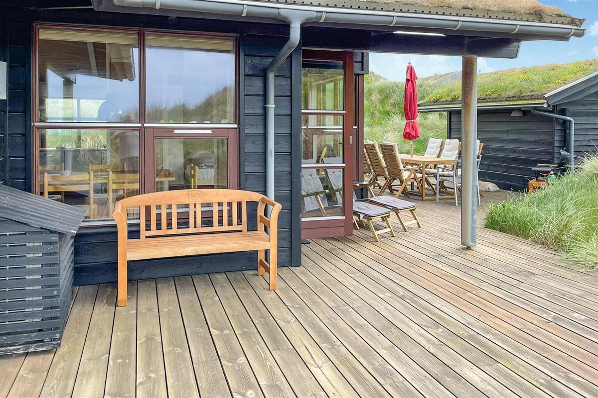 In de zomermaanden nodigt het mooie houten terras je uit om buiten te dineren, of je kunt de trap oplopen naar de duinen, waar je 's avonds kunt genieten van prachtige zonsondergangen.