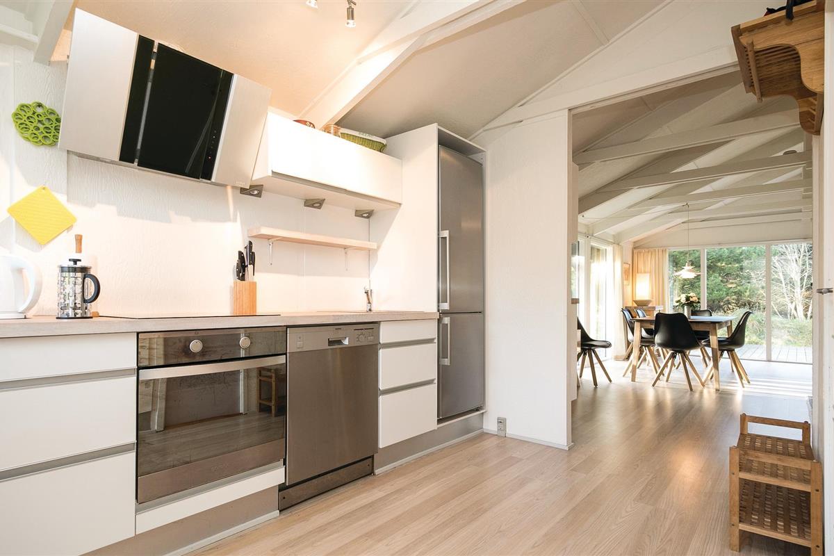 Op een prachtig, heuvelachtig terrein met mooie begroeiing ligt dit gezellige vakantiehuis met een uitnodigend en ongestoord terras. Het huis is ongelooflijk licht en er liggen overal houten vloeren. Er is een praktische moderne keuken die open staat voor de gezellige eethoek en de woonkamer. Er zijn verschillende terrassen rondom het huis, zodat u vrij bent om te kiezen tussen zon en schaduw, een beschutte plek tegen de wind of een frisse bries. Als het een kille avond is, kunt u de kachel aansteken en genieten van de warmte terwijl u een film kijkt op de grote tv of een kaart- of bordspel speelt. Het is ongeveer 5 km naar de dichtstbijzijnde winkel en minder dan 40 km naar Aalborg, waar altijd iets te zien en te doen is, evenals een ruime keuze aan restaurants, cafés en winkels.