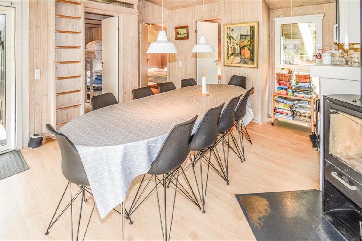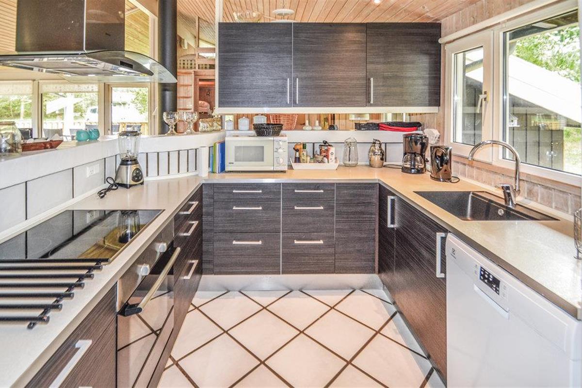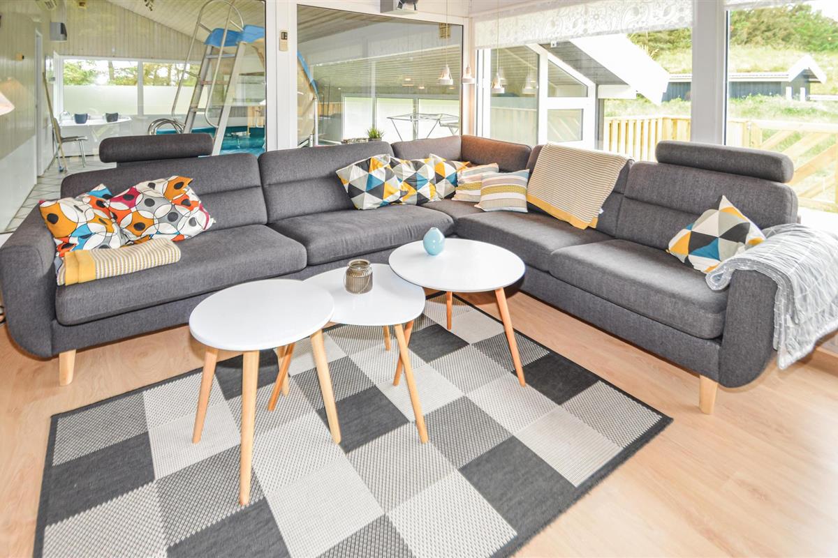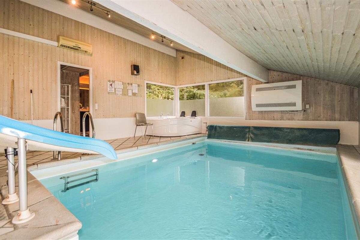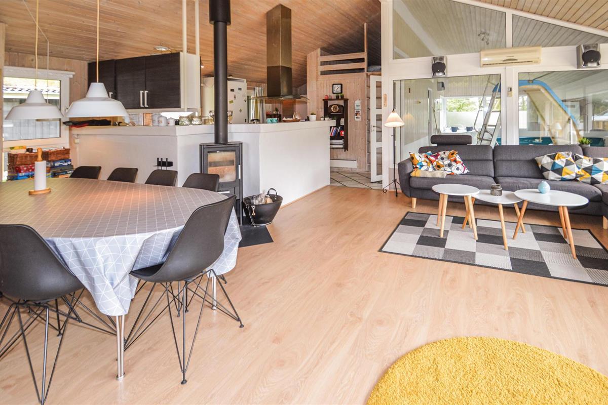 Het vakantiehuis ligt helemaal achteraan op een rustige plek en nodigt met al zijn ruimte uit tot een heerlijke vakantie. Het natuurlijke centrum wordt de ruime woon-keukenruimte en in de zwembadruimte zal iedereen zich zeker uren bezighouden met het zwembad, de waterglijbaan en het tegenzwemmen. Omsloten door naaldbomen vindt u op het terrein veel ruimte om u uit te leven, vooral als u thuiskomt van een lange dag zwemmen op het badstrand van Saltum of van het attractiepark Fårup Sommerland.