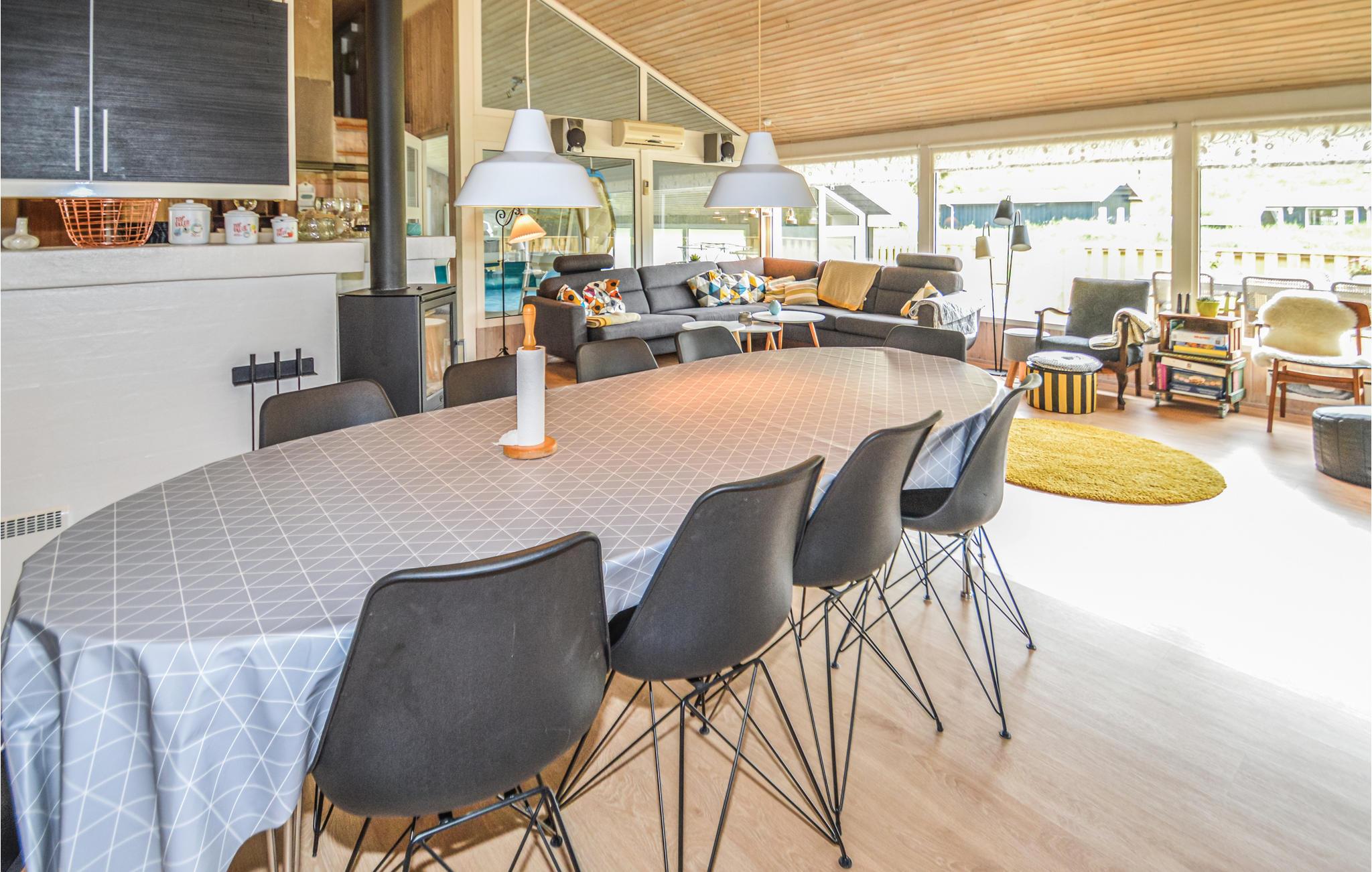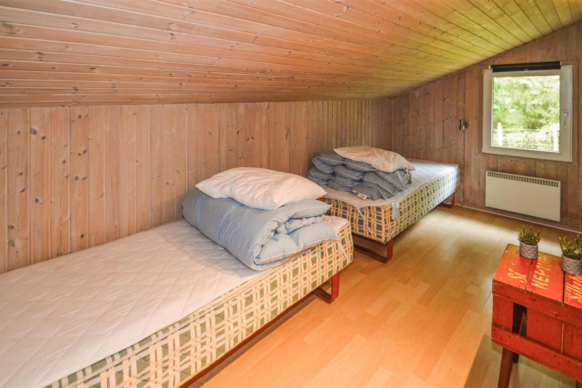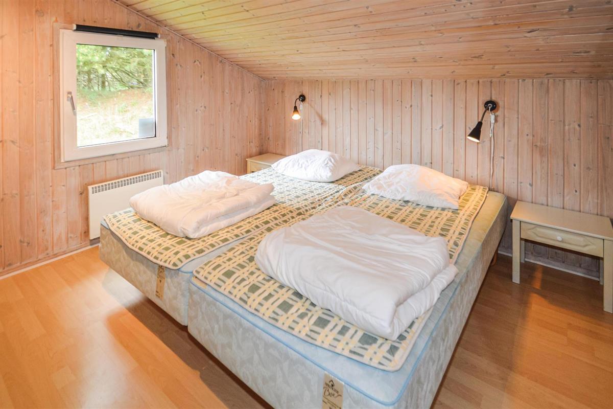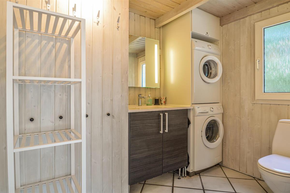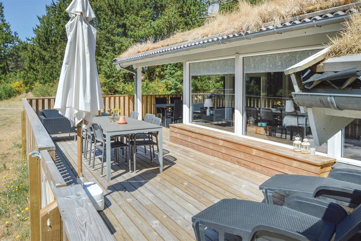 Het vakantiehuis ligt helemaal achteraan op een rustige plek en nodigt met al zijn ruimte uit tot een heerlijke vakantie. Het natuurlijke centrum wordt de ruime woon-keukenruimte en in de zwembadruimte zal iedereen zich zeker uren bezighouden met het zwembad, de waterglijbaan en het tegenzwemmen. Omsloten door naaldbomen vindt u op het terrein veel ruimte om u uit te leven, vooral als u thuiskomt van een lange dag zwemmen op het badstrand van Saltum of van het attractiepark Fårup Sommerland.