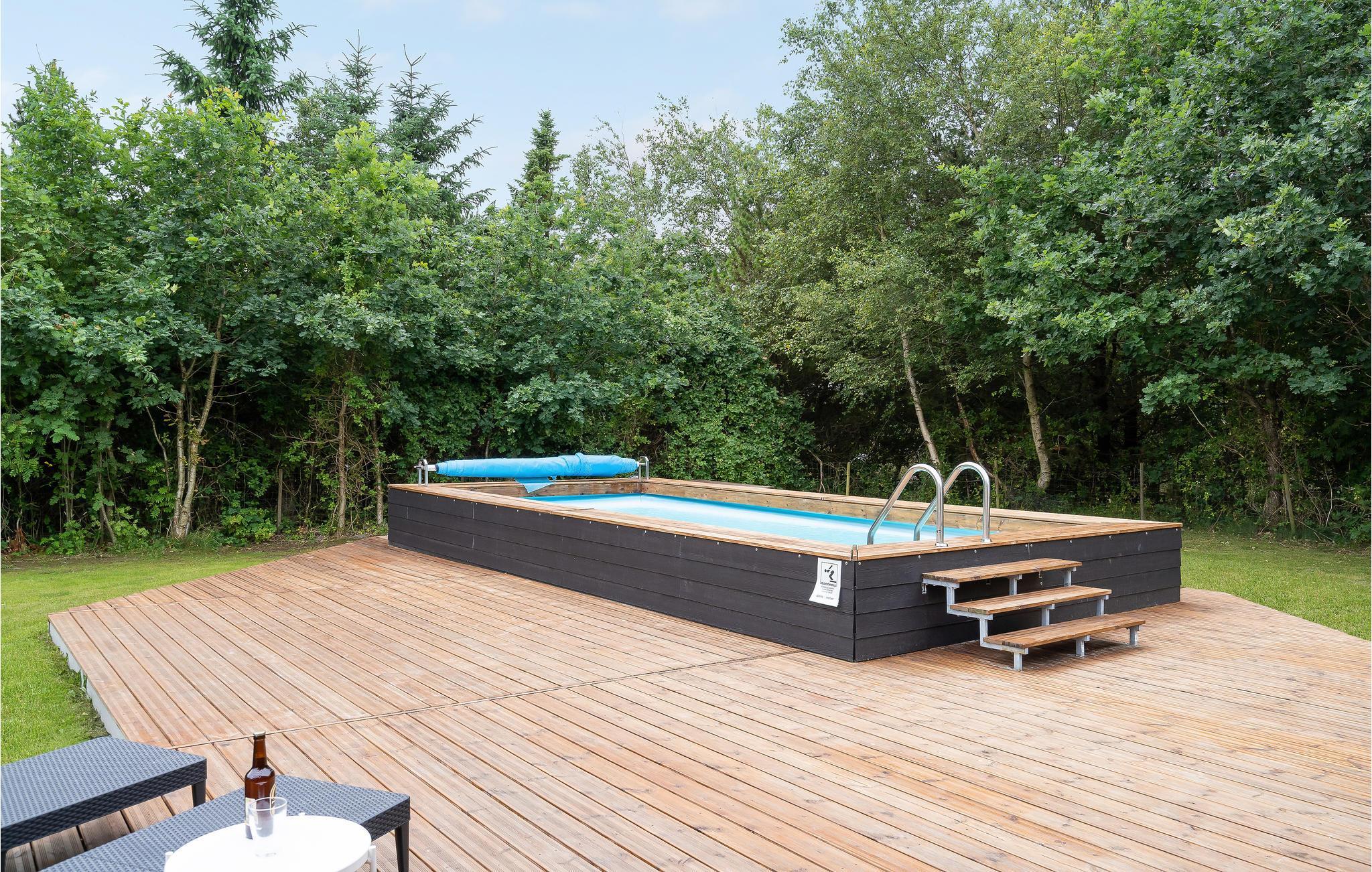 Vanuit de woonkamer heeft u toegang tot een groot terras waar zich het grote hoogtepunt van het huis bevindt - het buitenzwembad. Het zwembad is beschikbaar van week 21 tot week 38. Op het mooie terras kunt u genieten van het spel van de kinderen in het zwembad terwijl de verse aardappelen en groenten worden gewassen in de buitenkeuken. s Avonds, als het koeler wordt, kunt u onder het overdekte terras of in de gezellige gazebo kruipen.