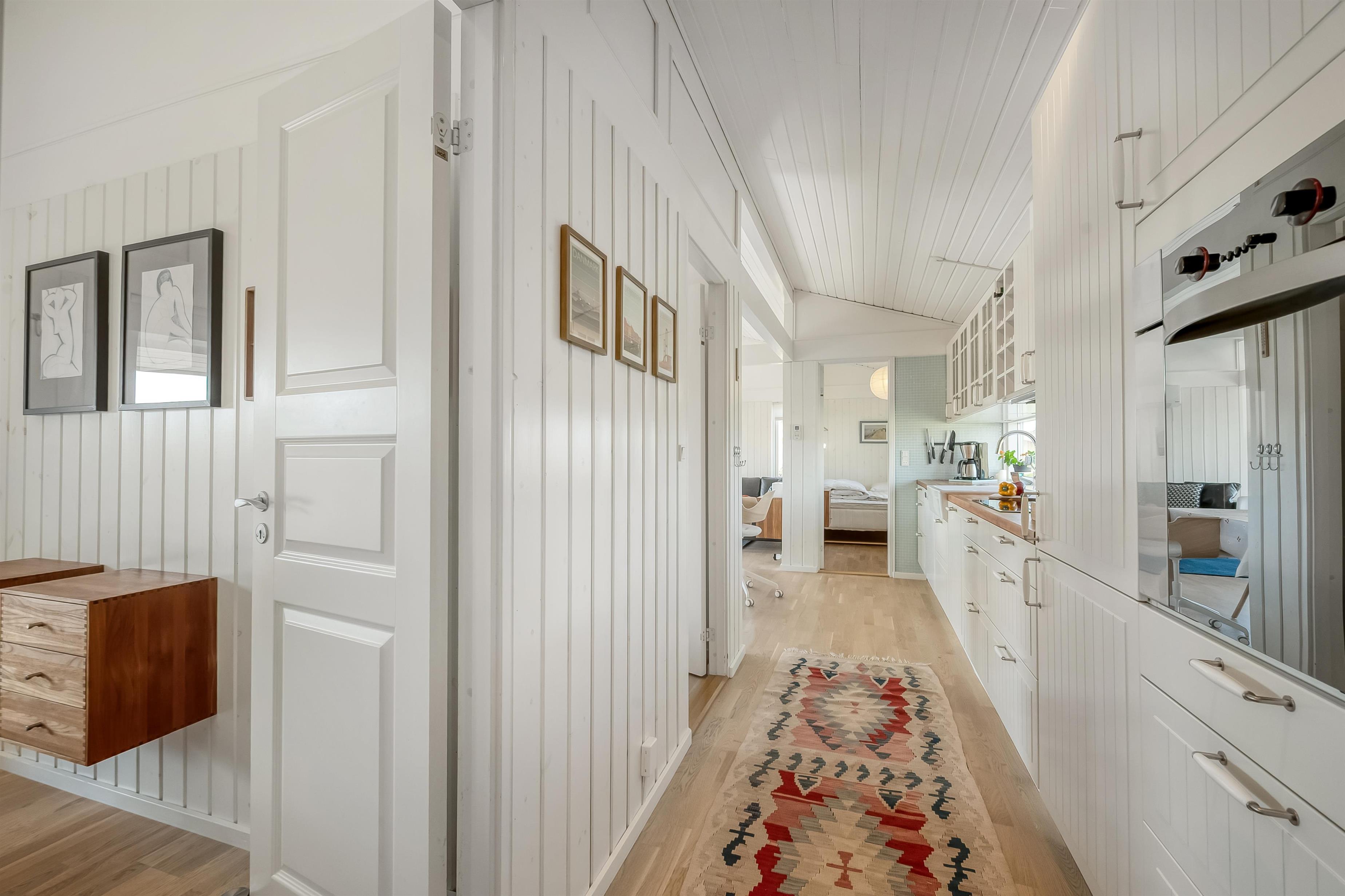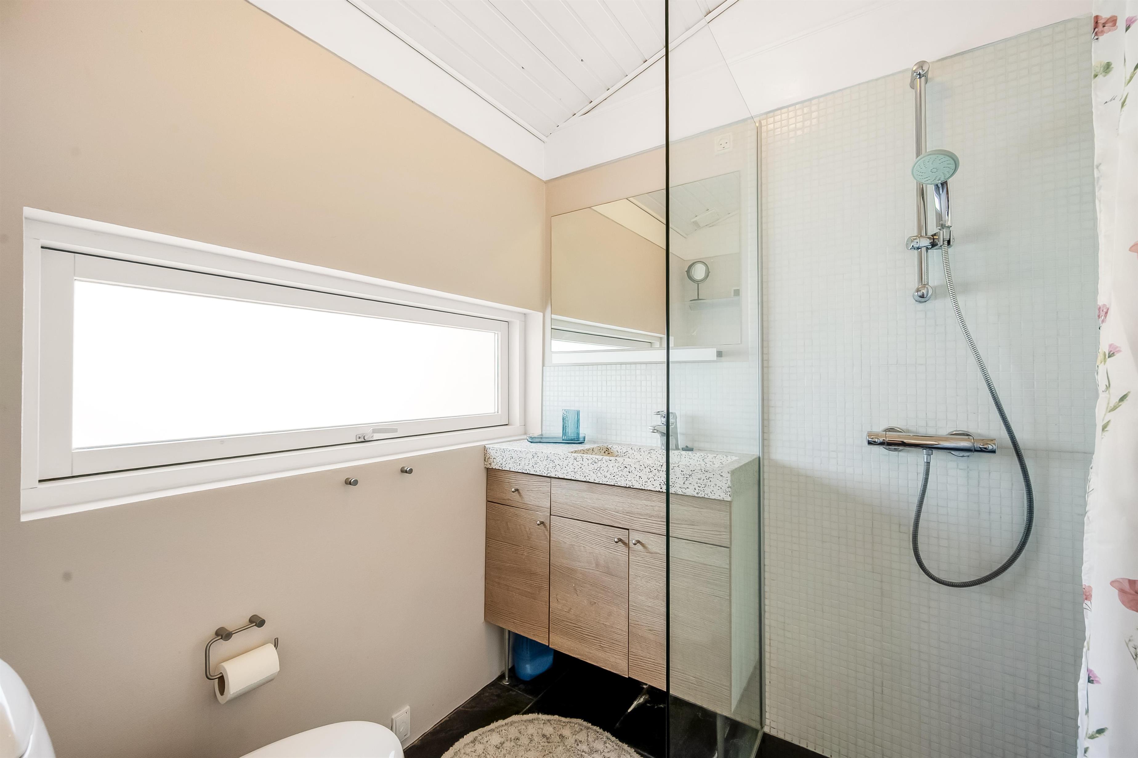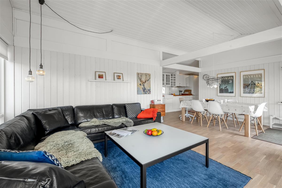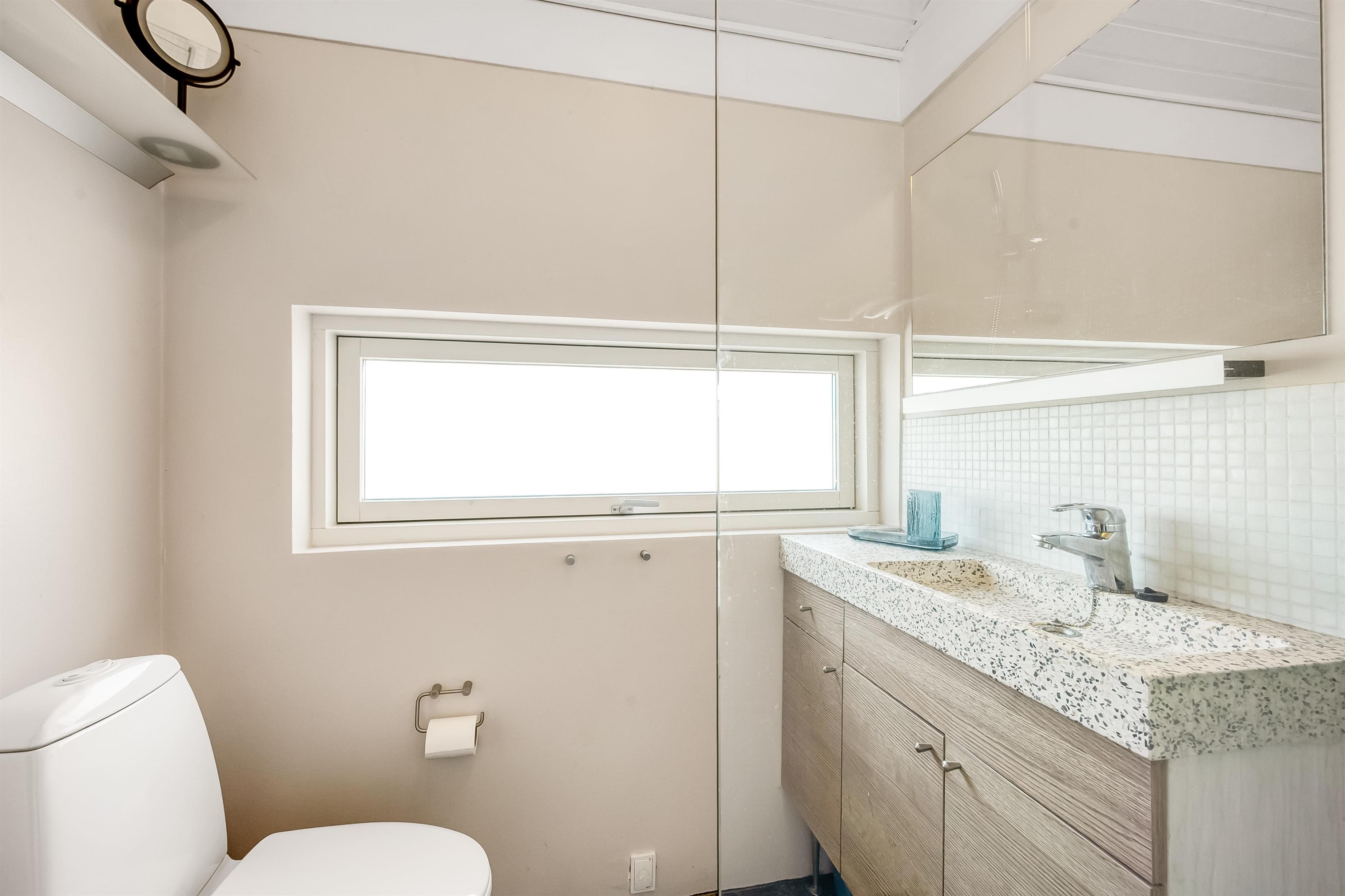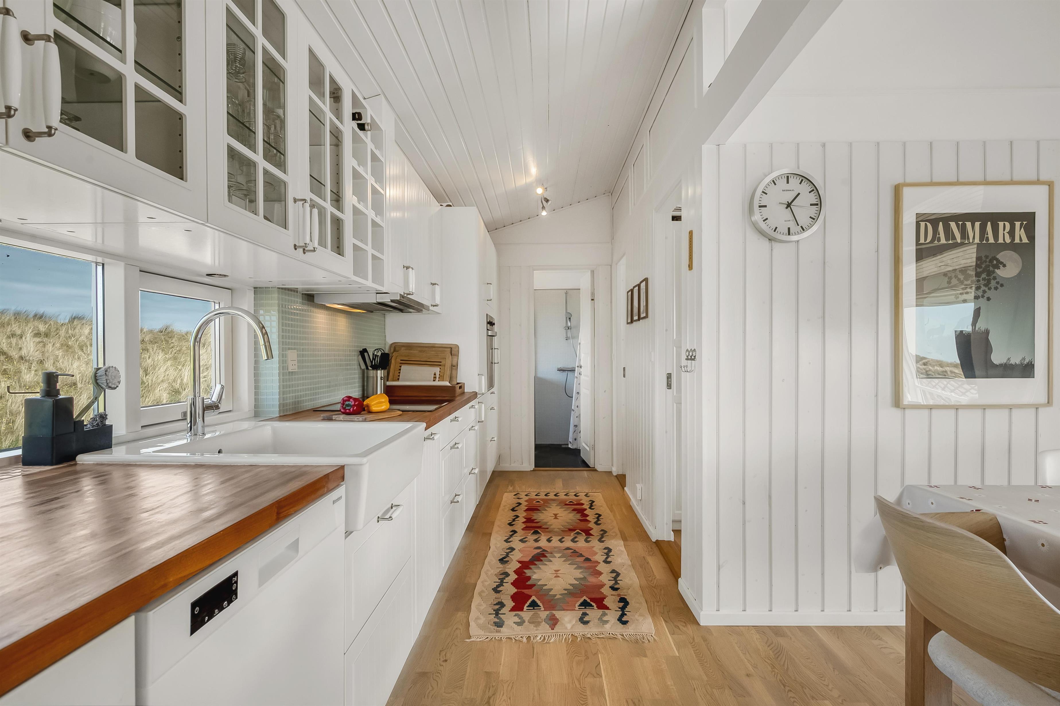 The modern house features a light and harmonious interior with large windows that bring the dune landscape right into the living room. The open-plan living area combines kitchen and lounge, and the wood-burning stove creates a cosy atmosphere on cool evenings. Two of the three bedrooms have direct access to the terrace, and the stylish bathroom completes the indoor comfort. Sleeps 5.