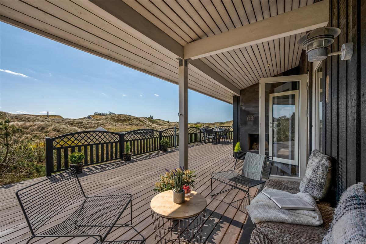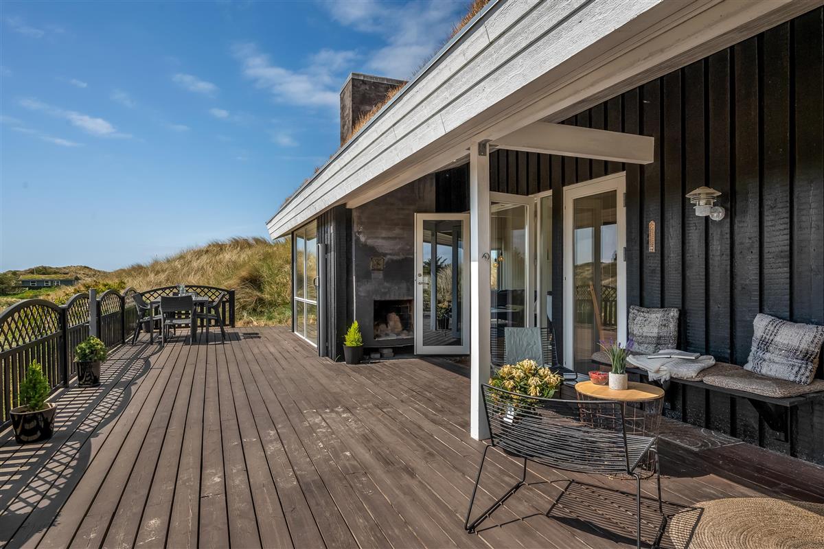 Outside, you’ll find several terraces – a large, partially covered south-facing one and a smaller, open east-facing terrace sheltered by the dunes. Here you can enjoy sun, peace, and holiday vibes throughout the day. In the evening, light the outdoor fireplace and soak in the last rays of light while listening to the waves of the North Sea.