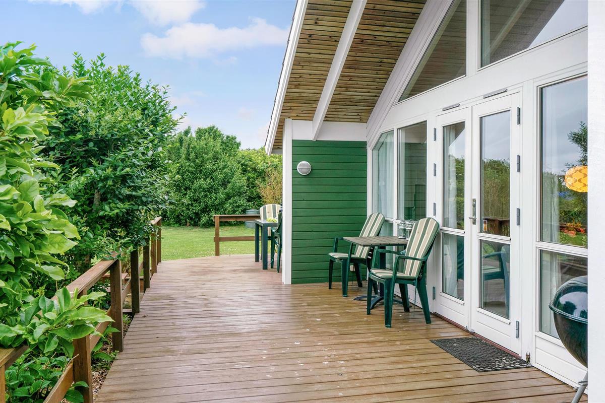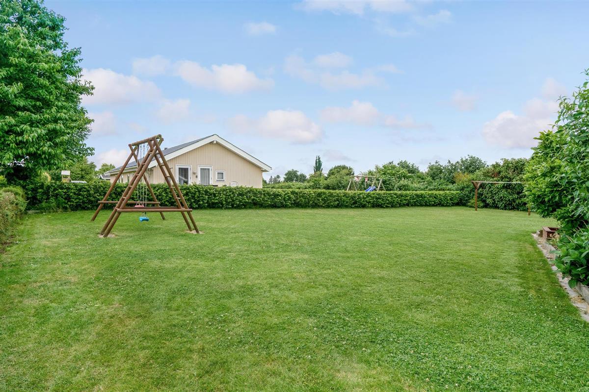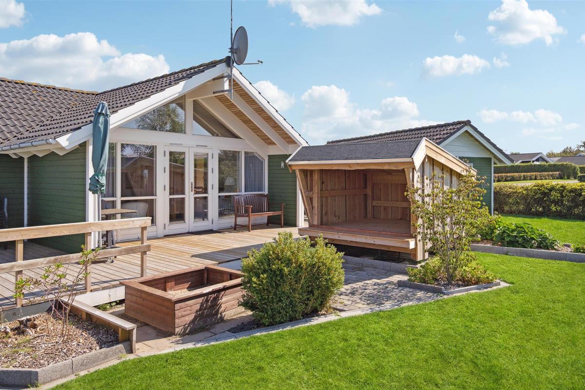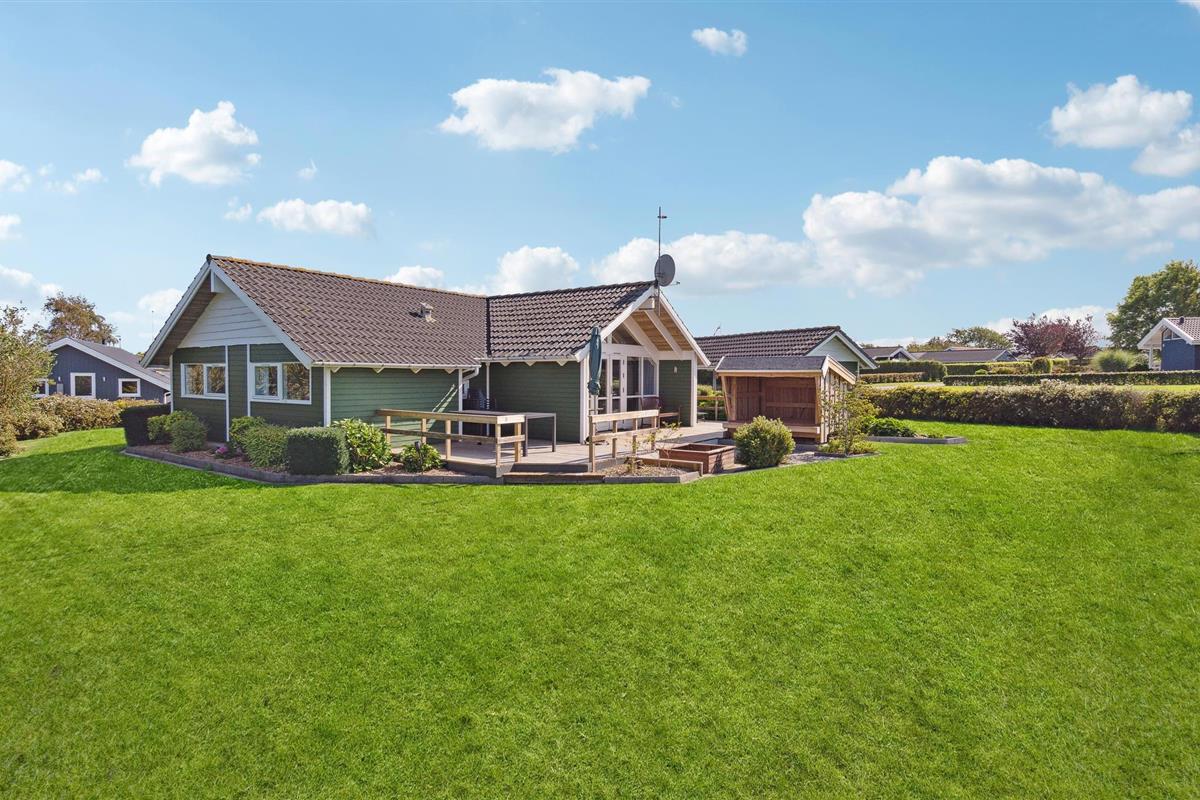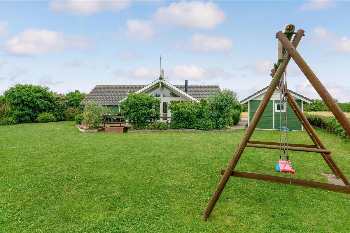 Dit mooie houten vakantiehuis ligt in het aantrekkelijke vakantiehuisgebied Sandager Næs, dicht bij het strand op een natuurlijk perceel met zandbak en schommel.