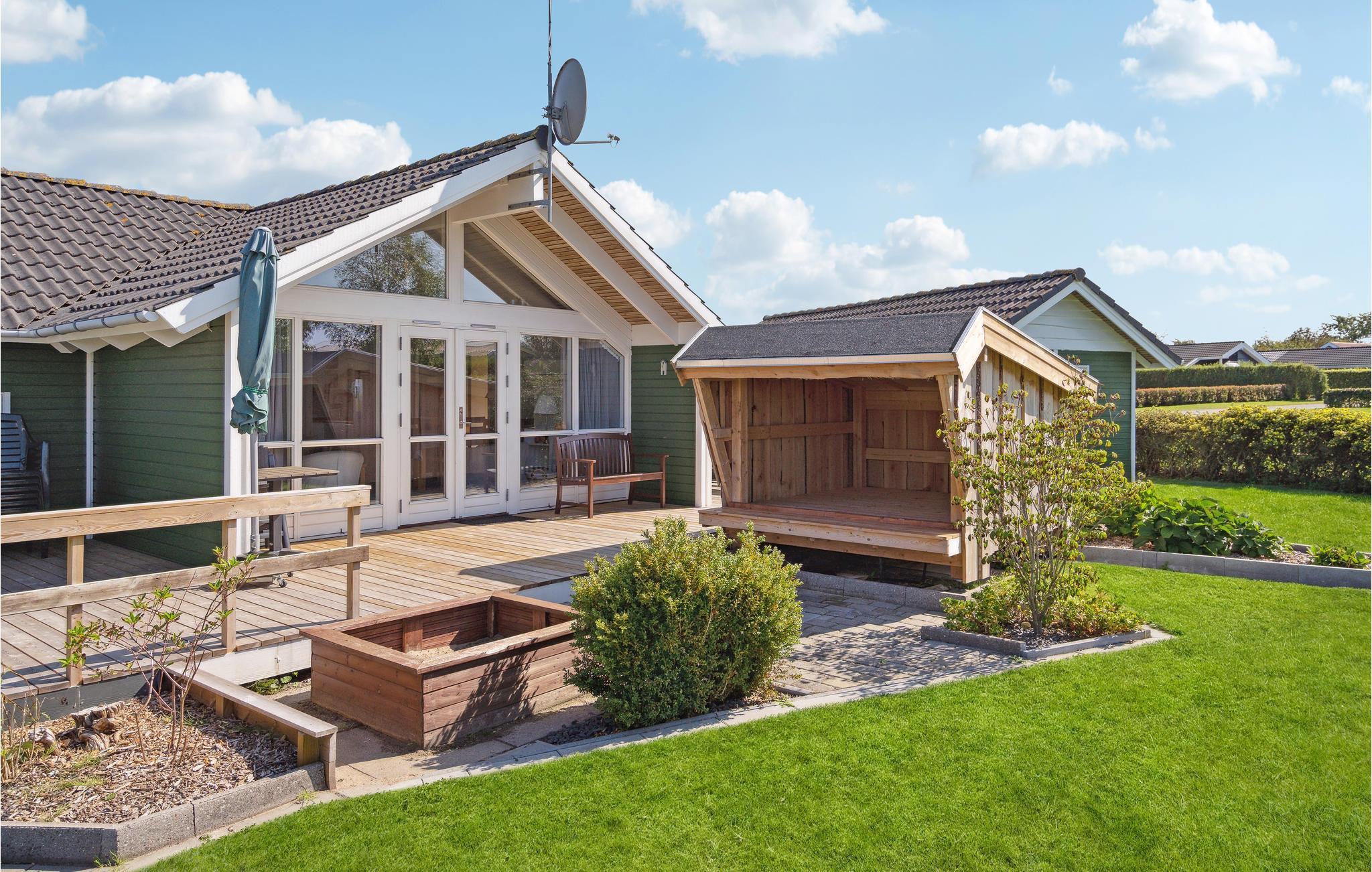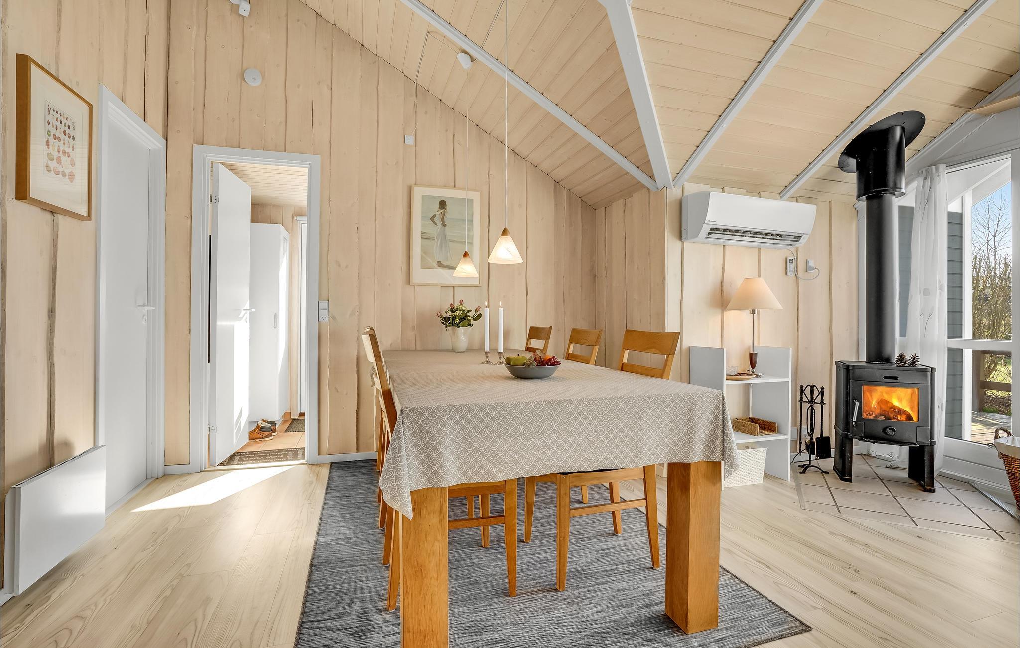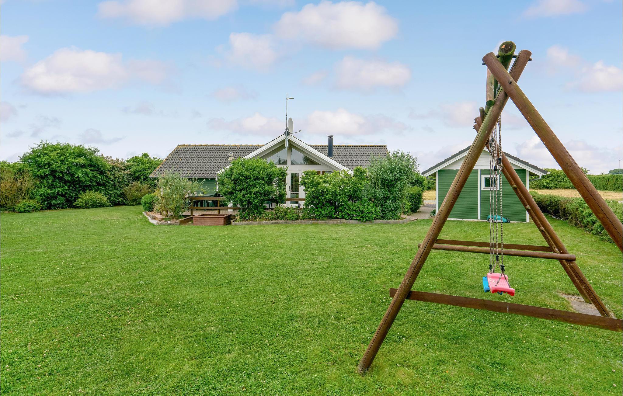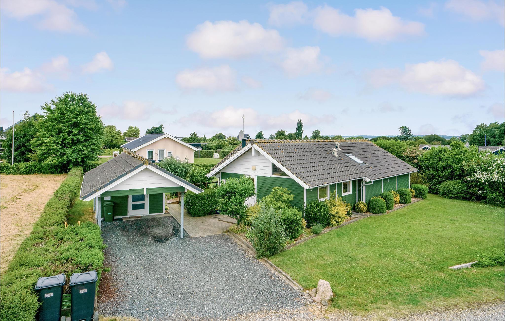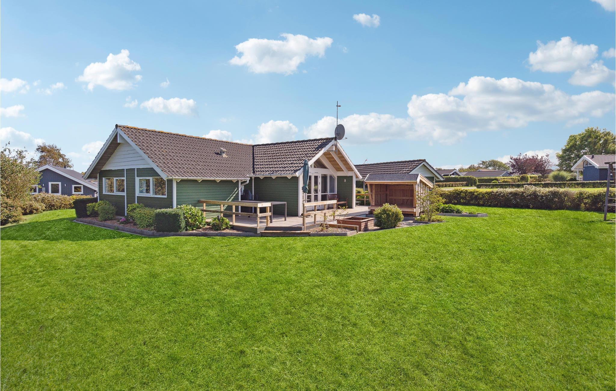 Dit mooie houten vakantiehuis ligt in het aantrekkelijke vakantiehuisgebied Sandager Næs, dicht bij het strand op een natuurlijk perceel met zandbak en schommel.
