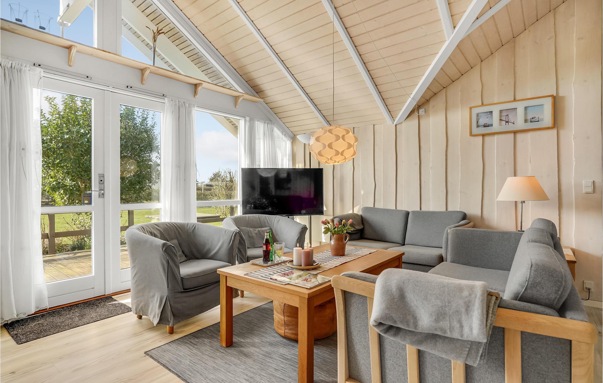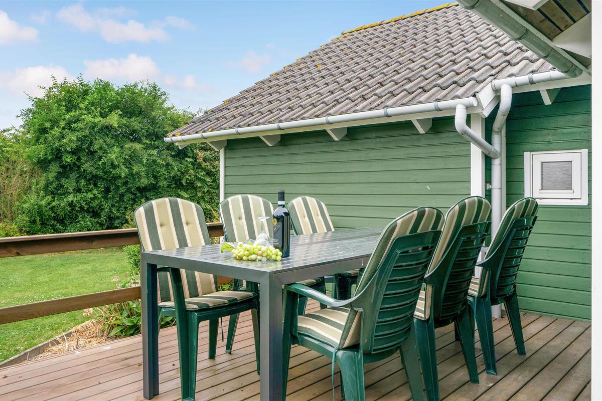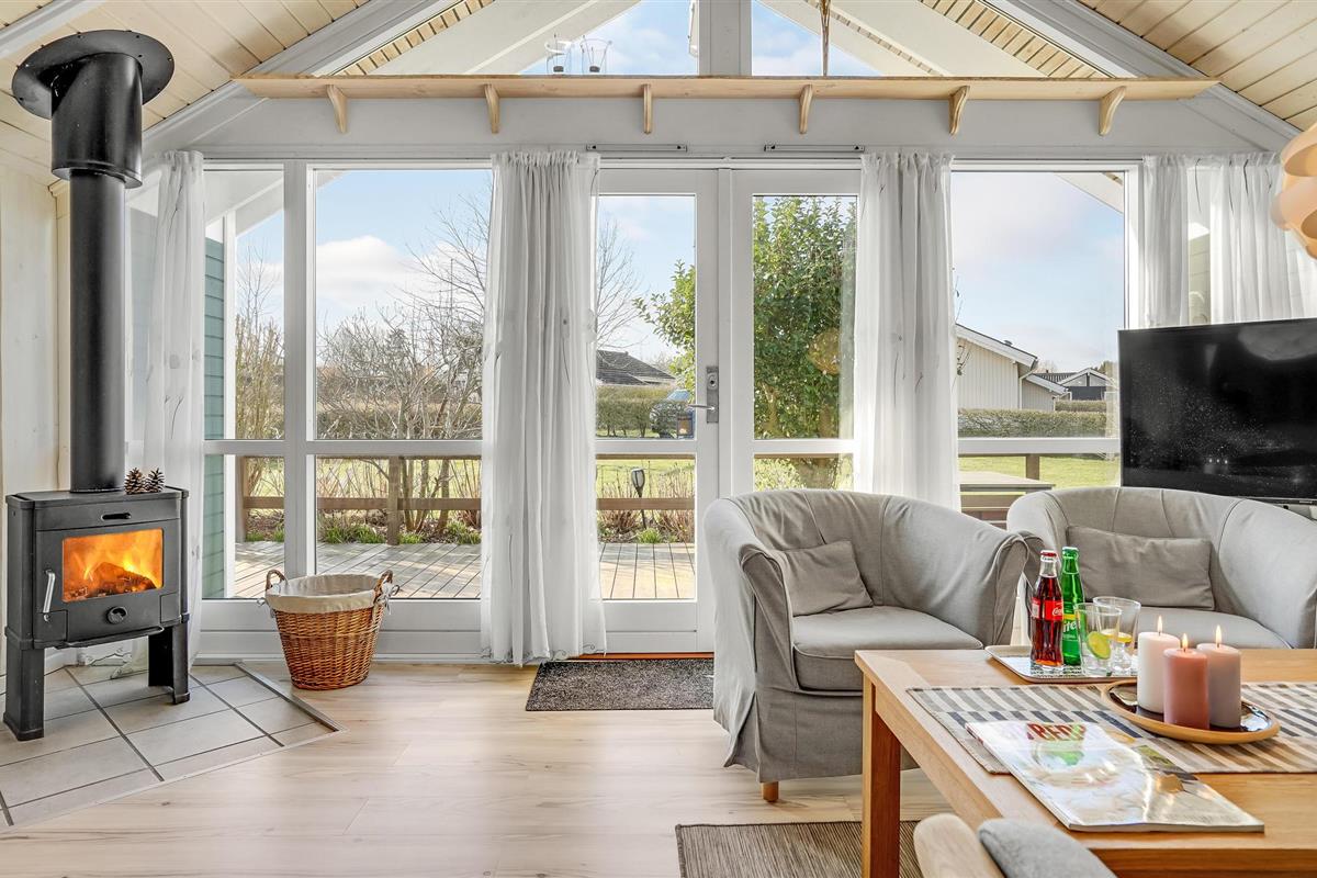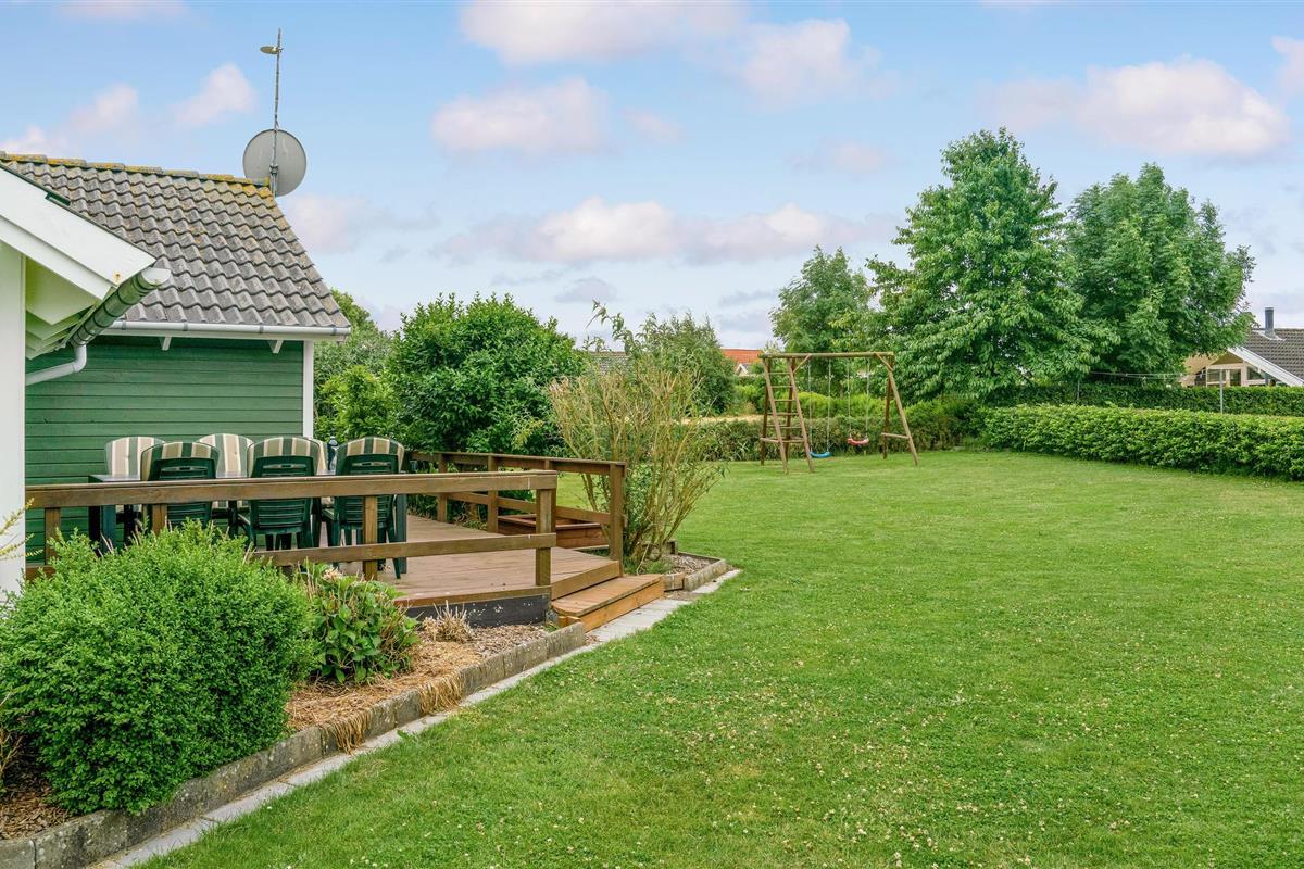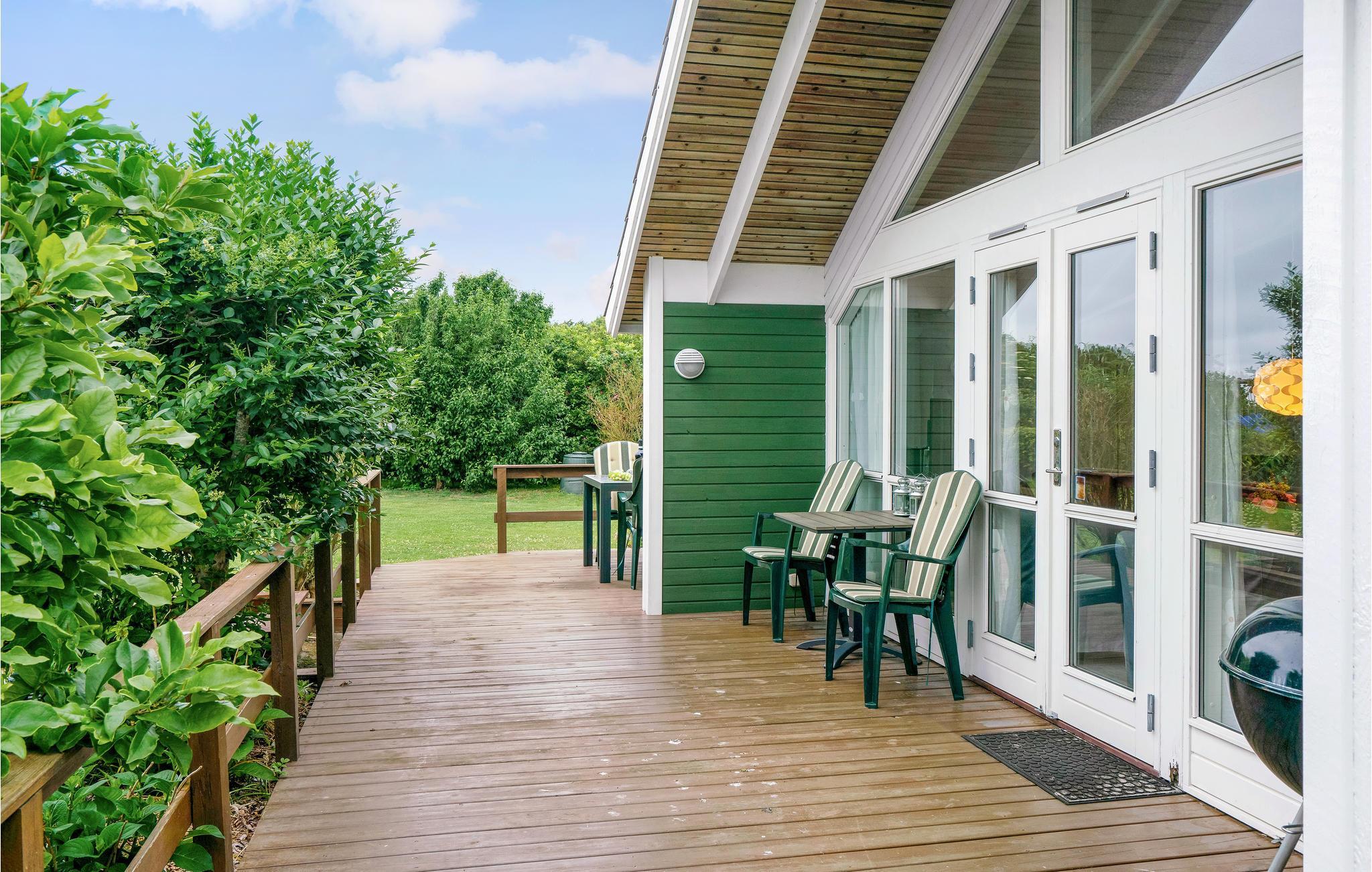 Dit mooie houten vakantiehuis ligt in het aantrekkelijke vakantiehuisgebied Sandager Næs, dicht bij het strand op een natuurlijk perceel met zandbak en schommel.