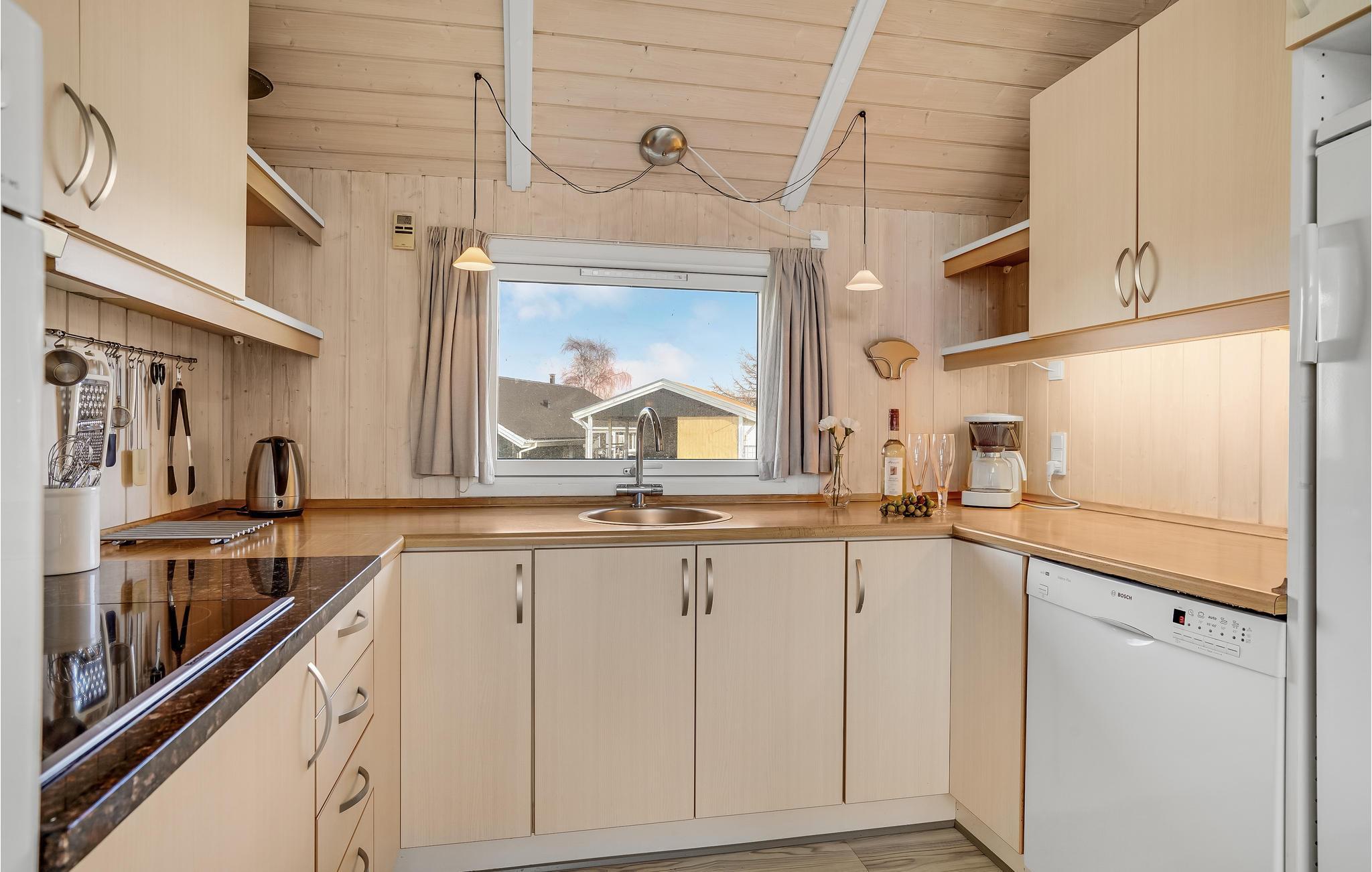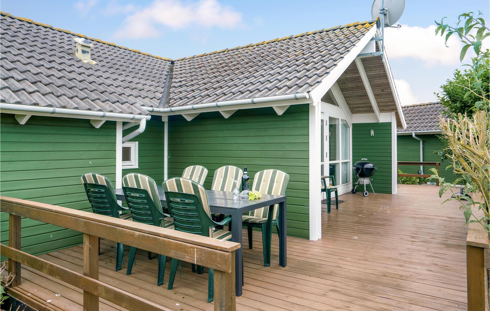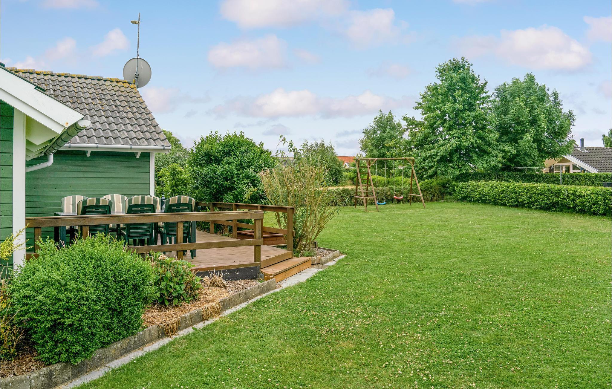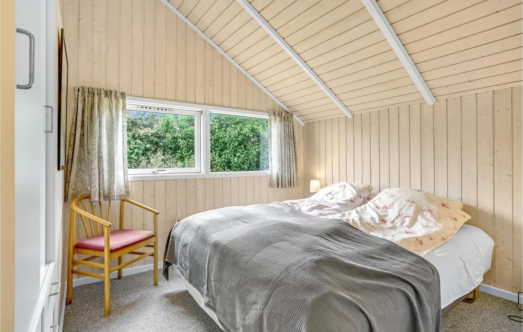 Dit mooie houten vakantiehuis ligt in het aantrekkelijke vakantiehuisgebied Sandager Næs, dicht bij het strand op een natuurlijk perceel met zandbak en schommel.