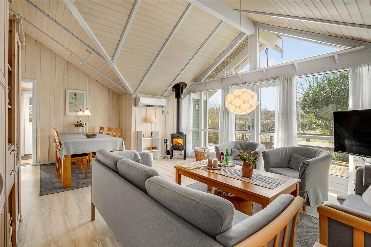 Sfeervol houten vakantiehuis met sauna en whirlpool, dicht bij het strand en kindvriendelijk gelegen in Sandager Næs.