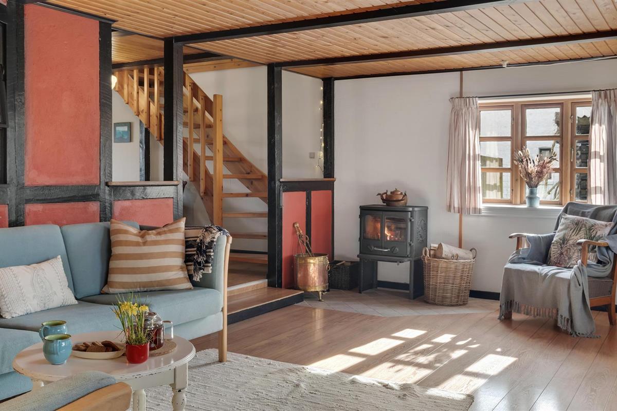 Welkom in dit charmante huis in een rustige, schilderachtige omgeving, op slechts een paar honderd meter van het Nakskov Fjord. Het interieur is prachtig ontworpen en behoudt de landelijke idylle zonder aan comfort in te boeten. Het interieur is warm en rustiek, met goed bewaarde houten plafonds, zichtbaar houtwerk en glasramen die van verschillende kanten licht binnenlaten. Als het weer het toelaat, kun je de houtkachel aansteken om warm te blijven en koken in de goed uitgeruste keuken, genieten van maaltijden met uitzicht op het omliggende platteland en tot diep in de nacht bordspellen spelen.