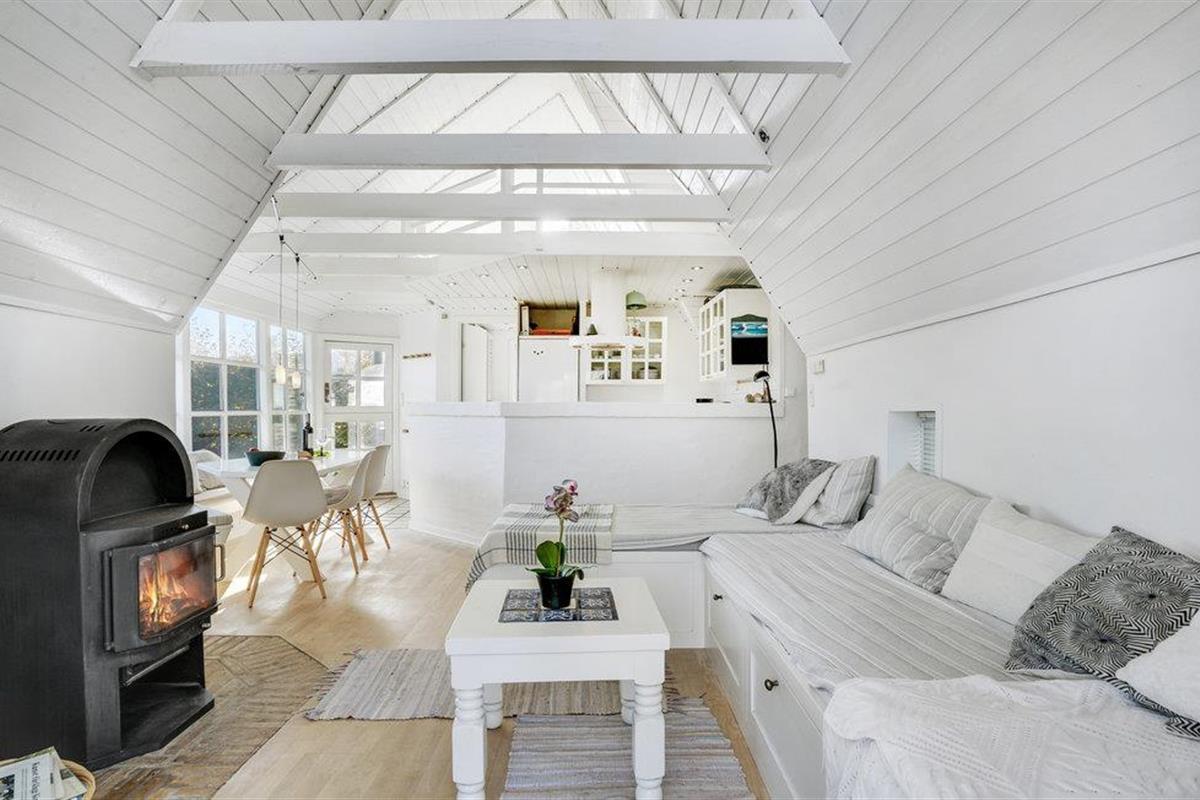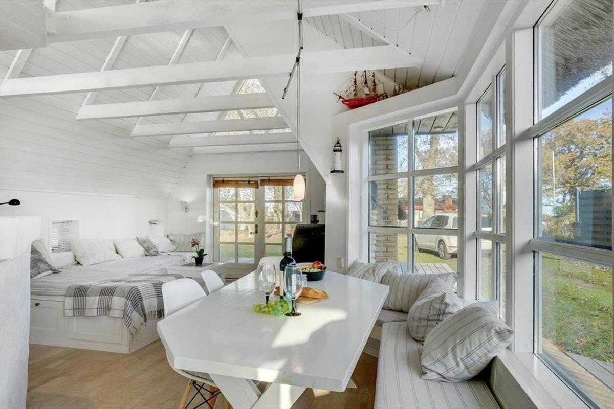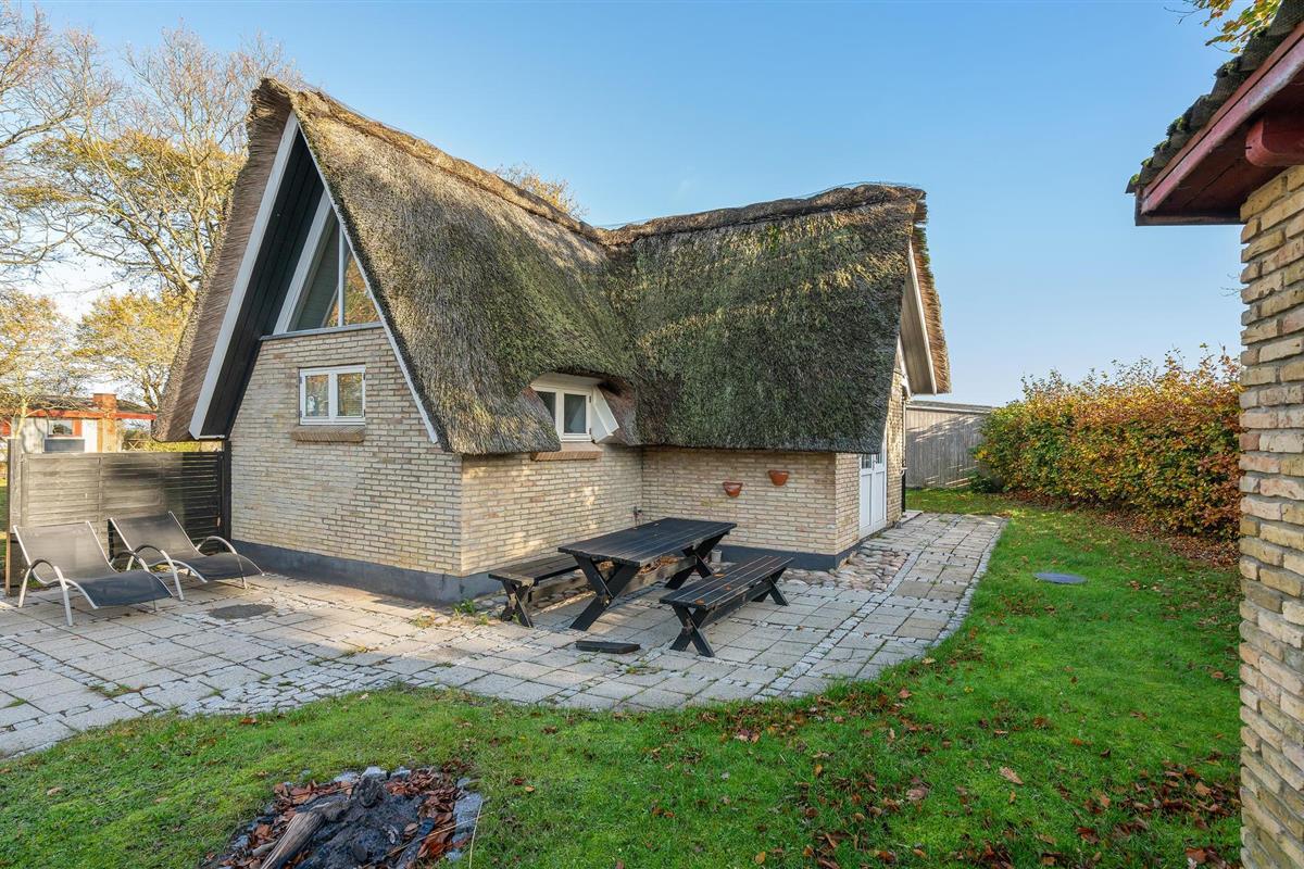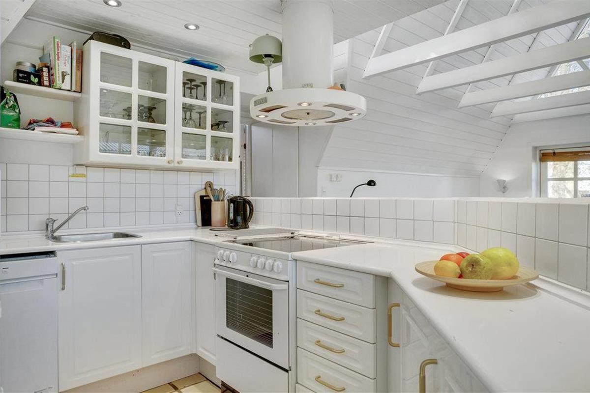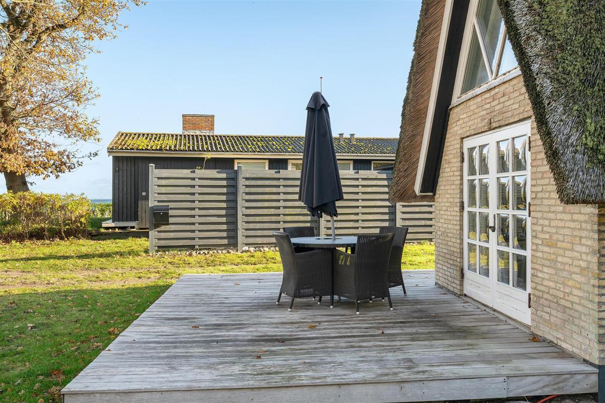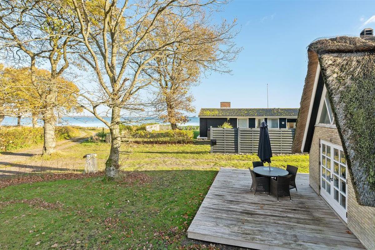 Dit charmante landhuis is gebouwd van steen en heeft een rieten dak. Het huis ligt in de prachtige omgeving van Sandersvig Stand. Het huis heeft een lichte en vriendelijke uitstraling binnen, en er is een open daknok met zichtbare balken in delen van het huis. Het huis straalt een traditionele cottage sfeer uit. Het huis heeft een kleine keuken die van de woonkamer is gescheiden door een halve muur, en in de woonkamer is er een eethoek, een bank, een houtkachel en een tv. Het huis heeft twee slaapkamers, waarvan één met een tweepersoonsbed. Het terras is goed geplaatst op het gezellige terrein met uitzicht op het water. Het strand ligt direct achter het volgende huis, dus u kunt gemakkelijk naar het water.