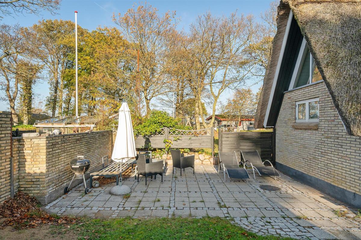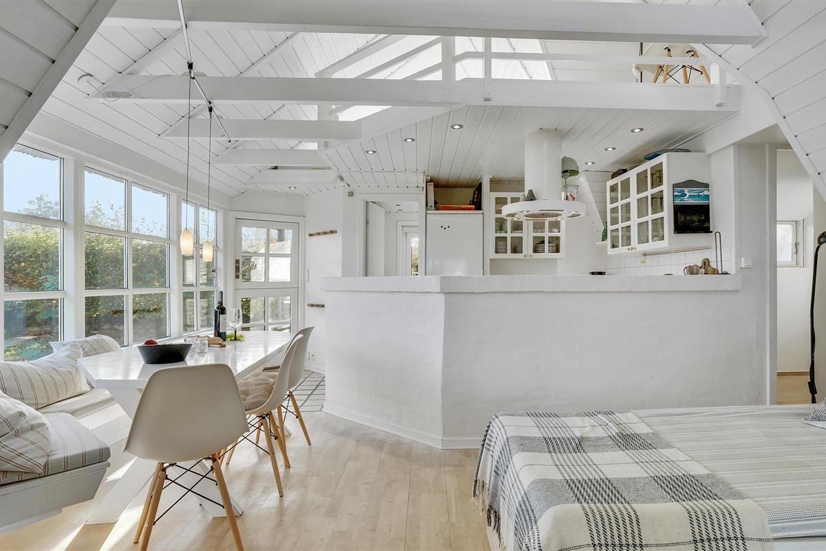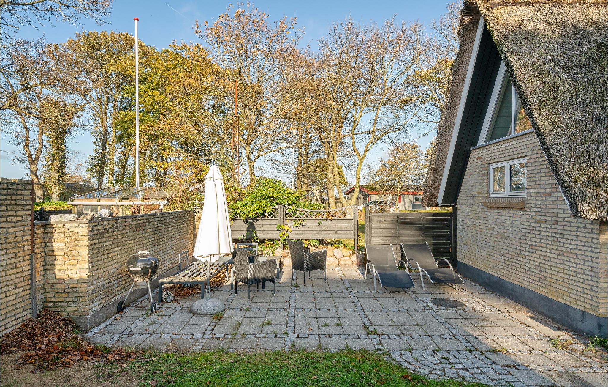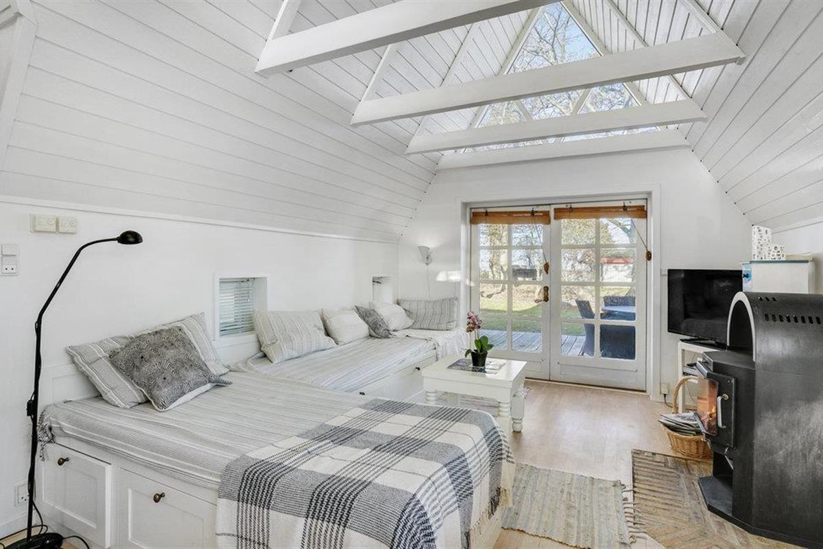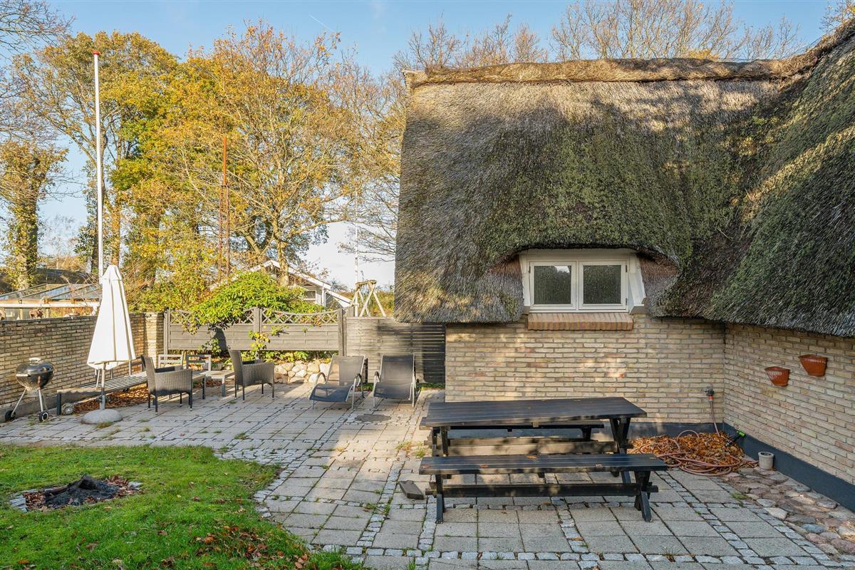 Dit charmante landhuis is gebouwd van steen en heeft een rieten dak. Het huis ligt in de prachtige omgeving van Sandersvig Stand. Het huis heeft een lichte en vriendelijke uitstraling binnen, en er is een open daknok met zichtbare balken in delen van het huis. Het huis straalt een traditionele cottage sfeer uit. Het huis heeft een kleine keuken die van de woonkamer is gescheiden door een halve muur, en in de woonkamer is er een eethoek, een bank, een houtkachel en een tv. Het huis heeft twee slaapkamers, waarvan één met een tweepersoonsbed. Het terras is goed geplaatst op het gezellige terrein met uitzicht op het water. Het strand ligt direct achter het volgende huis, dus u kunt gemakkelijk naar het water.