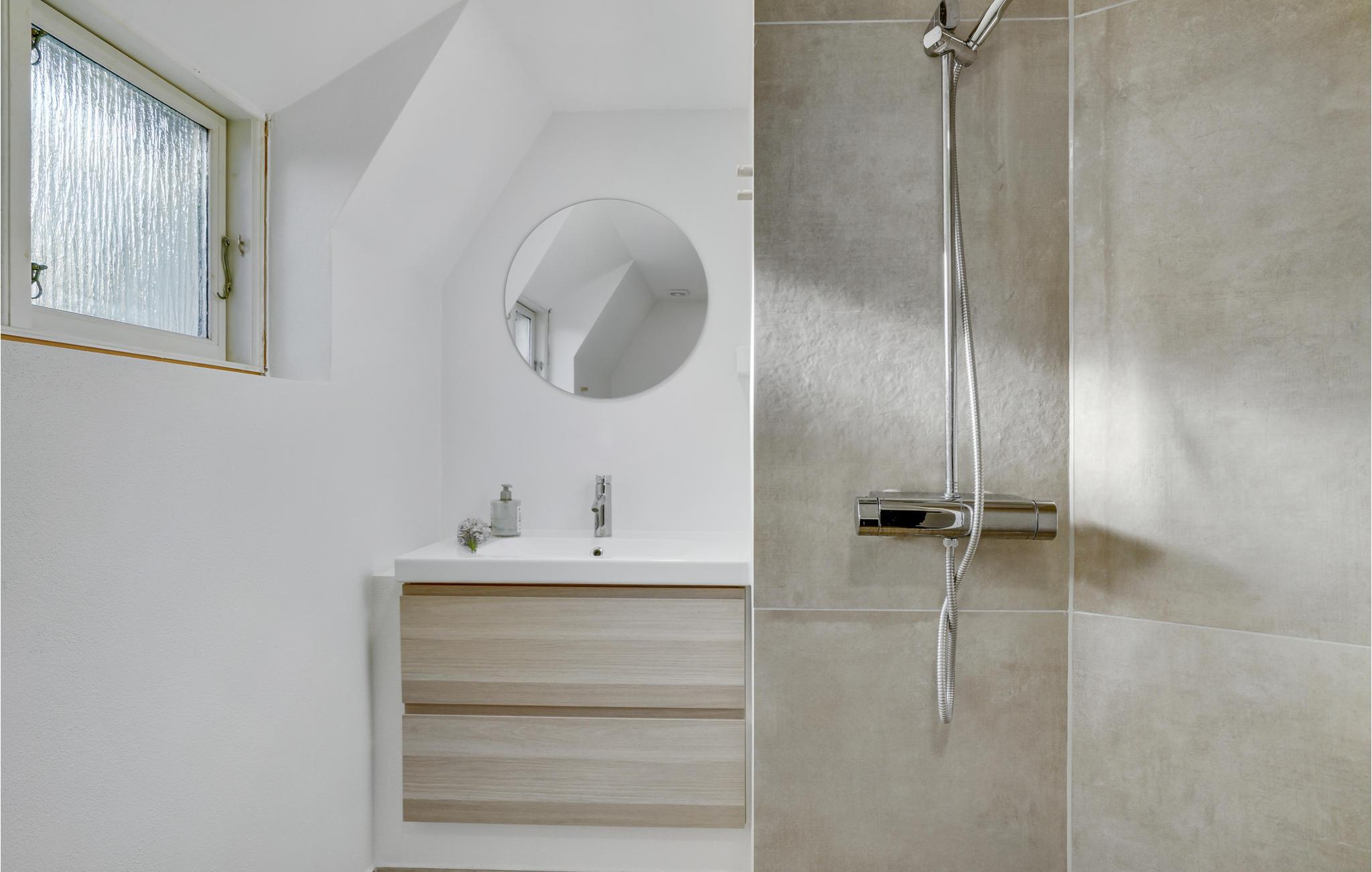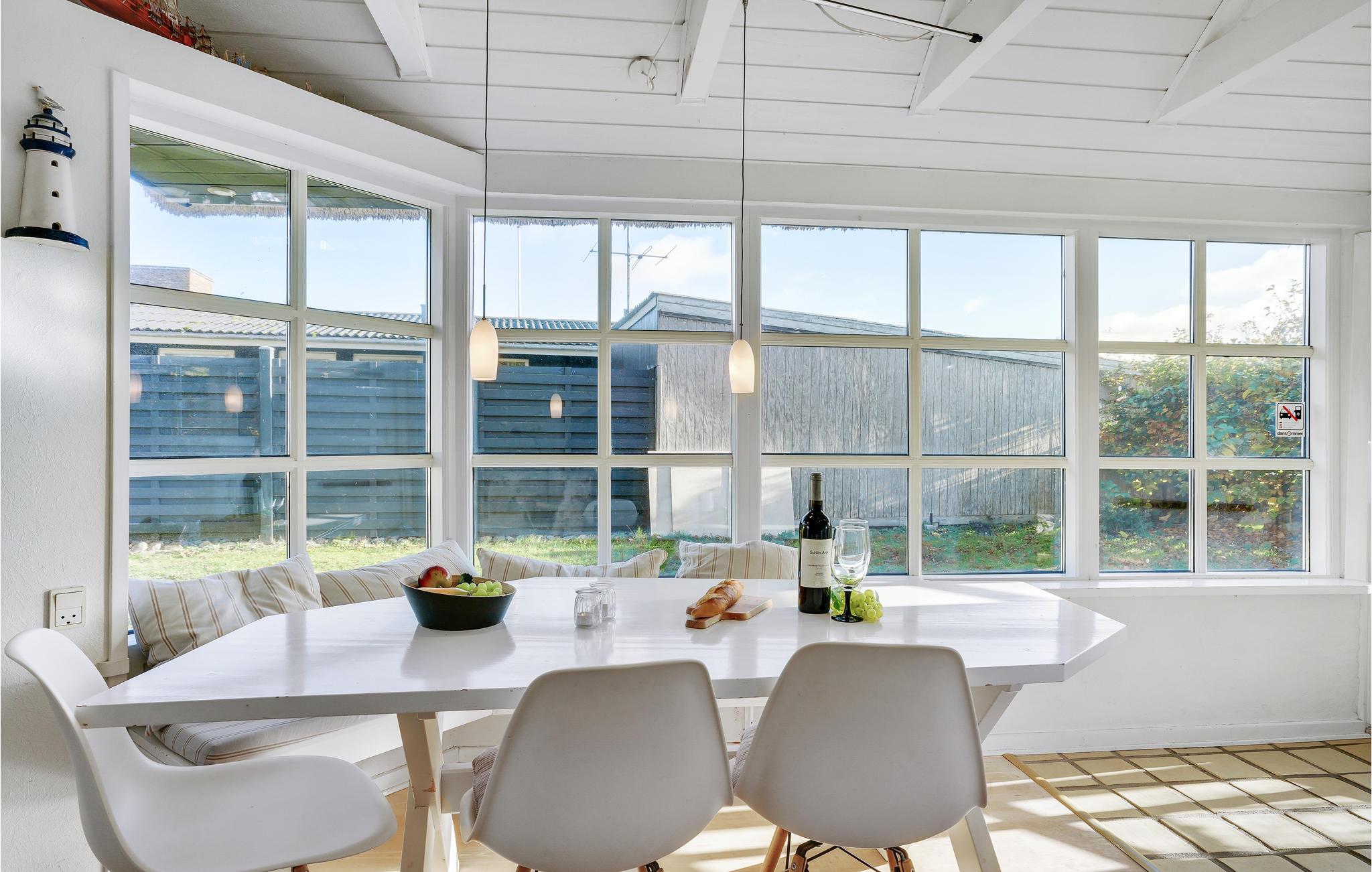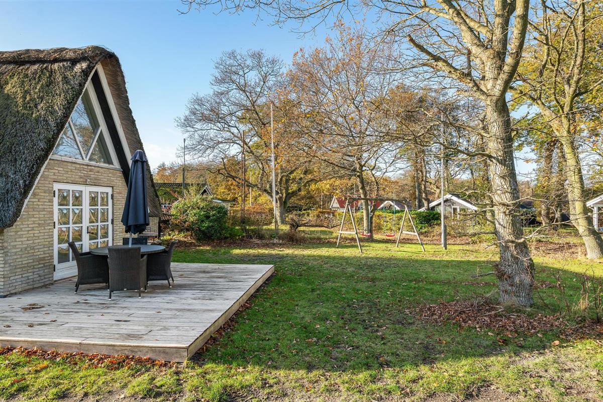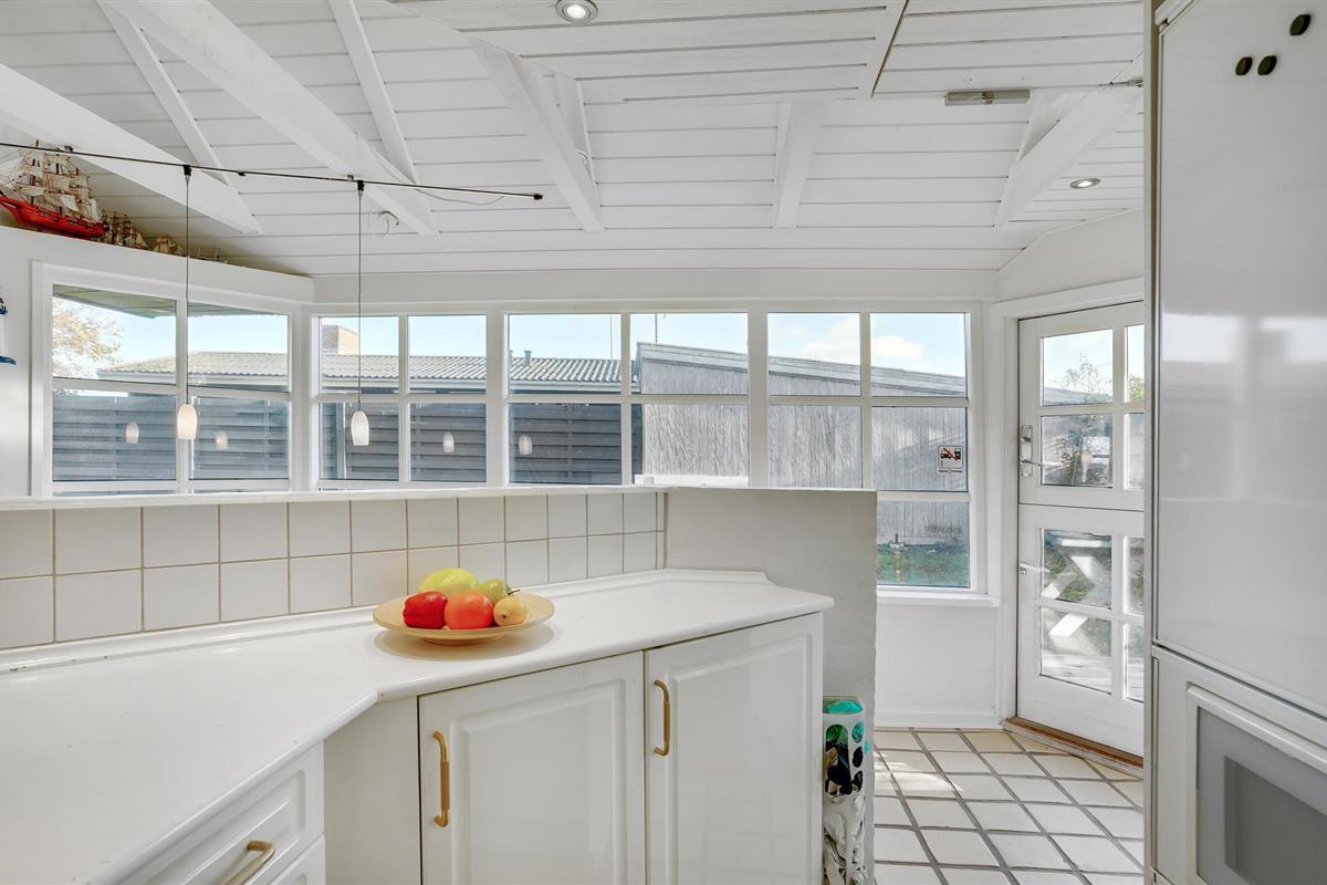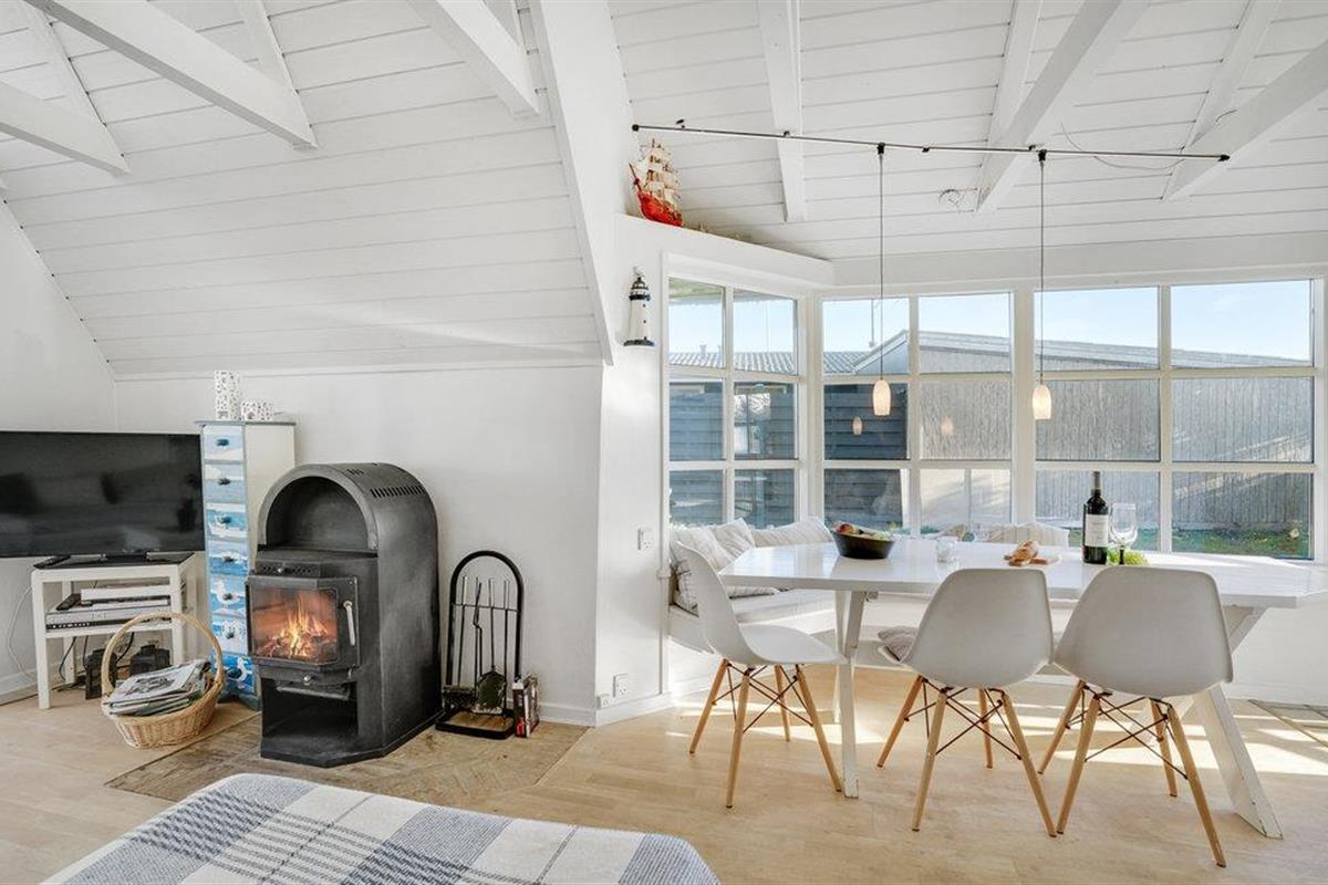 Dit charmante landhuis is gebouwd van steen en heeft een rieten dak. Het huis ligt in de prachtige omgeving van Sandersvig Stand. Het huis heeft een lichte en vriendelijke uitstraling binnen, en er is een open daknok met zichtbare balken in delen van het huis. Het huis straalt een traditionele cottage sfeer uit. Het huis heeft een kleine keuken die van de woonkamer is gescheiden door een halve muur, en in de woonkamer is er een eethoek, een bank, een houtkachel en een tv. Het huis heeft twee slaapkamers, waarvan één met een tweepersoonsbed. Het terras is goed geplaatst op het gezellige terrein met uitzicht op het water. Het strand ligt direct achter het volgende huis, dus u kunt gemakkelijk naar het water.