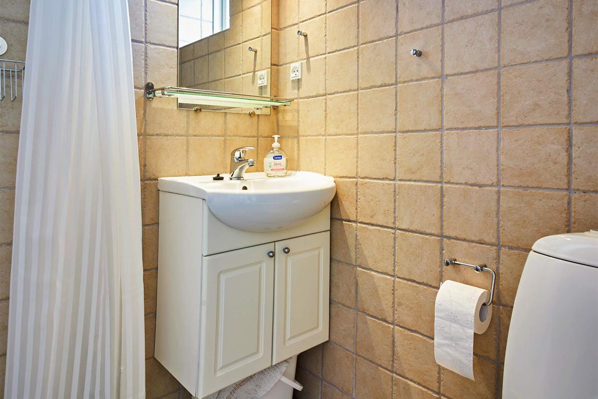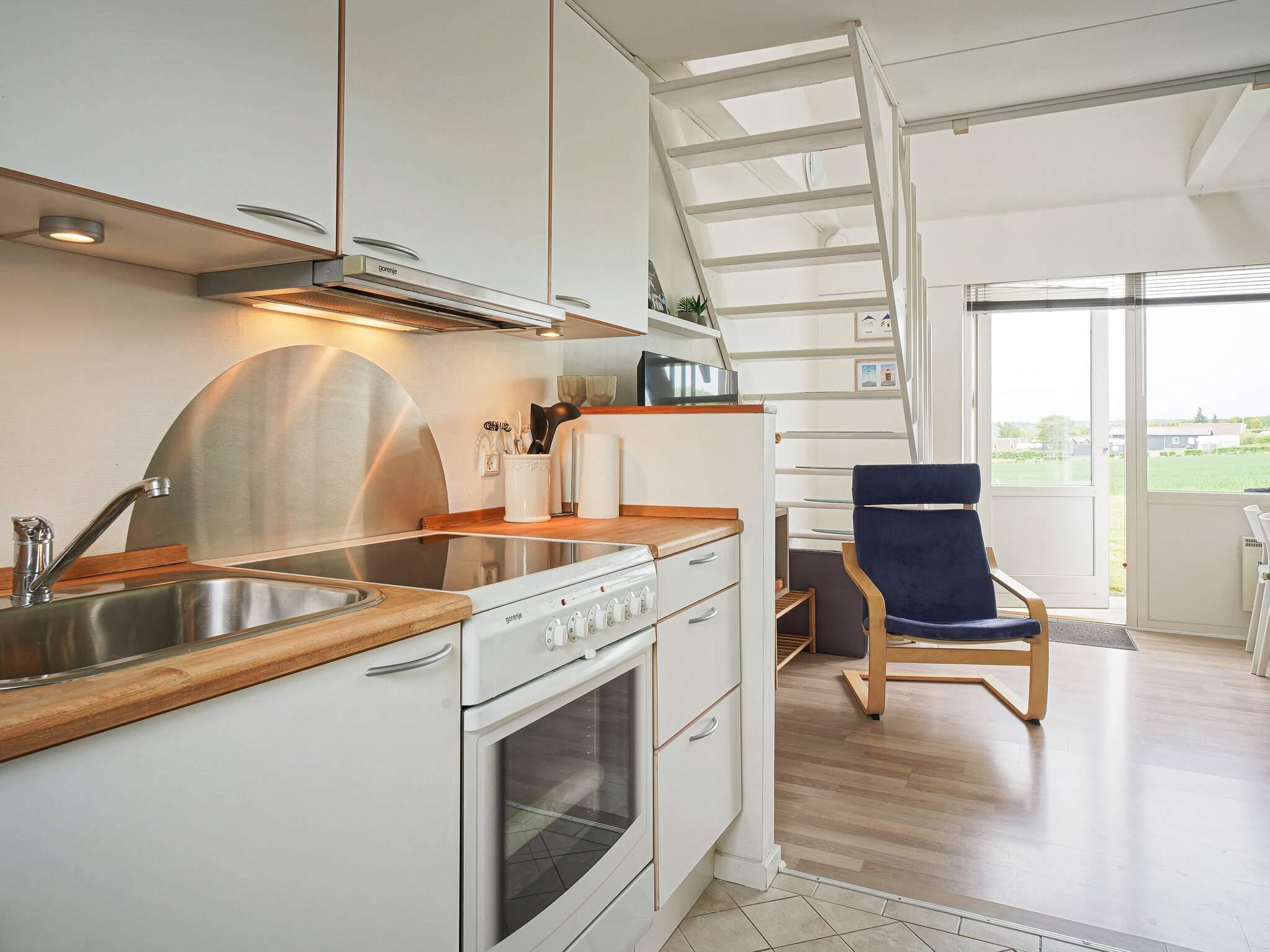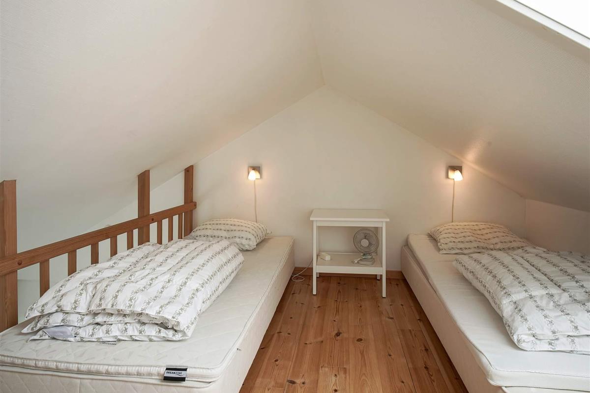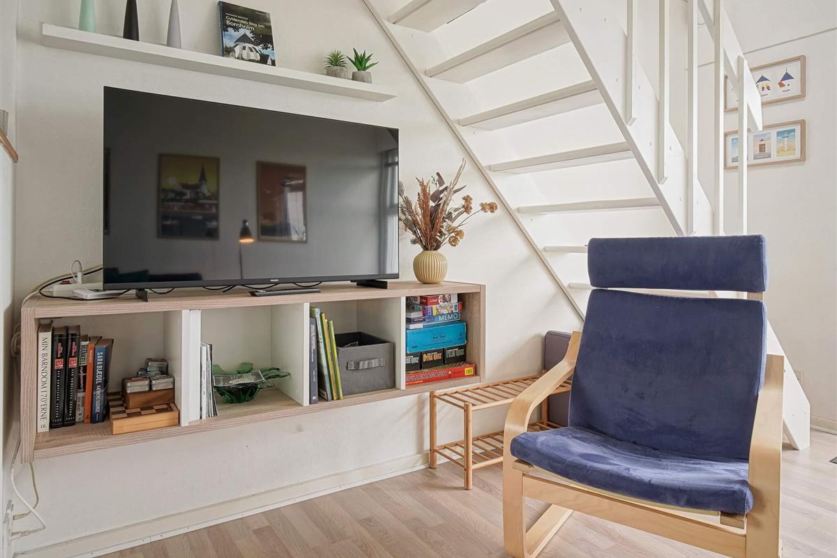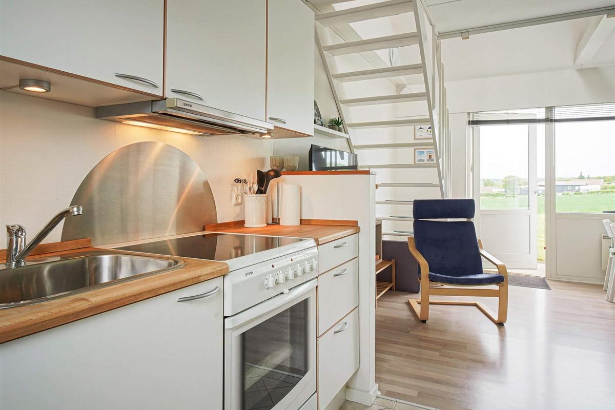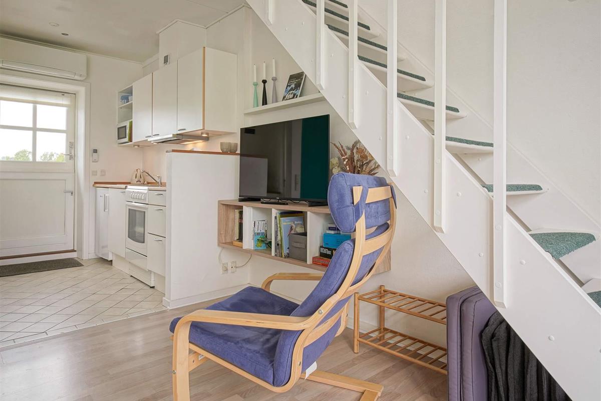 Die Wohnung hat ein Badezimmer mit angenehmer Fußbodenheizung und einen offenen Küchen-/Wohnbereich mit Ess- und Sitzecke. Die Einrichtung ist funktional, in hellem, typisch nordischem Stil und mit persönlicher Note. Vom Wohnzimmer führt eine vernünftige Treppe hinauf zum ausgebauten Dachboden (keine Stehhöhe), wo sich zwei Einzelbetten befinden. Das Sofa im Wohnzimmer dient als Schlafplatz für zwei Personen. Vom Wohnzimmer aus gelangt man auf eine private Terrasse mit Gartenmöbeln und Grill. Es gibt freies WLAN sowie Smart-TV und einige deutsche TV-Sender zur Auswahl.