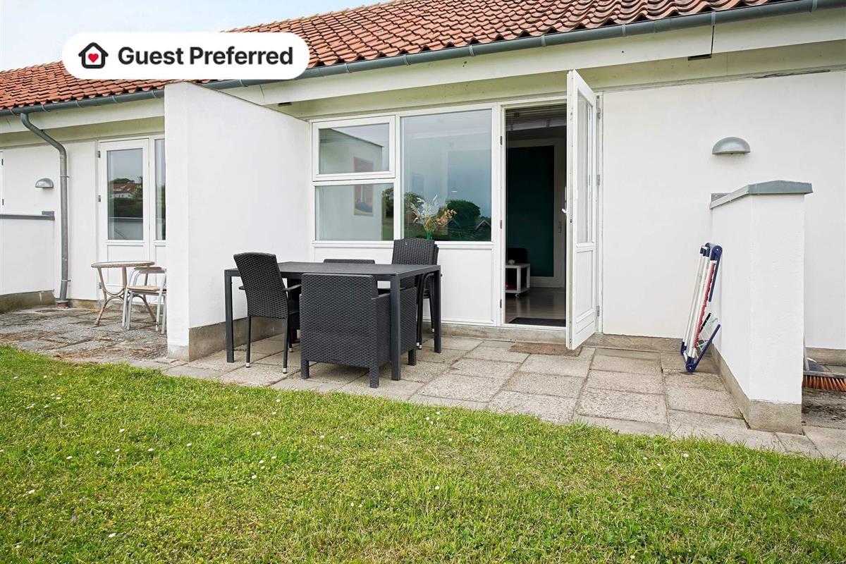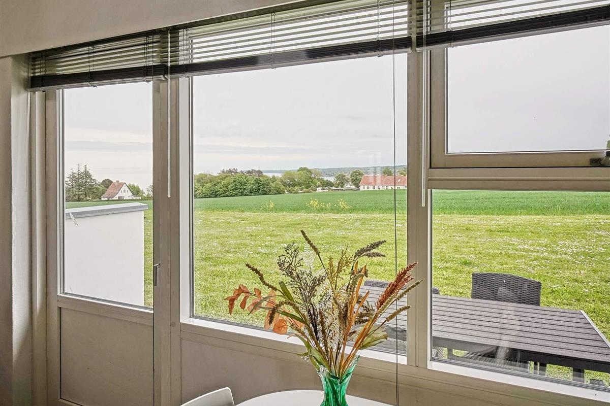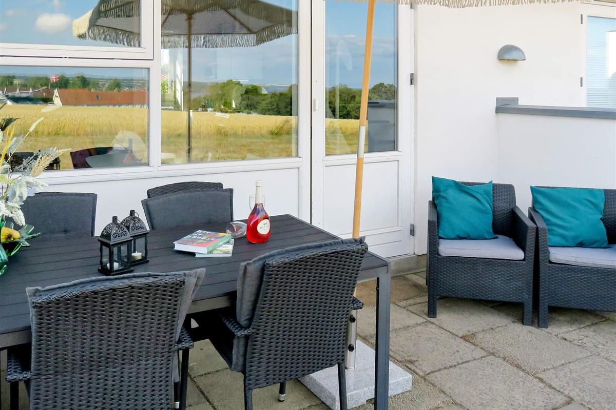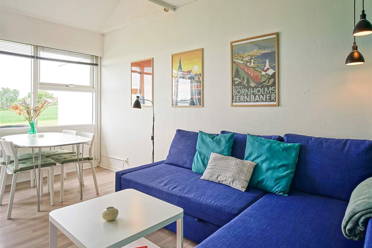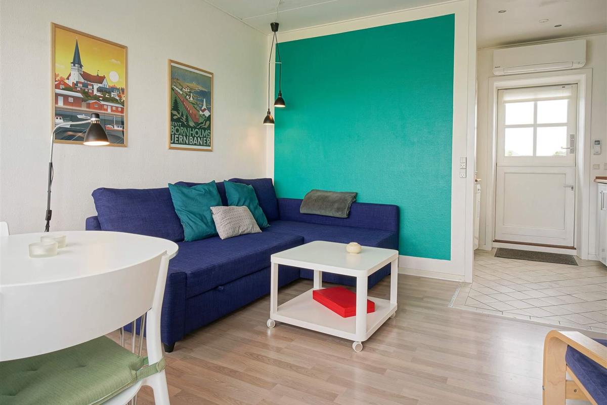 Ferienwohnung im reizvollen Norden der Ferieninsel Bornholm, mit Meerblick zur felsigen Küste etwas östlich von Allinge. Die Wohnung ist Teil der ansprechenden Reihenhaussiedlung Boesvangen bei Sandkås.