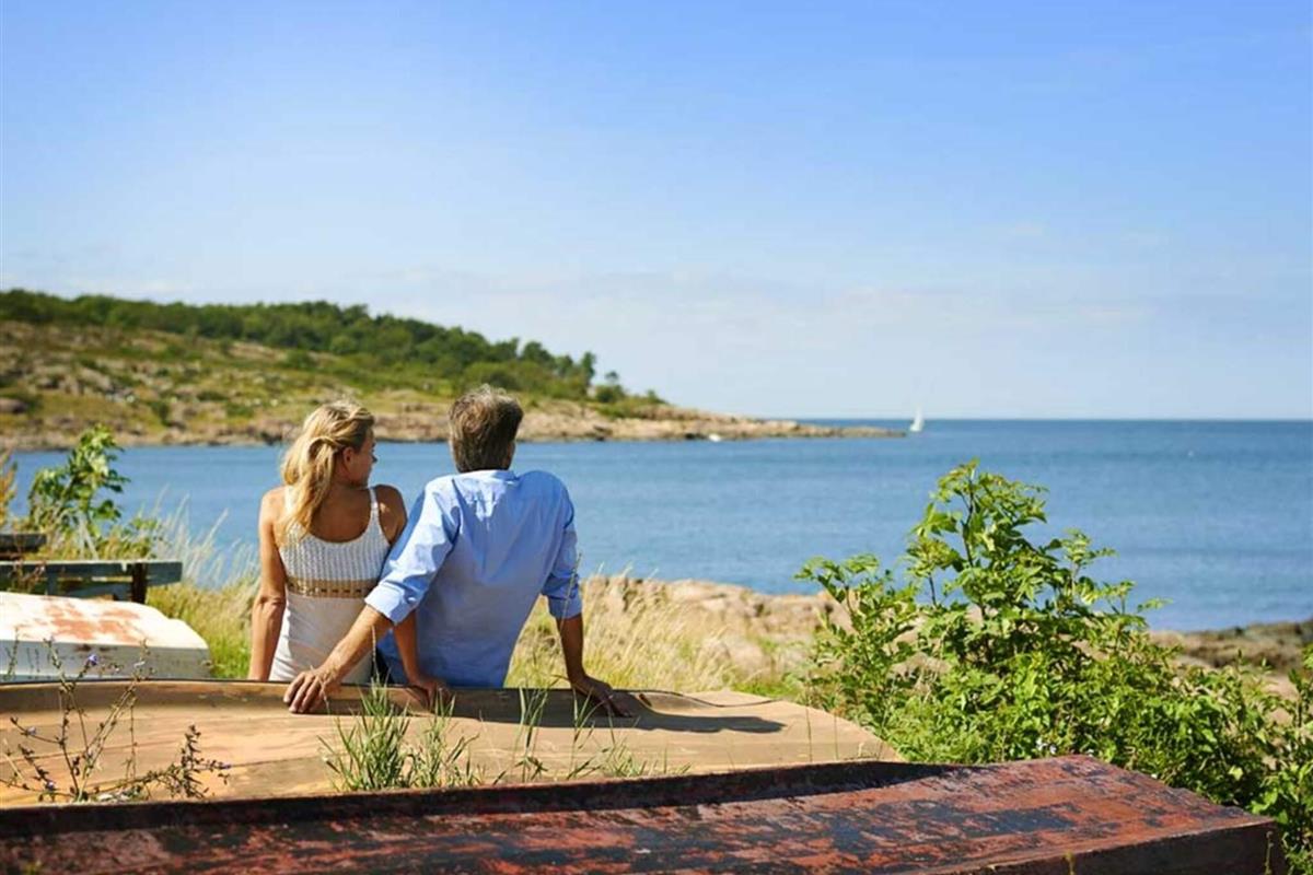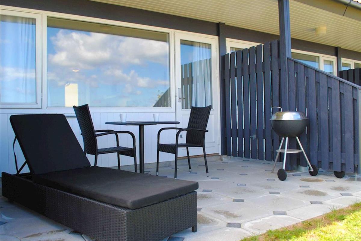 Der Ferienpark Sandkås Søpark bietet reizende Ferienapartments in schöner Umgebung. Sandkås Søpark ist ruhig gelegen und bietet eine schöne Aussicht auf das Meer, gleichzeitig befinden Sie sich in der Nähe von Restaurants und dem Leben in der Stadt. Wenn Sie möchten, können Sie auch dem schönen Küstenpfad nach Allinge folgen.Terrasse in Sandkås Søpark