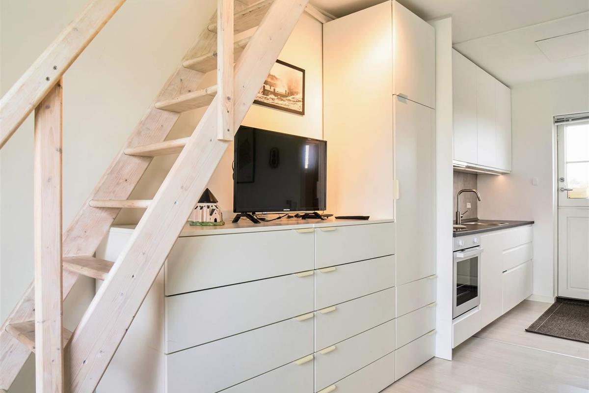 Ferienwohnung mit Meerblick im attraktiven Sandkås. Sie wohnen hier in der Nähe von Küste, Klippen und Sandstrand. Die Wohnung präsentiert sich hell und modern eingerichtet mit Hems sowie Zugang zur Terrasse direkt vom Wohnzimmer aus. Keine Stehhöhe oben auf dem Hems. Das Bett oben auf dem Hems ist 180 cm breit, das Schlafsofa 140 cm. Zusätzliche Küchenutensilien befinden sich in den oberen Schränken im Wohnzimmer.